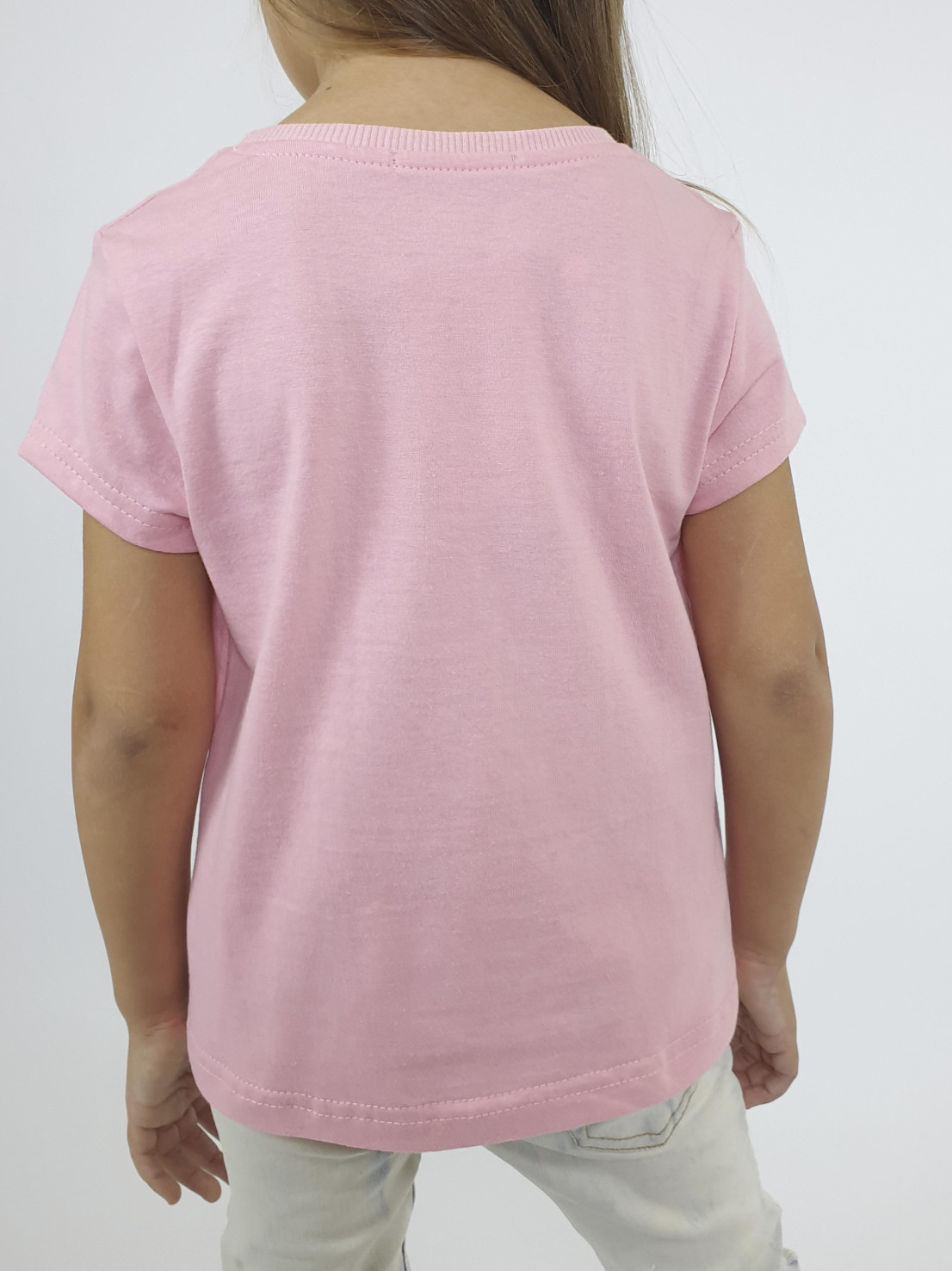 Футболка для девочки изготовлена из кулирного полотна (100% хлопок). Модель полуприлегающего силуэта, короткий втачной рукав . Оригинальный принт со стразами точно понравится юным модницам. Материал изделия легкий, приятный на ощупь, устойчивый к частым стиркам.