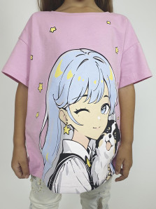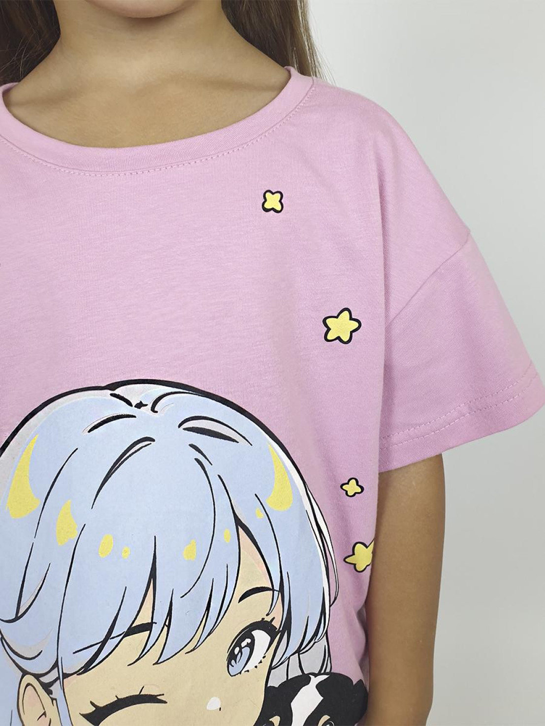 Кулирное полотно: 100% х/б. Футболка(оверсайз)-прямой силуэт,спущенное плечо,короткий рукав,перед с печатью.Горловина обработана притачной планкой.Низ изделия и рукава подшиты.