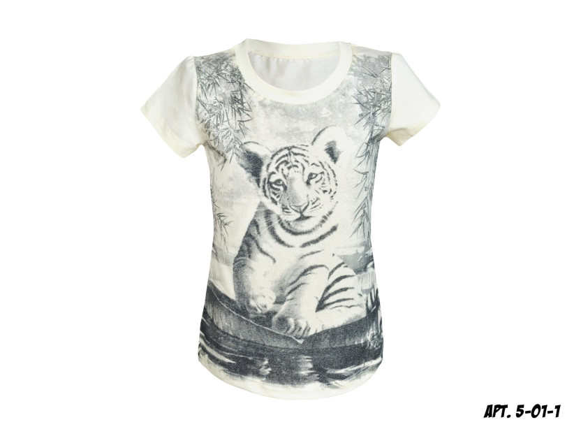 Кулирное полотно, 95% х/б, 5% лайкра. Полуприлегающего силуэта, печать на переде. Горловина обработана притачной планкой. Низ рукава и низ изделия подшит.