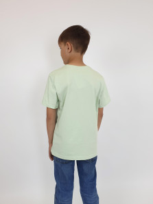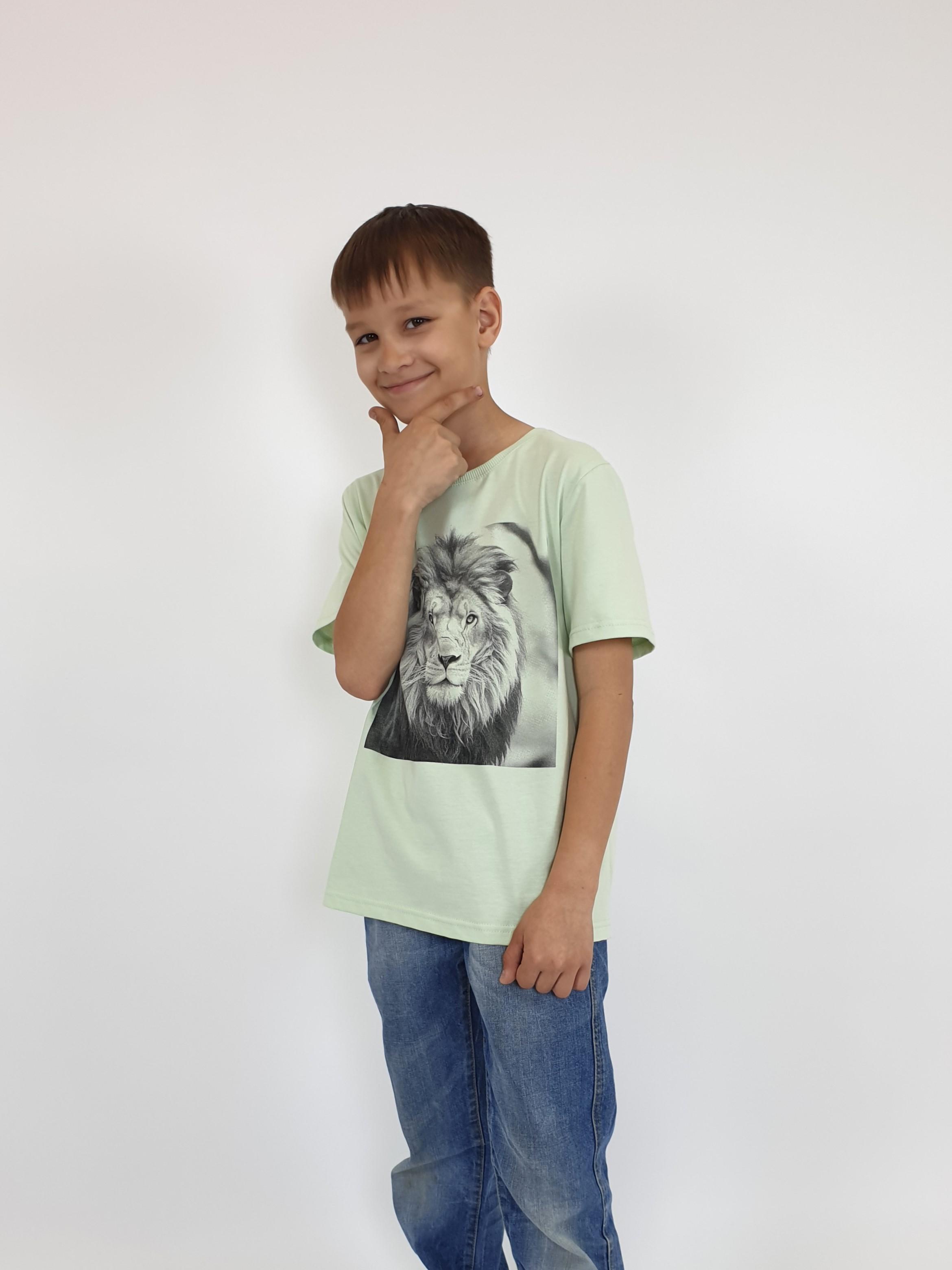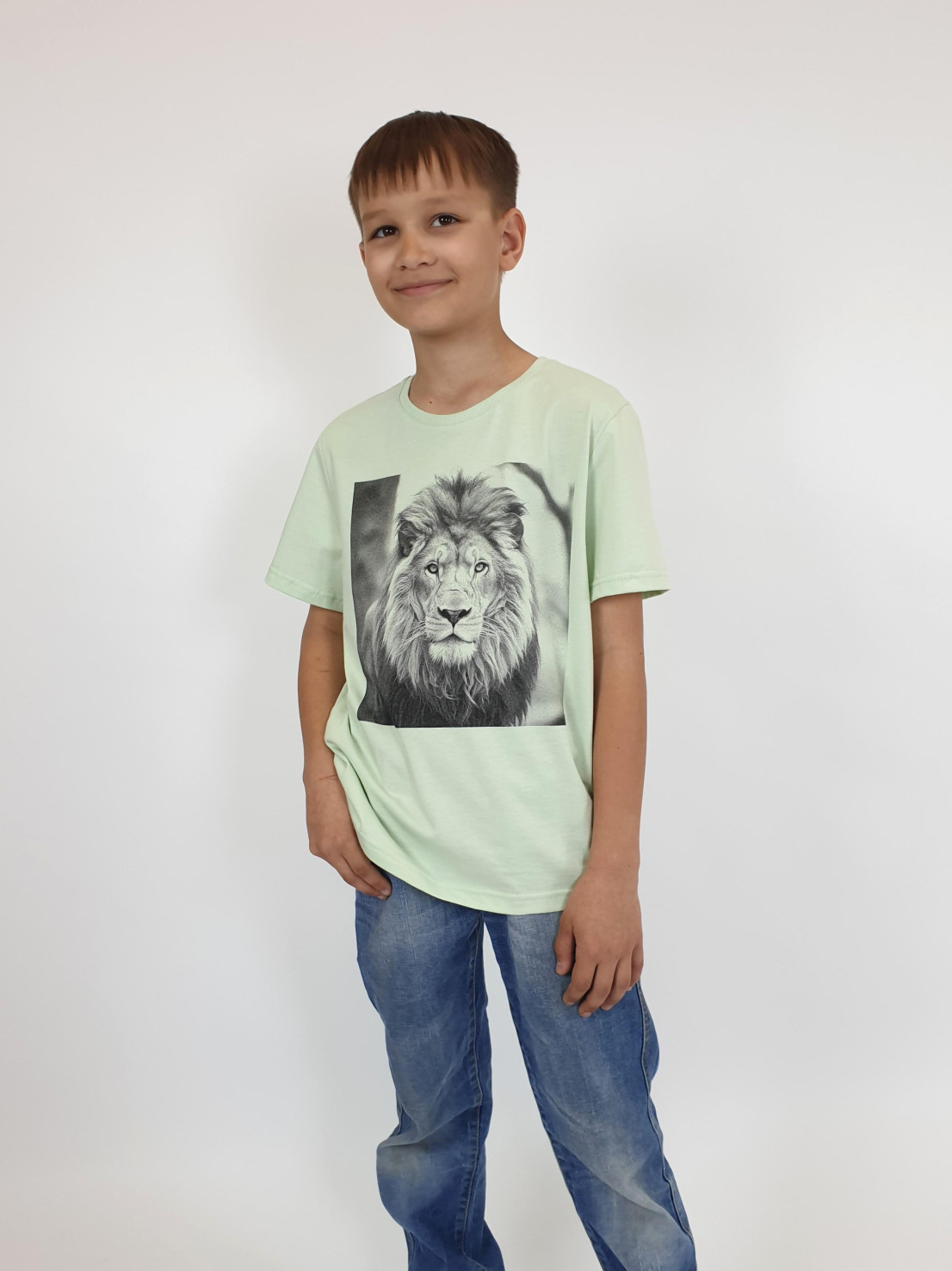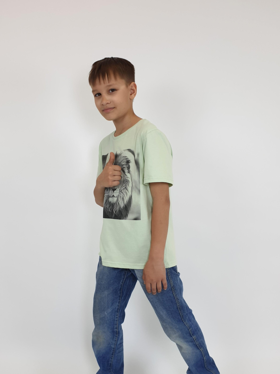 Кулирное полотно:100% х/б. Футболка-прямой силуэт,перед с печатью,рукав втачной короткий.Горловина обработана ластиком.Низ изделия и рукава подшиты.