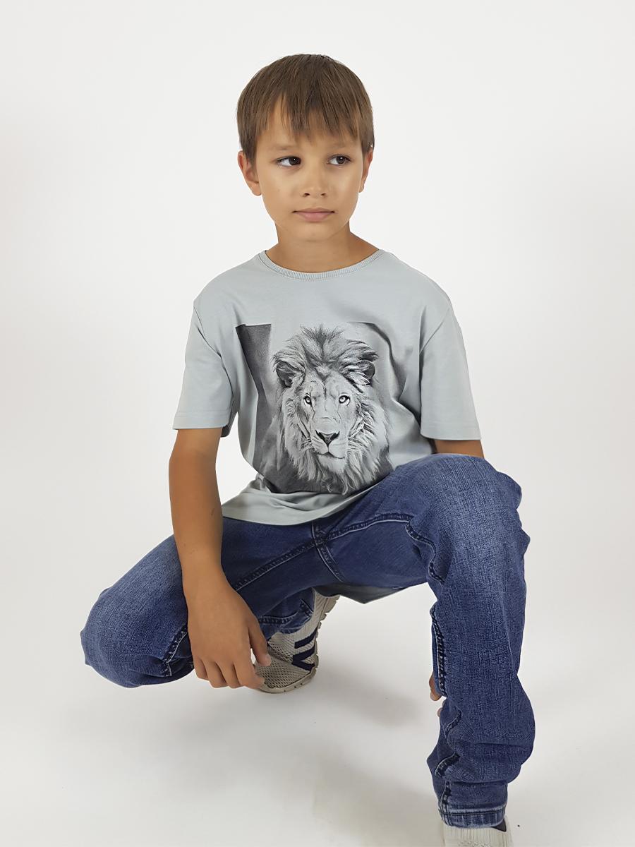 Кулирное полотно:100% х/б. Футболка-прямой силуэт,перед с печатью,рукав втачной короткий.Горловина обработана ластиком.Низ изделия и рукава подшиты.