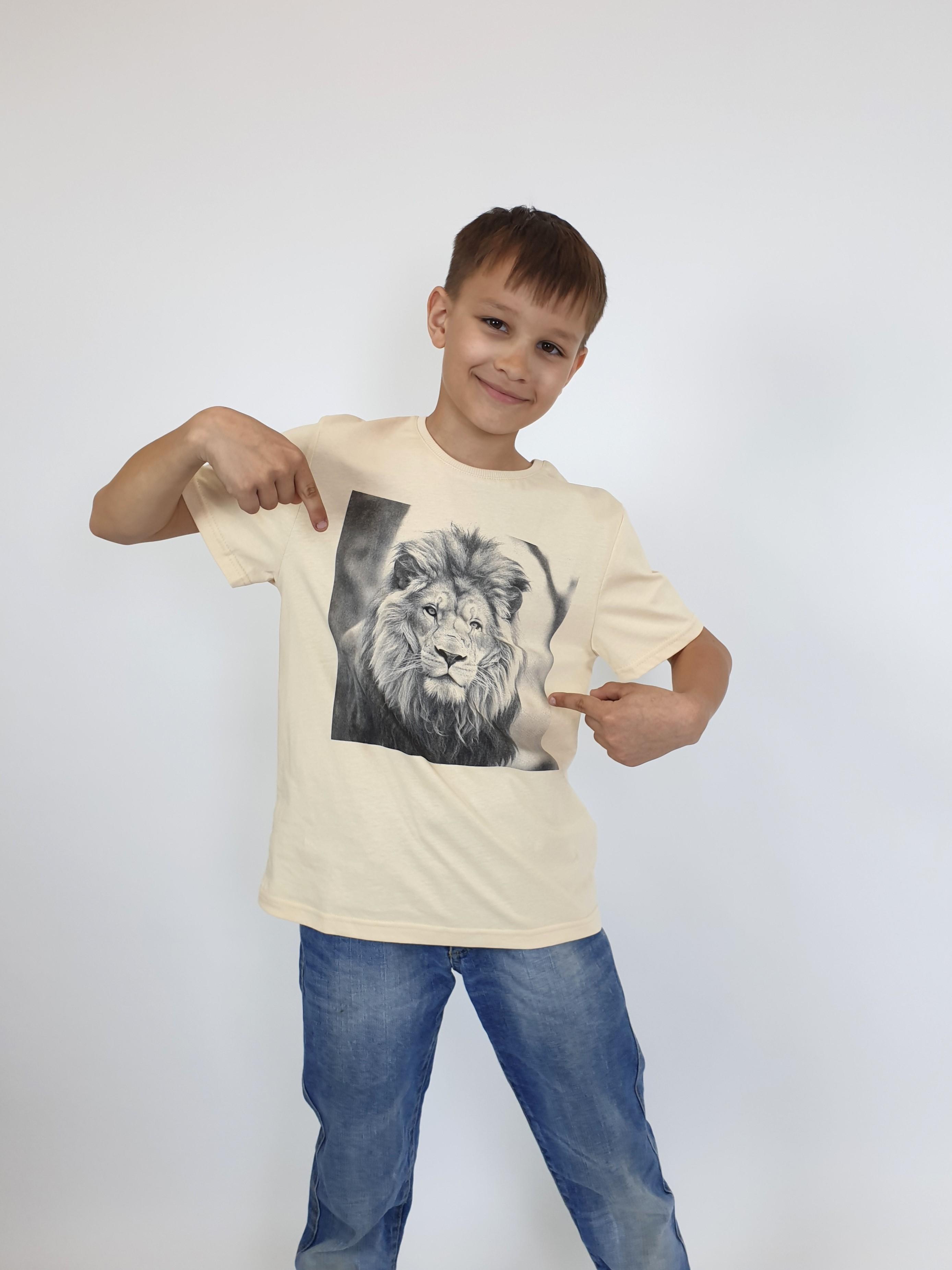 Кулирное полотно:100% х/б. Футболка-прямой силуэт,перед с печатью,рукав втачной короткий.Горловина обработана ластиком.Низ изделия и рукава подшиты.