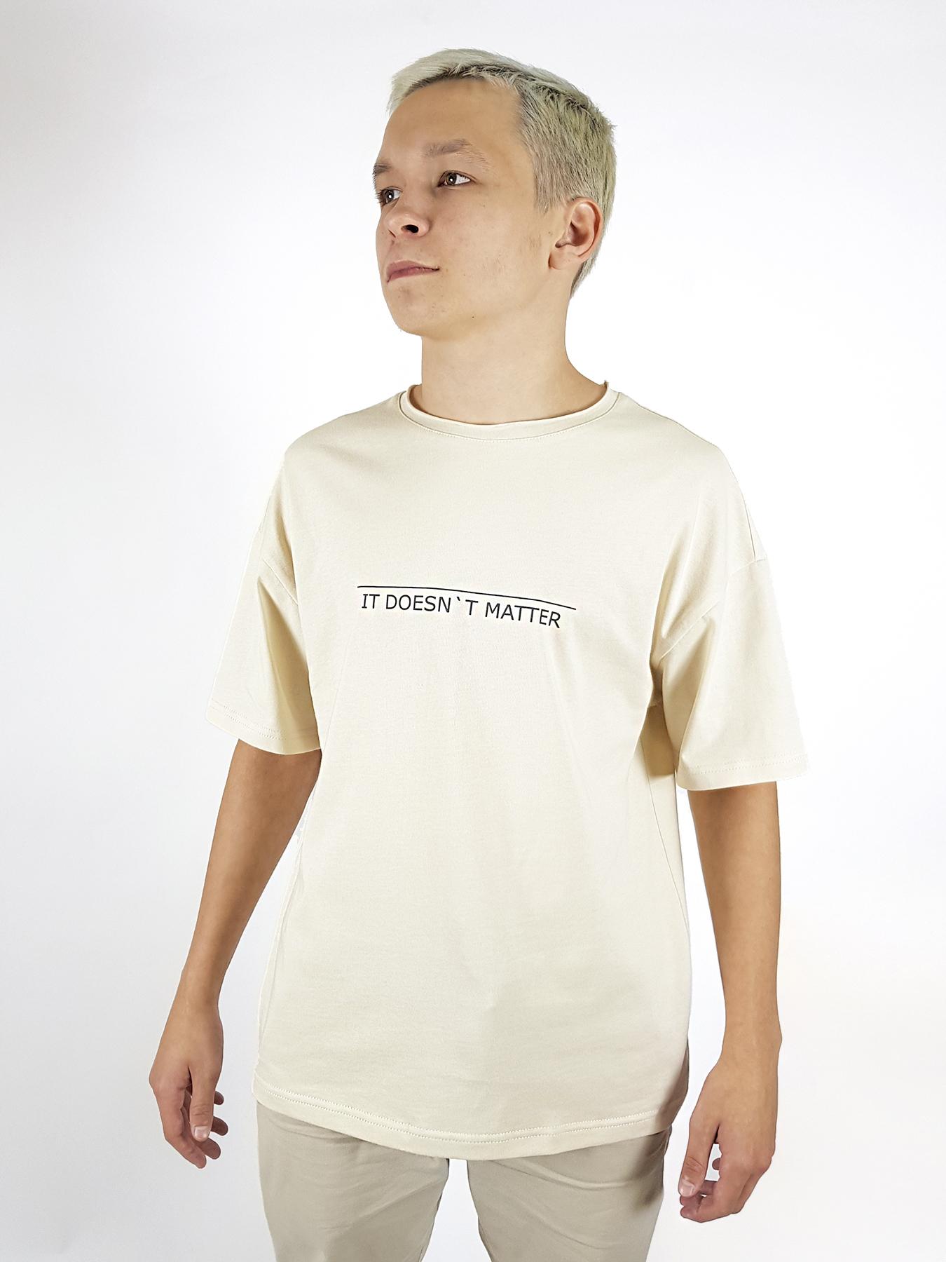 Кулирное полотно: 100% х/б. Футболка(оверсайз)-прямой силуэт,спущенное плечо,короткий рукав,перед с печатью.Горловина обработана планкой с открытым срезом.Низ изделия и рукава подшиты.