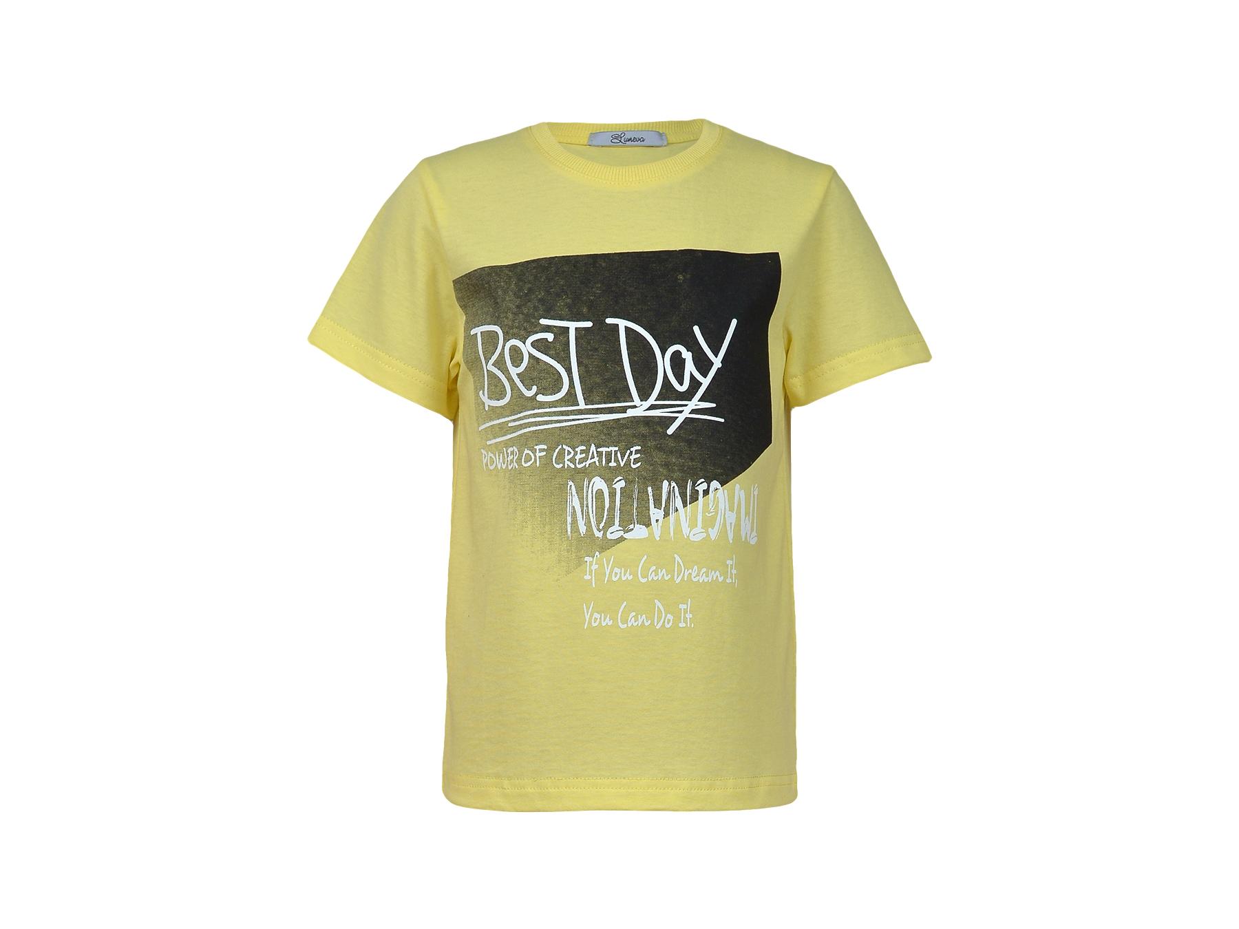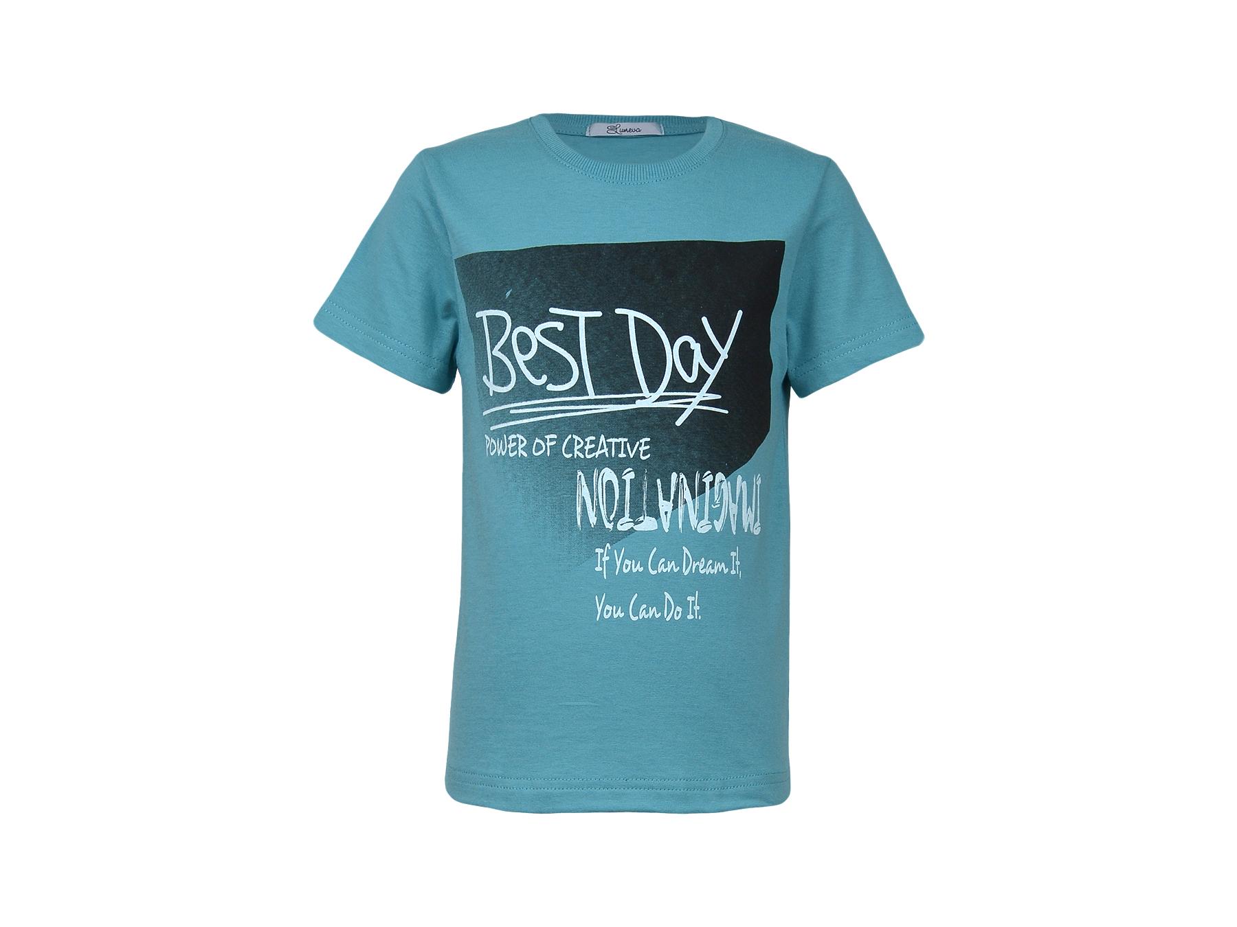 Кулирное полотно: 100% х/б. Футболка-прямой силуэт,перед с печатью,рукав втачной короткий.Горловина обработана ластиком.Низ изделия и рукава подшиты.