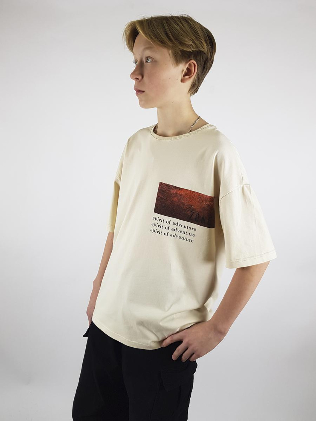 Кулирное полотно: 100% х/б. Футболка(оверсайз)-прямой силуэт,спущенное плечо,короткий рукав,перед с печатью.Горловина обработана планкой из ластика.Низ изделия и рукава подшиты.