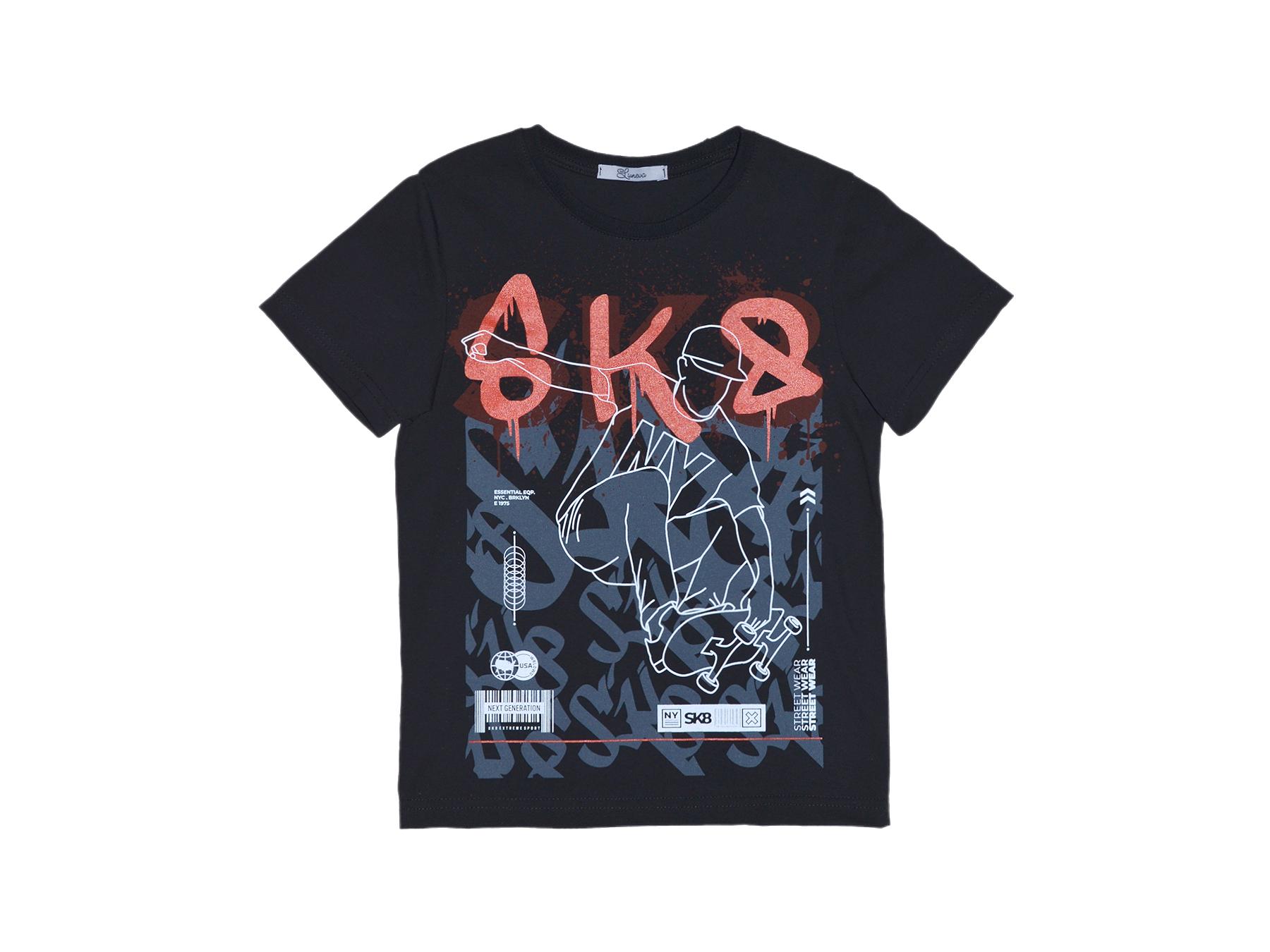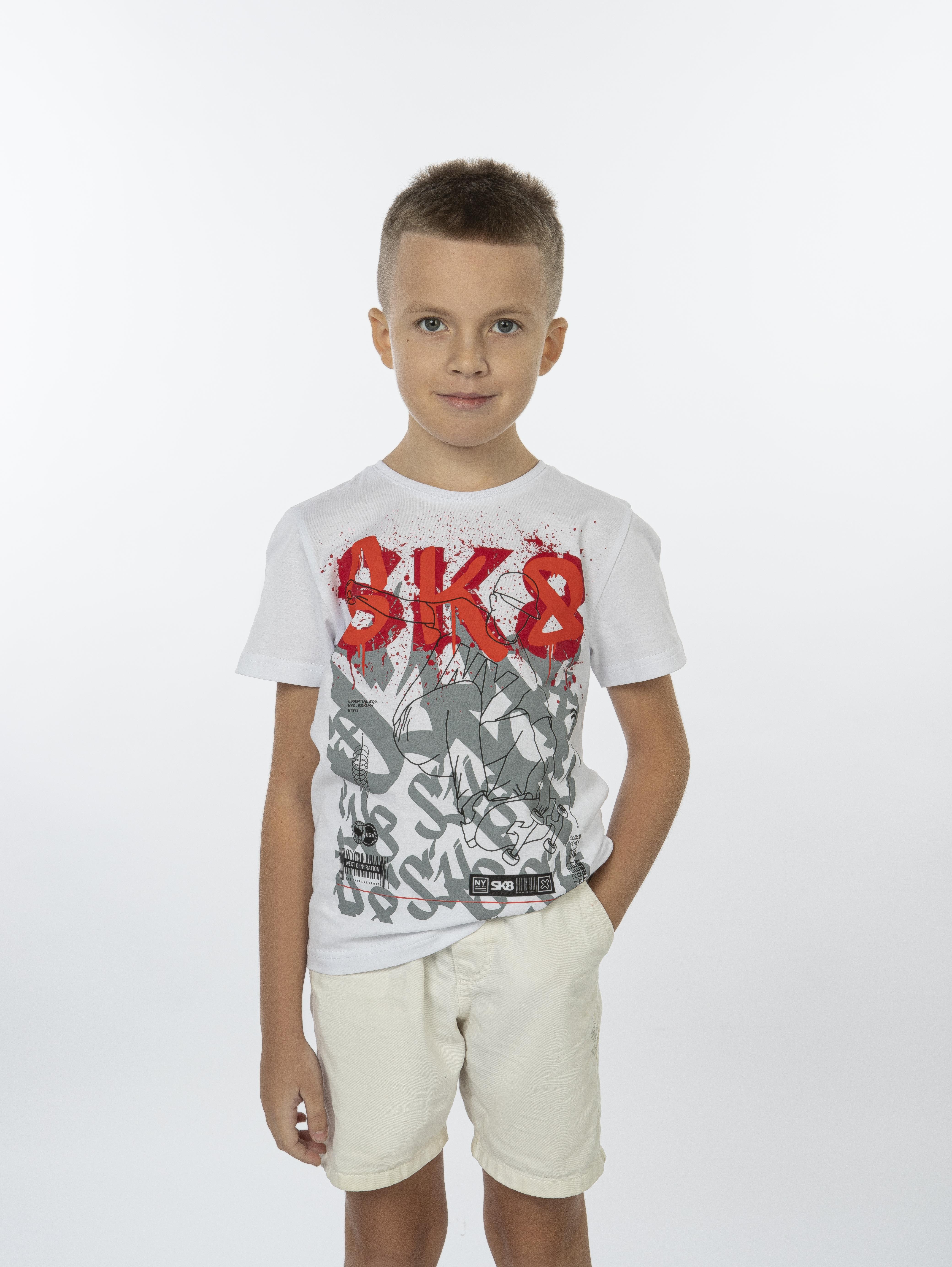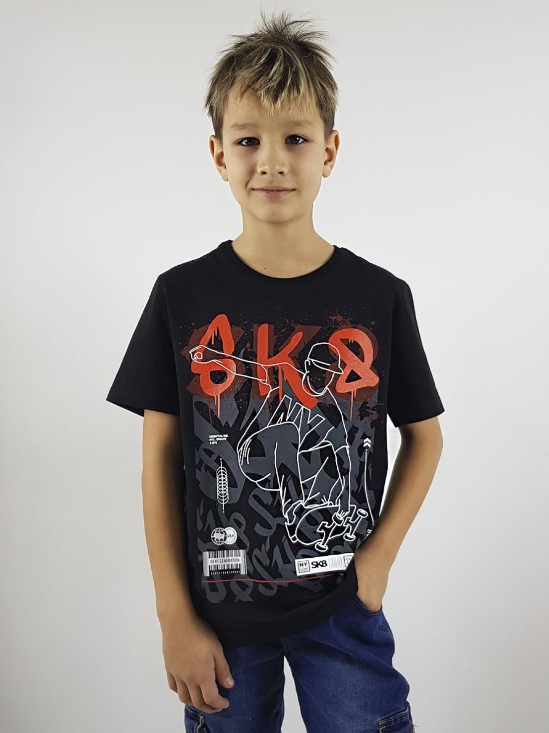 Кулирное полотно: 100% х/б. Футболка-прямой силуэт,перед с печатью,рукав втачной короткий.Горловина обработана ластиком.Низ изделия и рукава подшиты.
