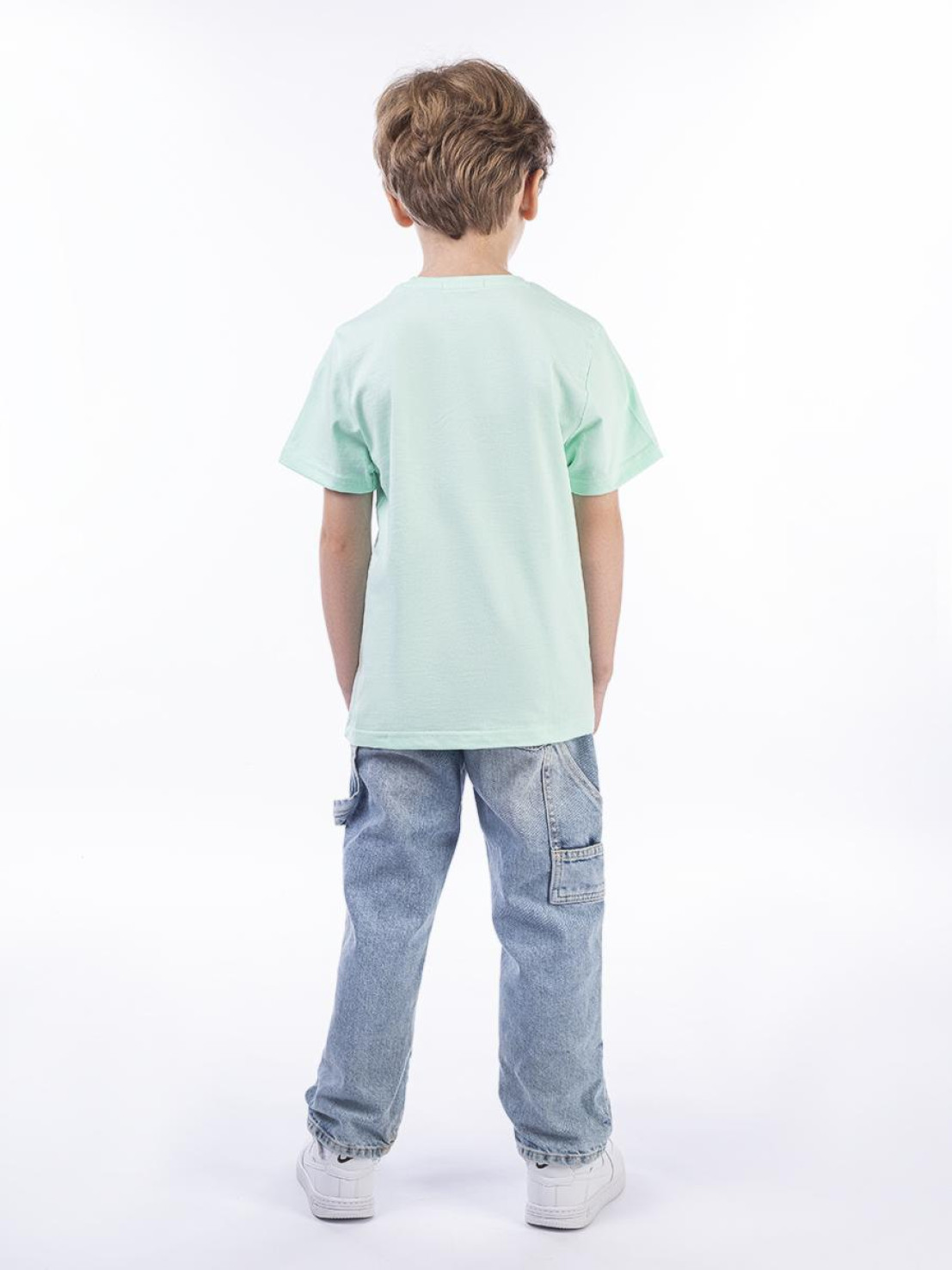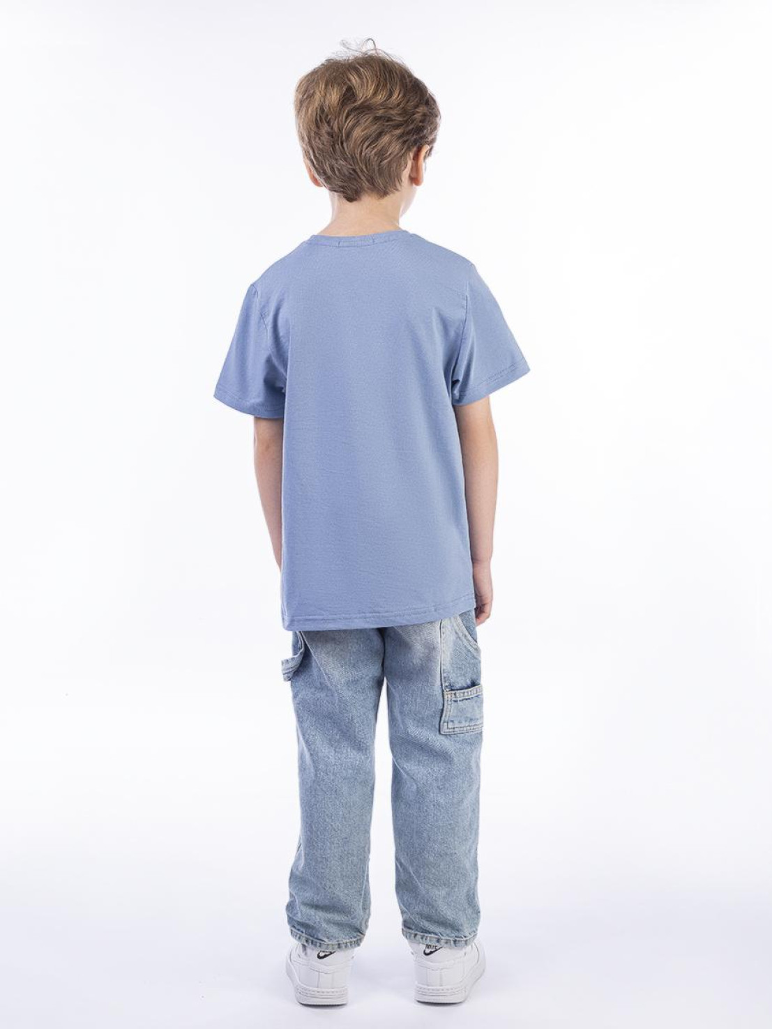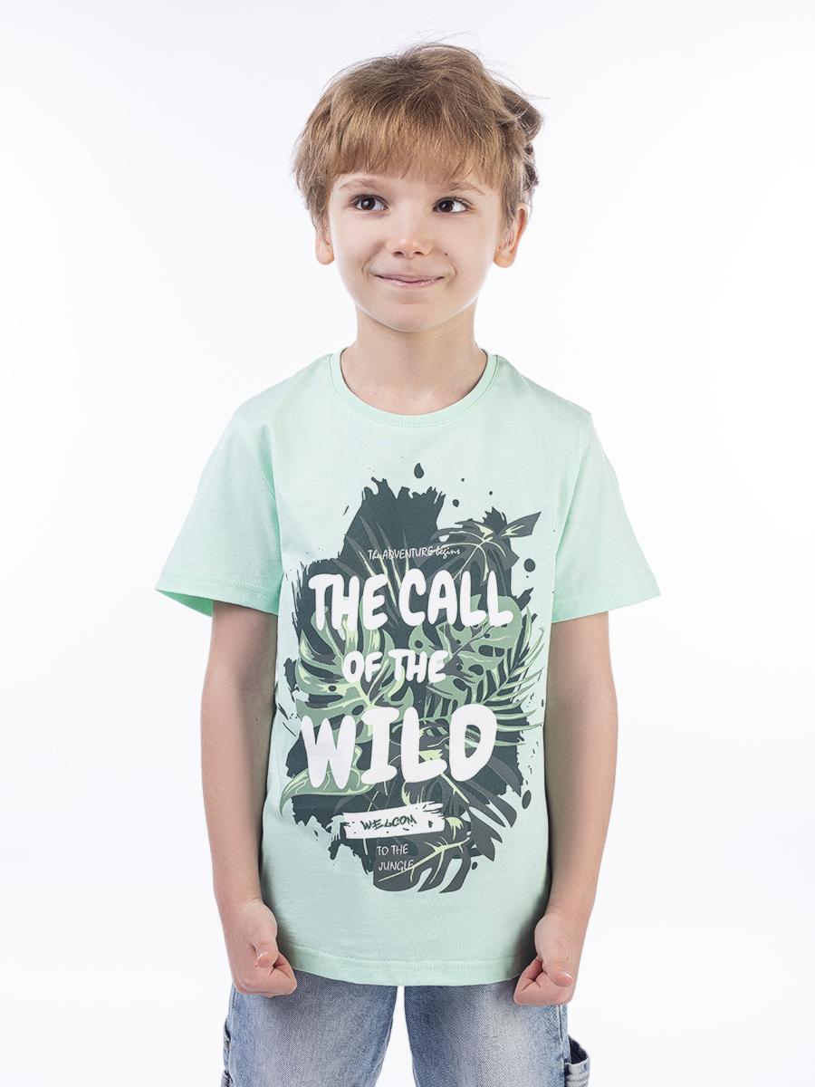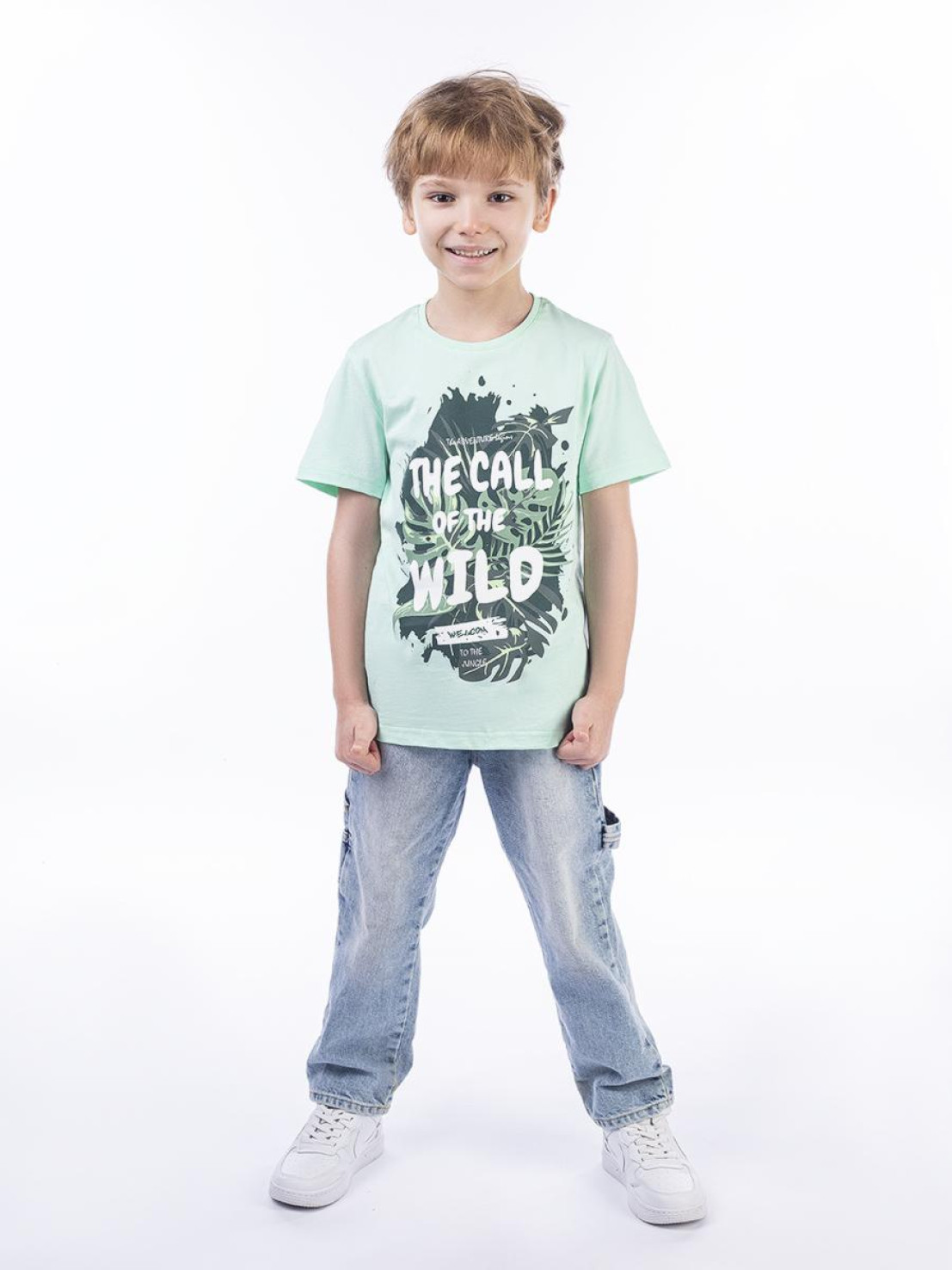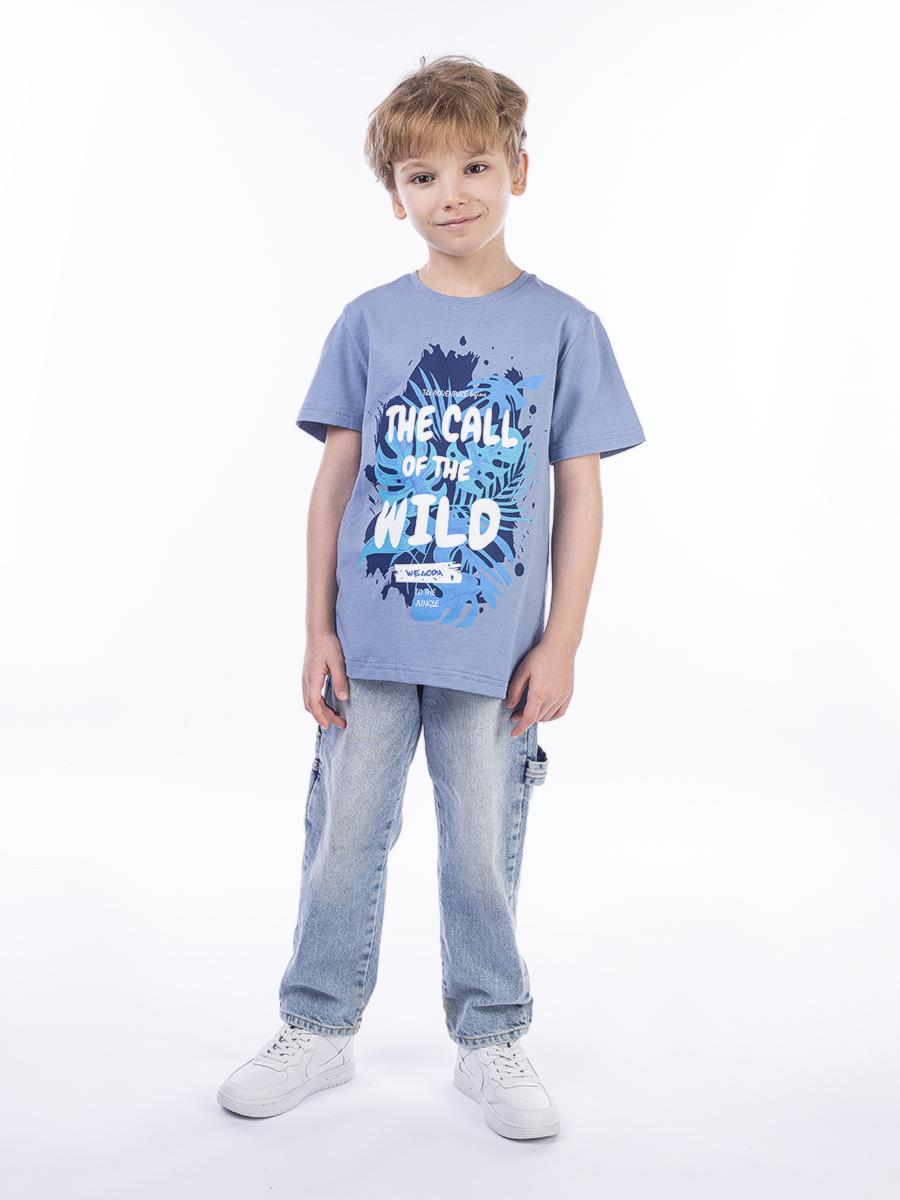 Кулирное полотно: 100% х/б. Футболка-прямой силуэт,перед с печатью,рукав втачной короткий.Горловина обработана ластиком.Низ изделия и рукава подшиты.