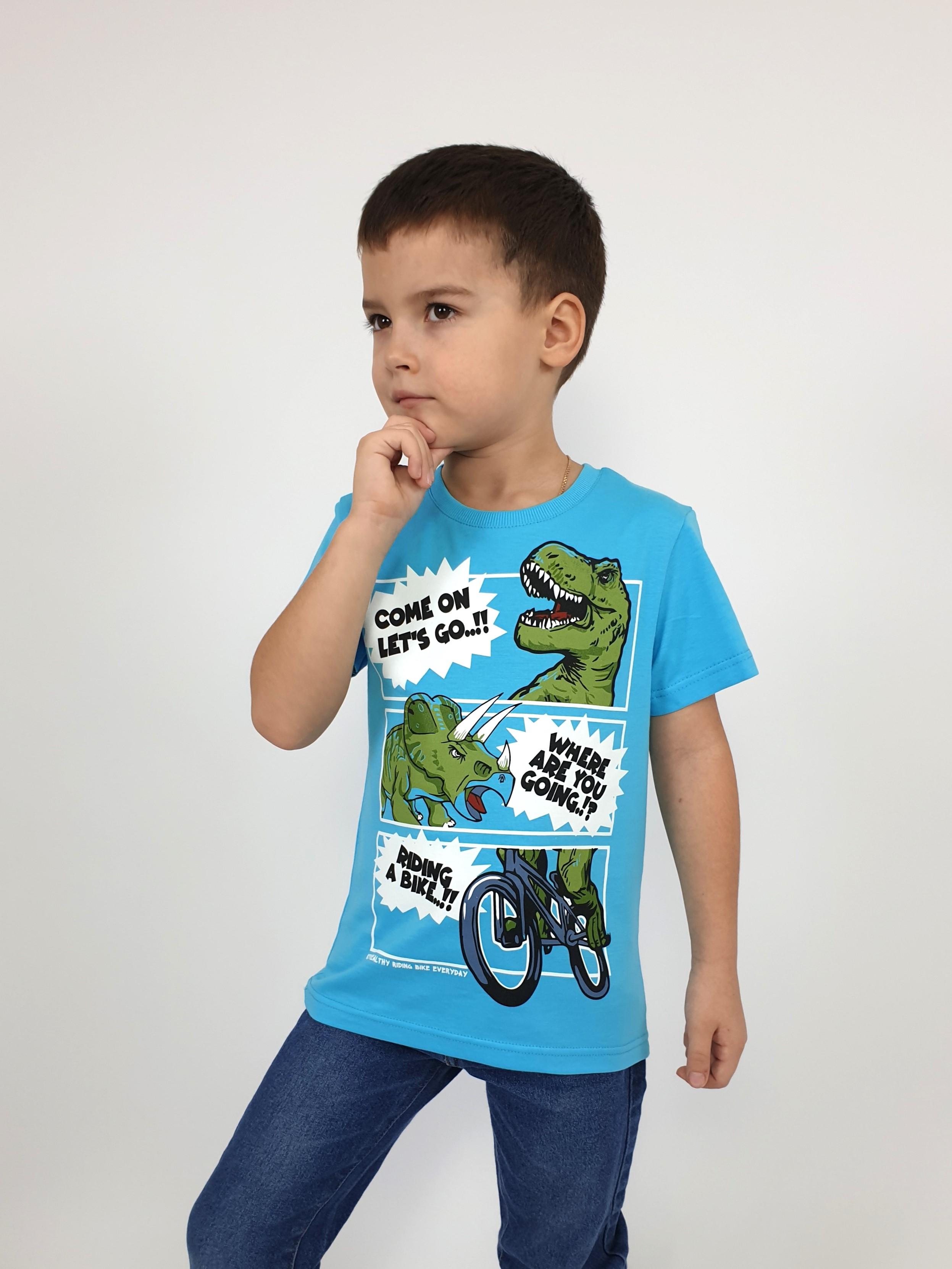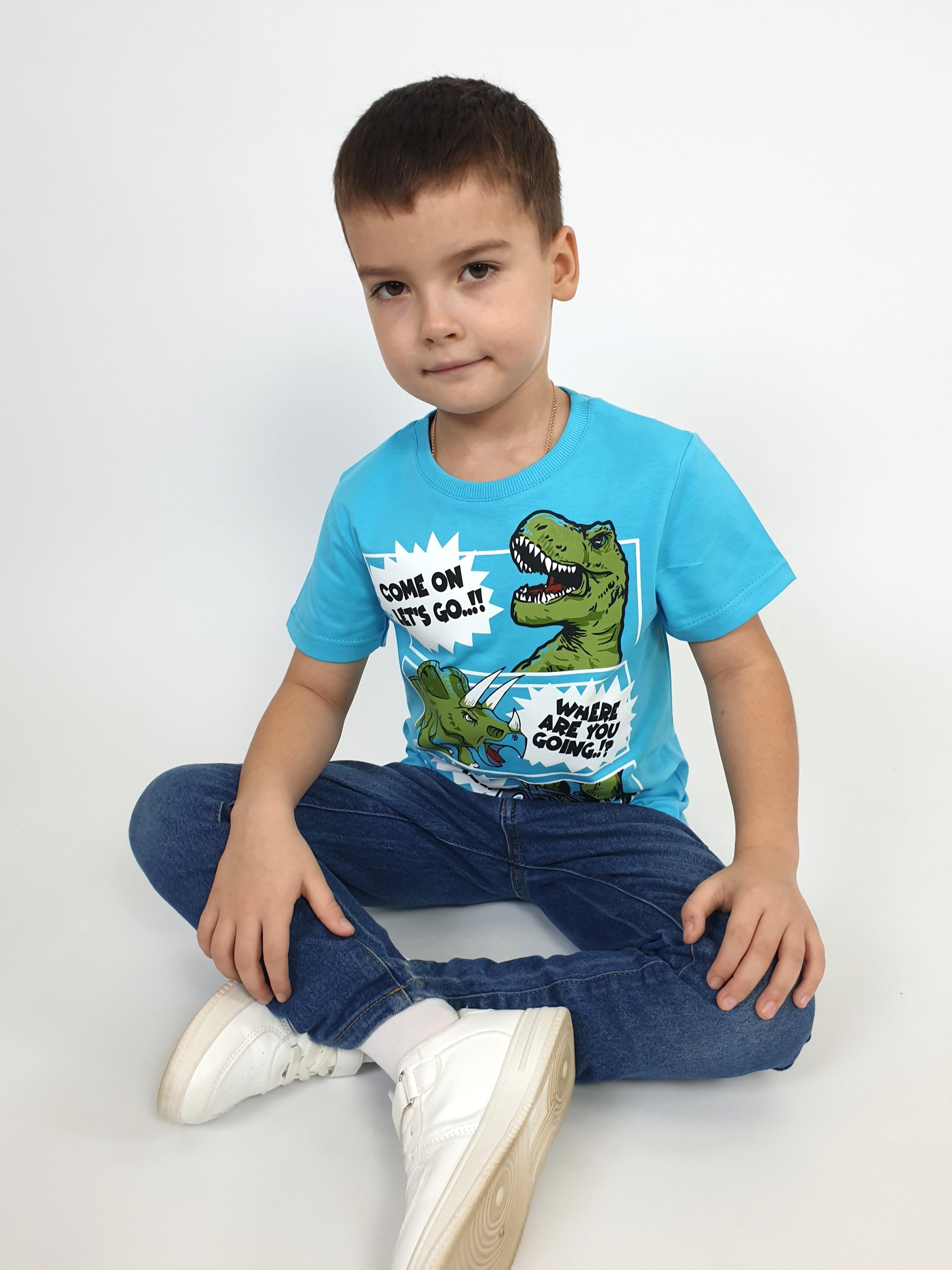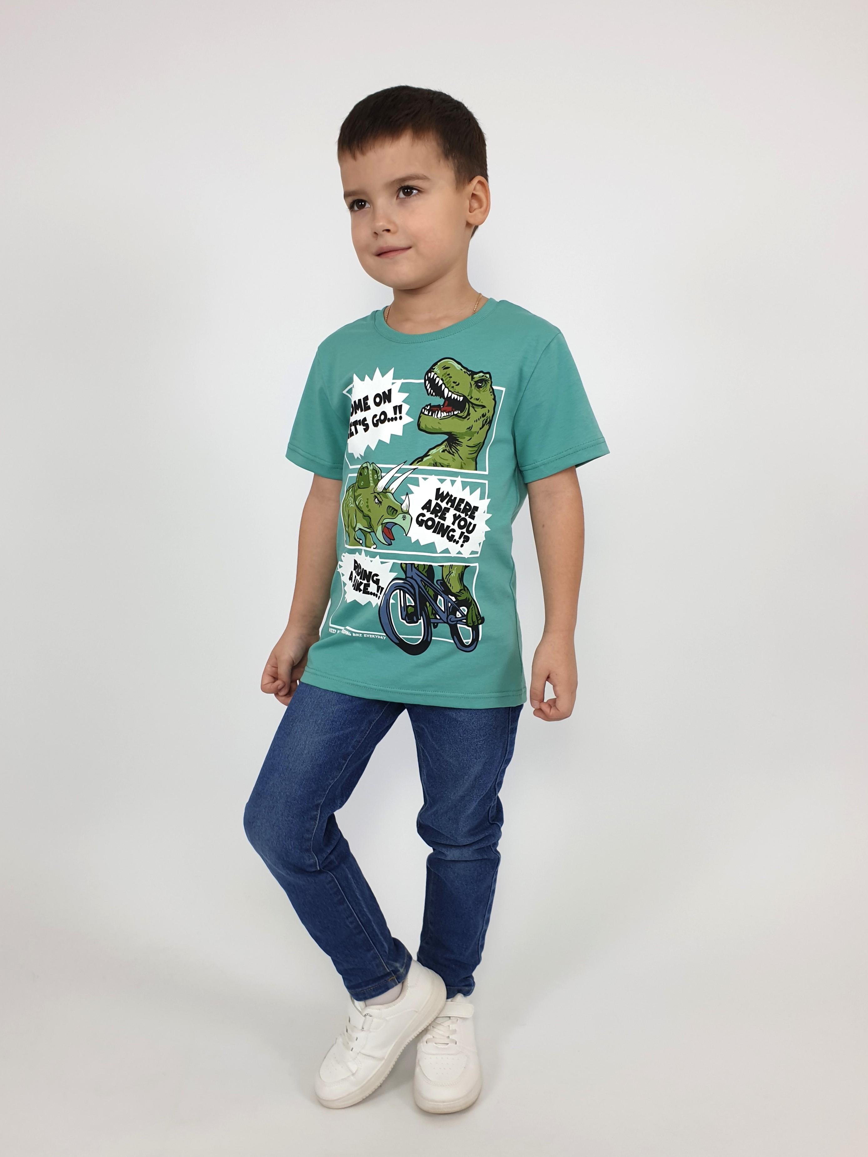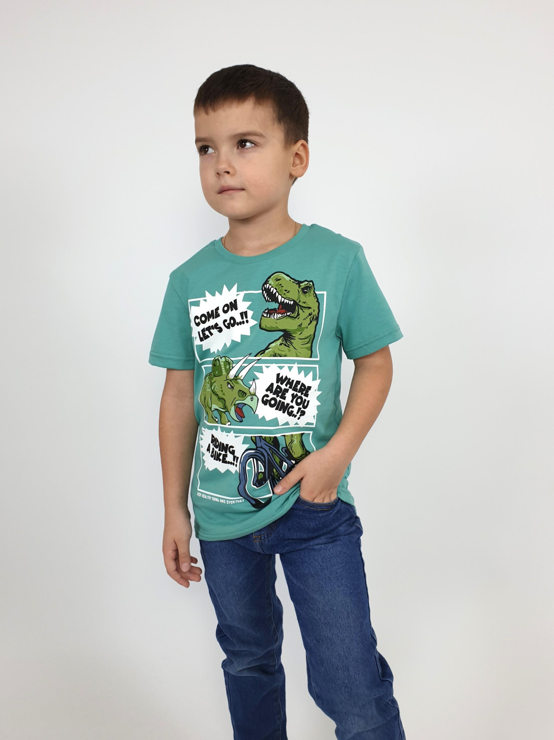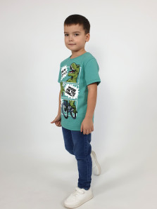 Кулирное полотно: 100% х/б. Футболка-прямой силуэт,перед с печатью,рукав втачной короткий.Горловина обработана ластиком.Низ изделия и рукава подшиты.