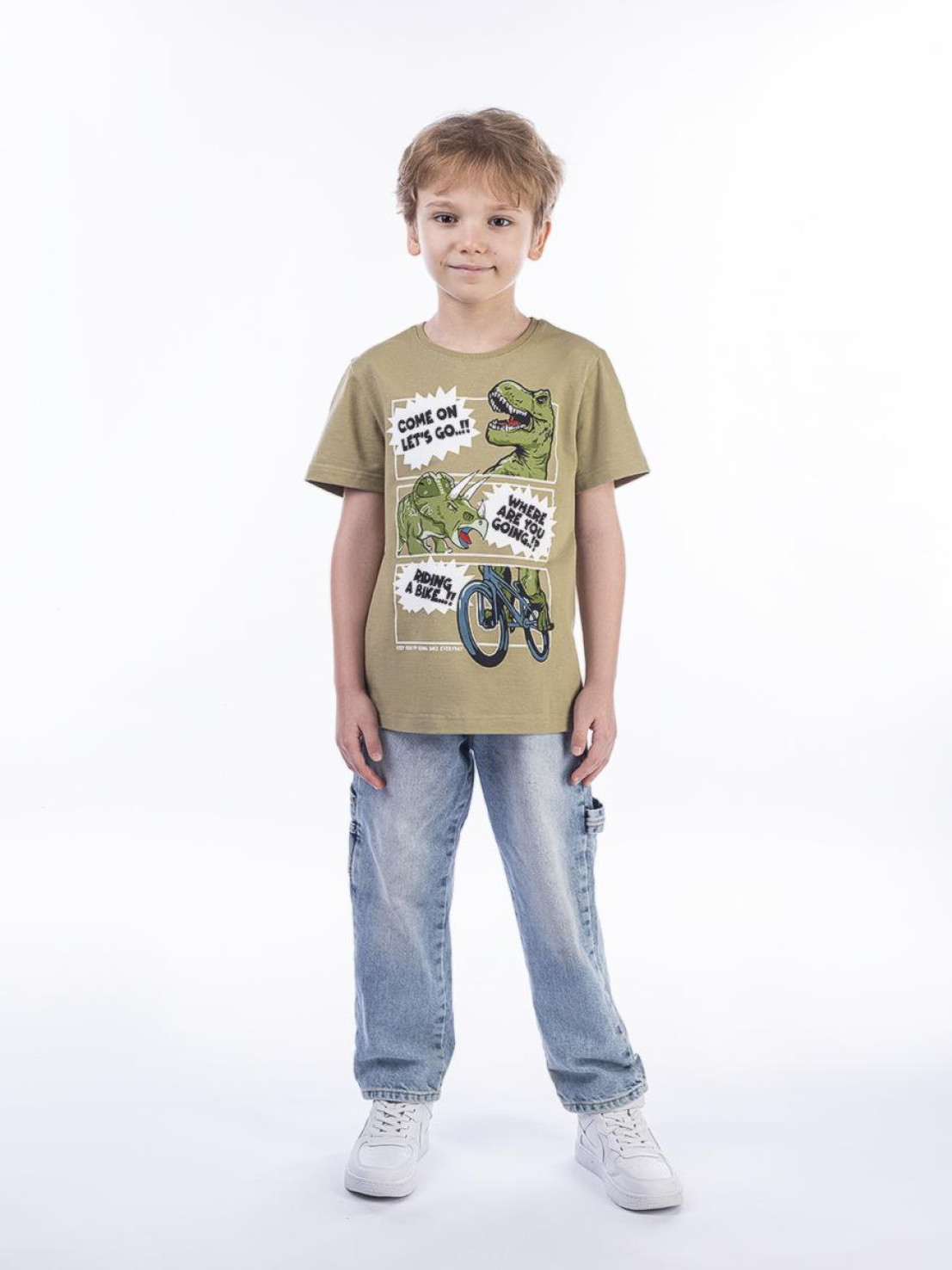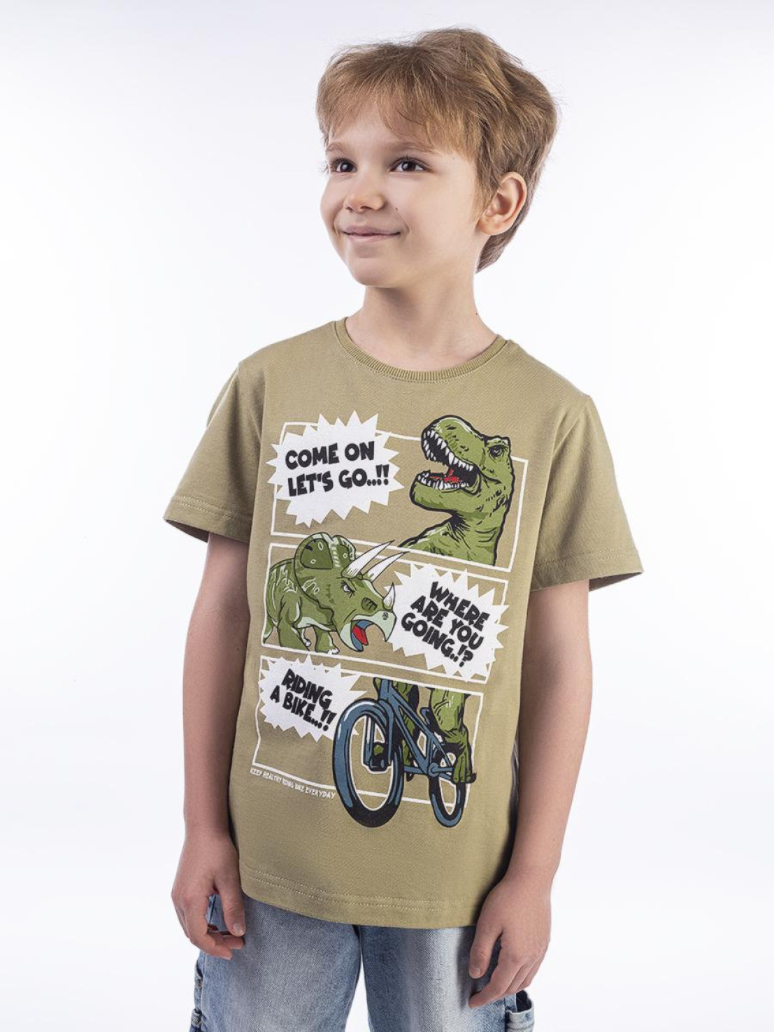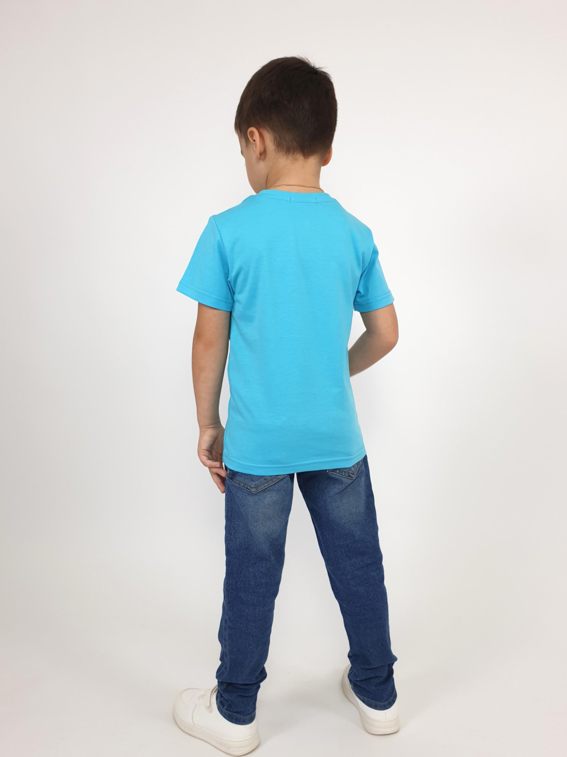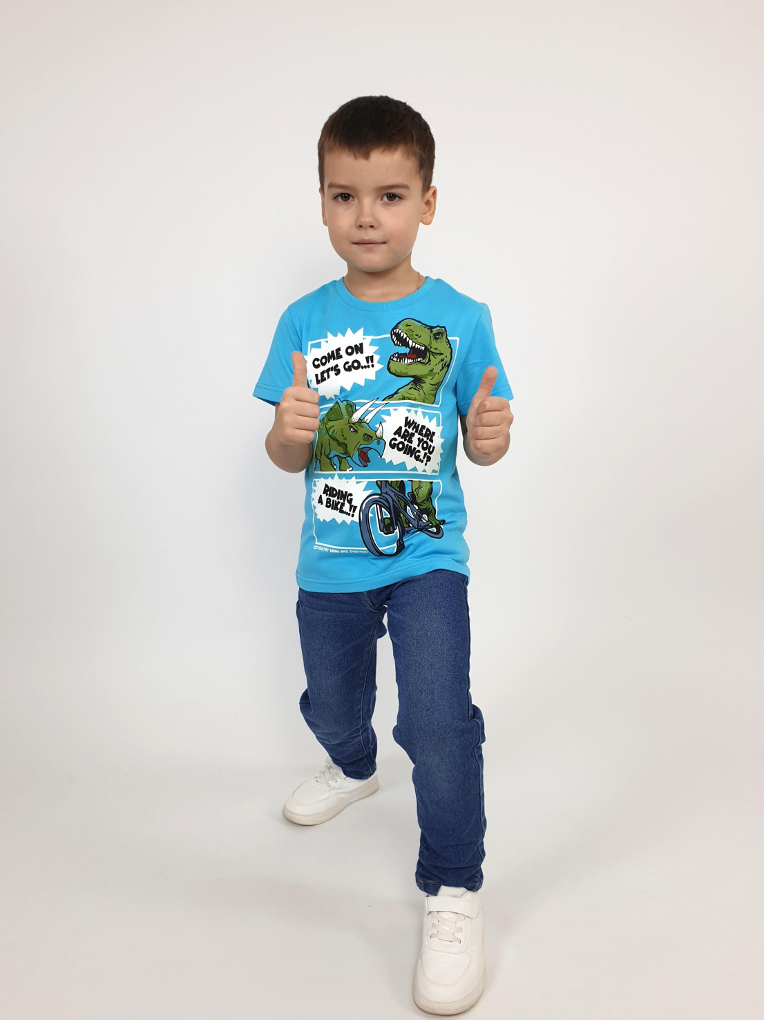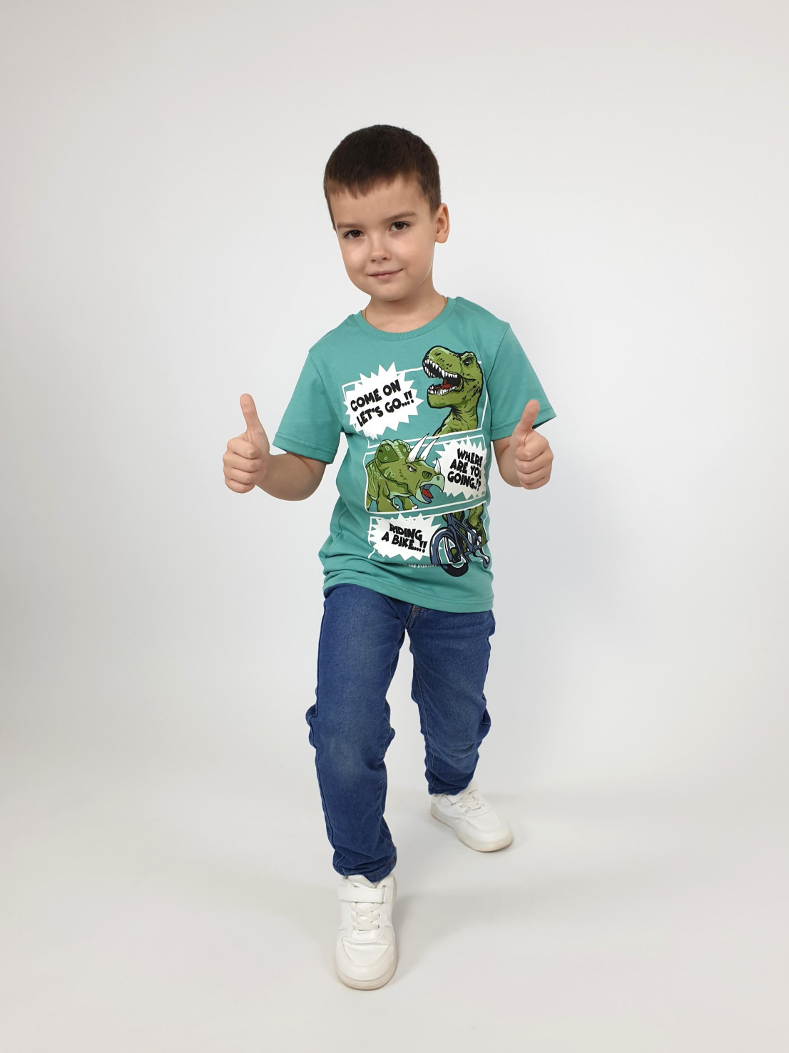 Кулирное полотно: 100% х/б. Футболка-прямой силуэт,перед с печатью,рукав втачной короткий.Горловина обработана ластиком.Низ изделия и рукава подшиты.
