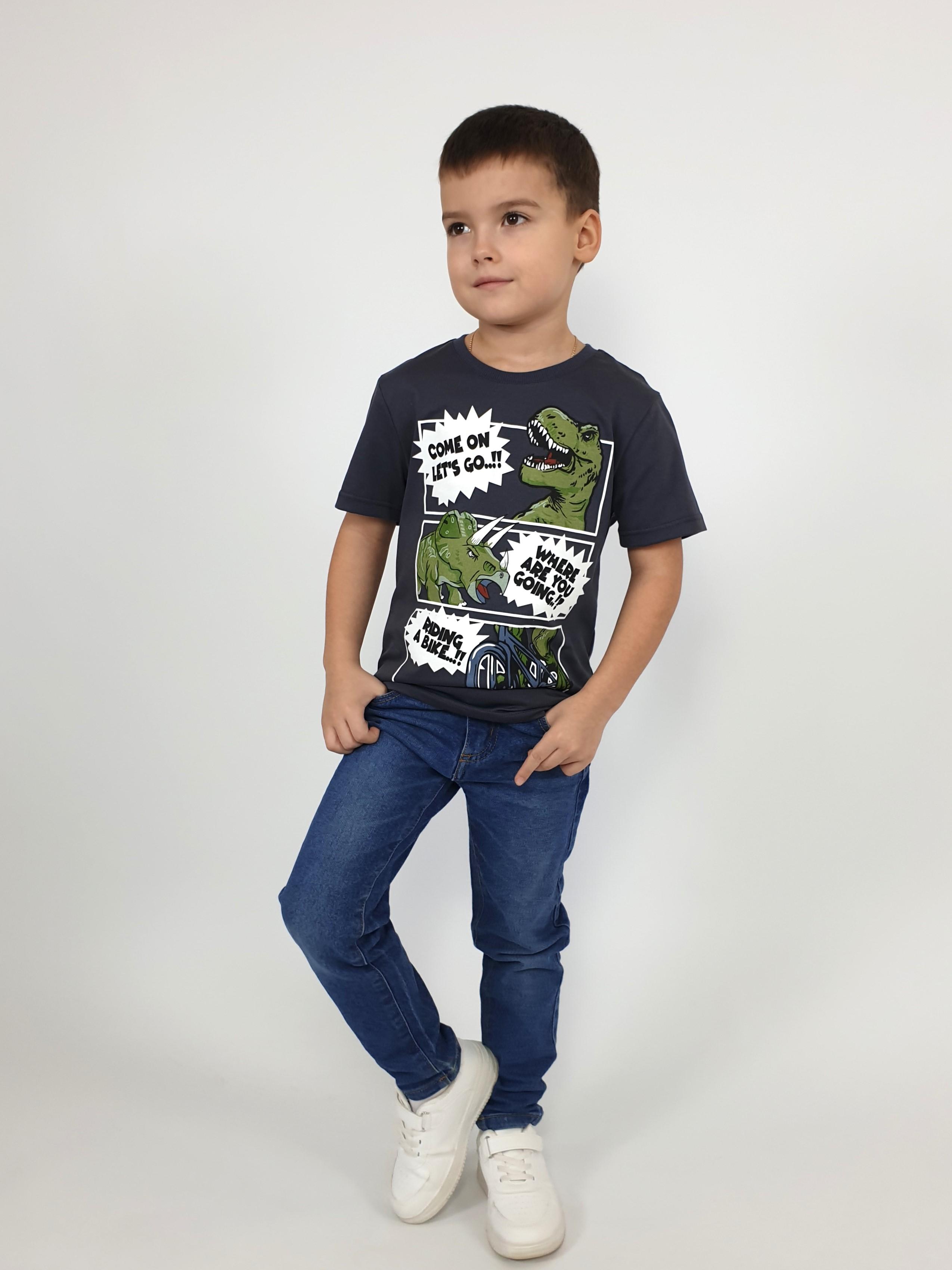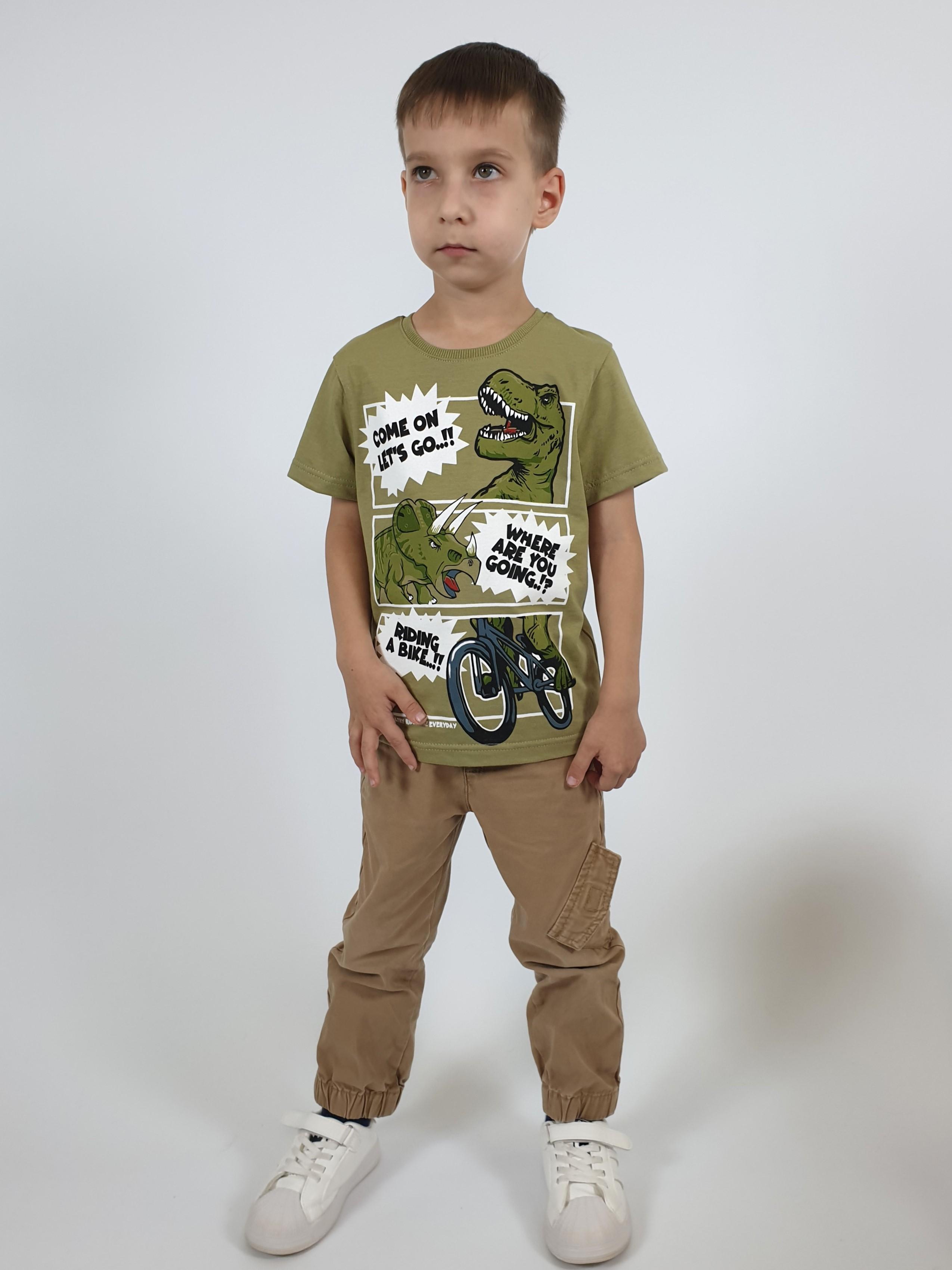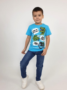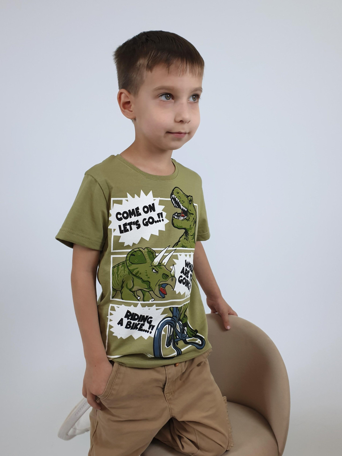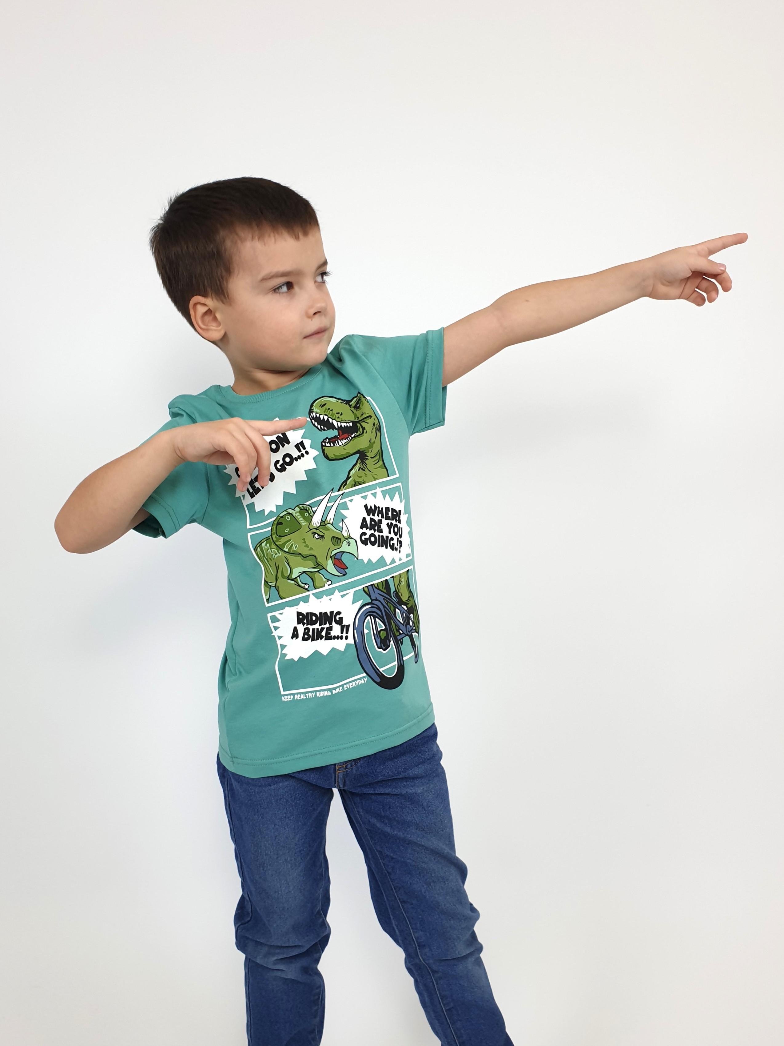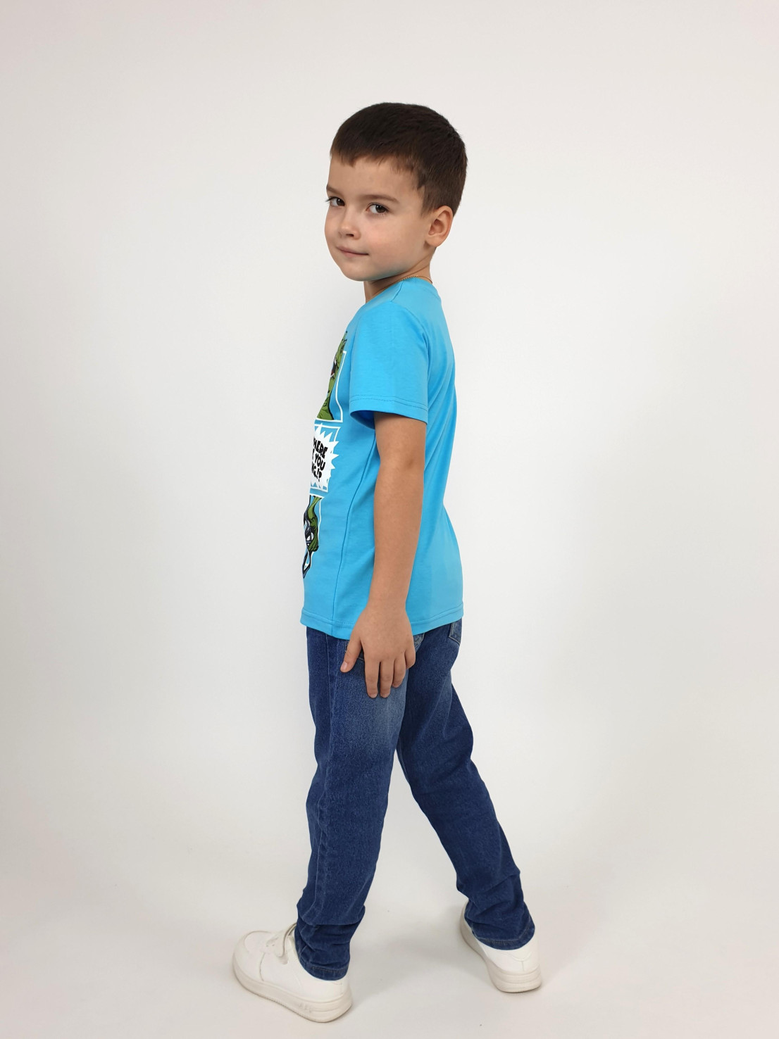 Кулирное полотно: 100% х/б. Футболка-прямой силуэт,перед с печатью,рукав втачной короткий.Горловина обработана ластиком.Низ изделия и рукава подшиты.
