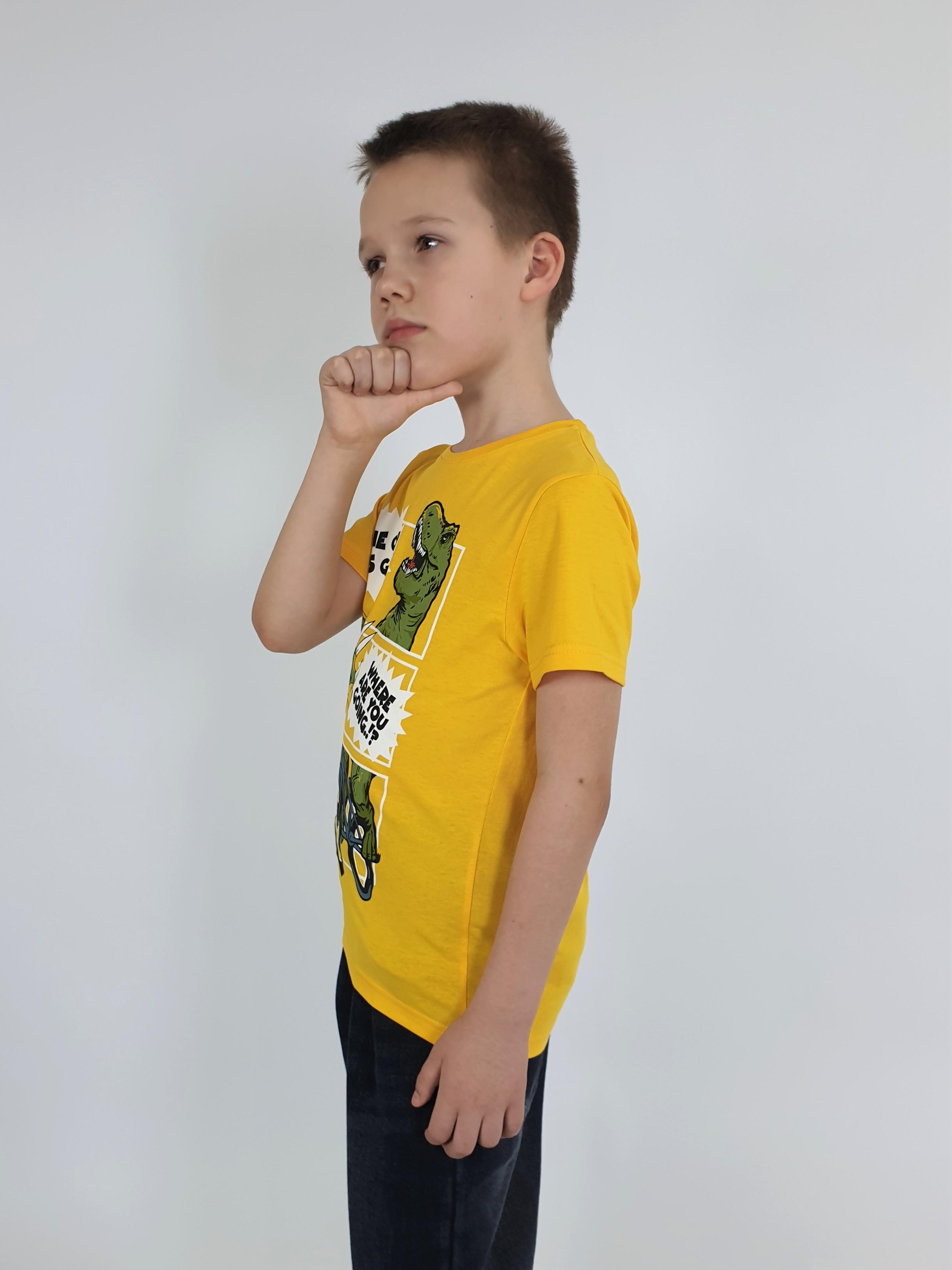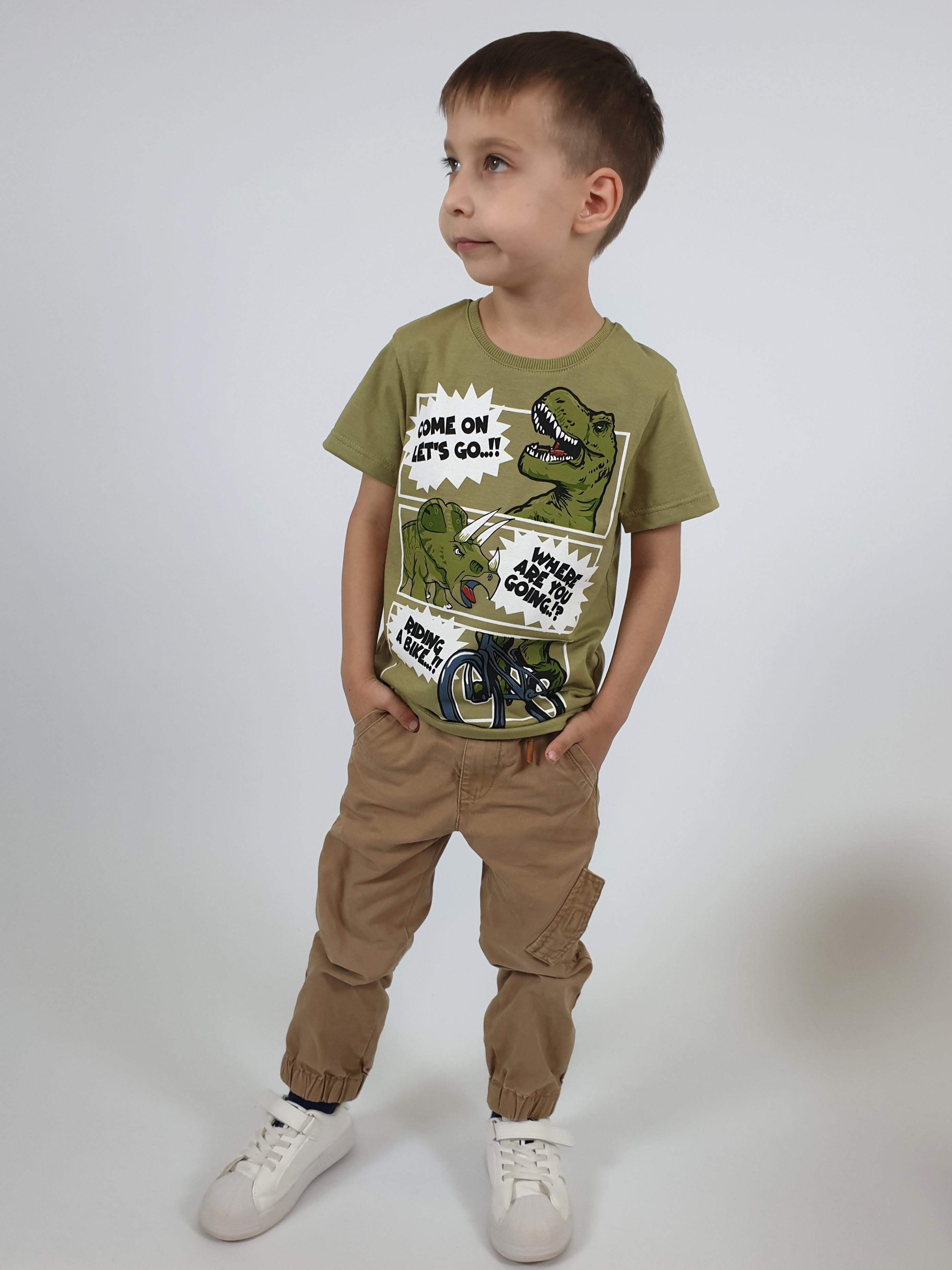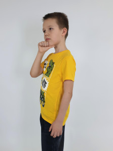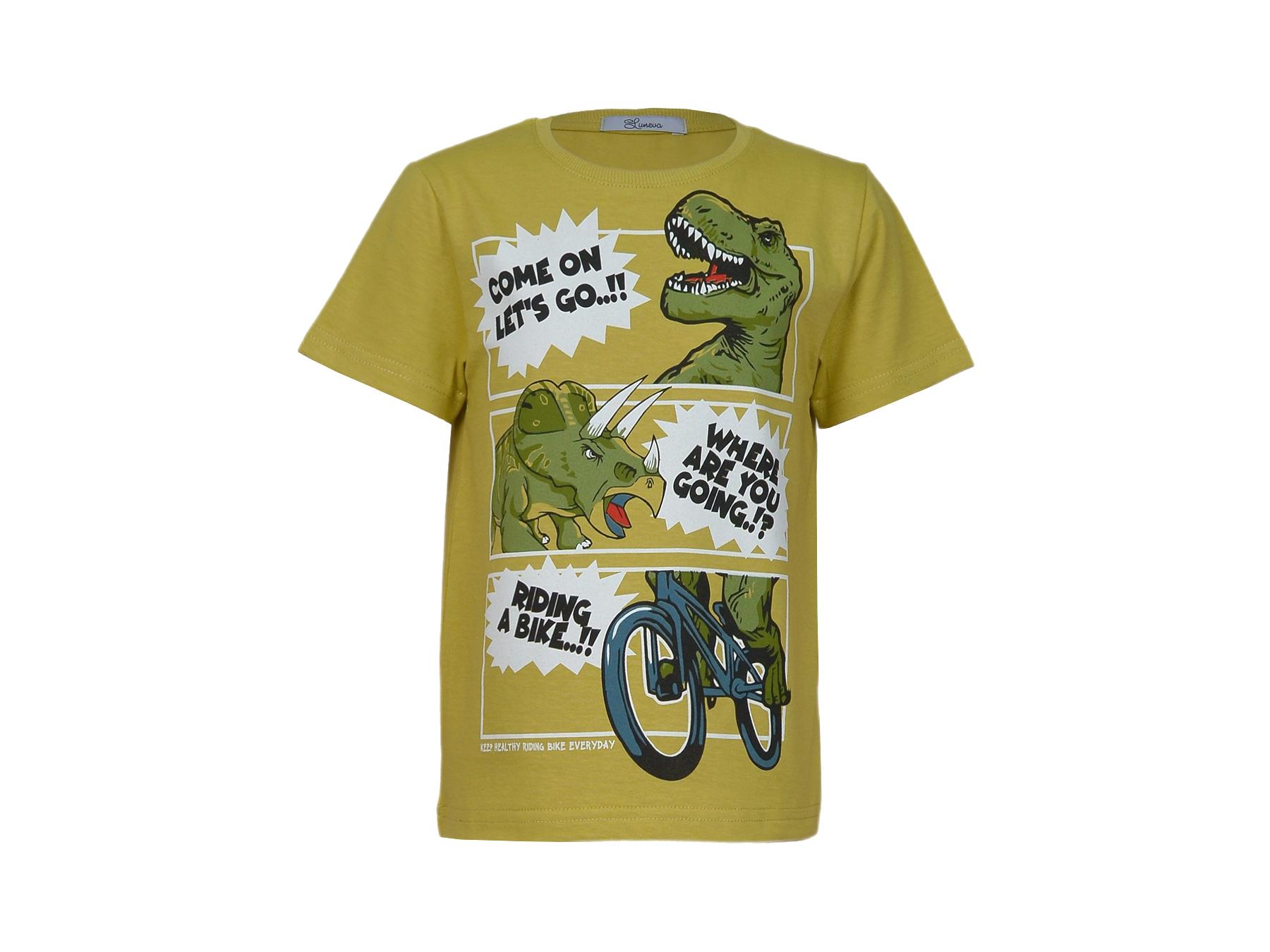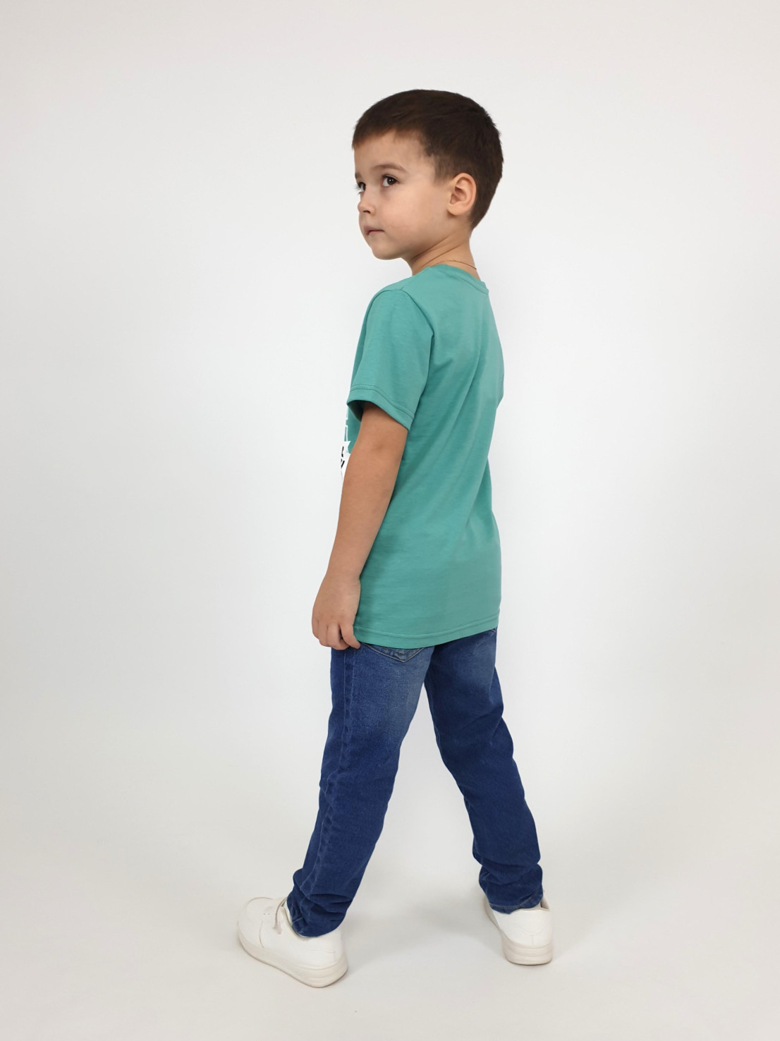 Кулирное полотно: 100% х/б. Футболка-прямой силуэт,перед с печатью,рукав втачной короткий.Горловина обработана ластиком.Низ изделия и рукава подшиты.