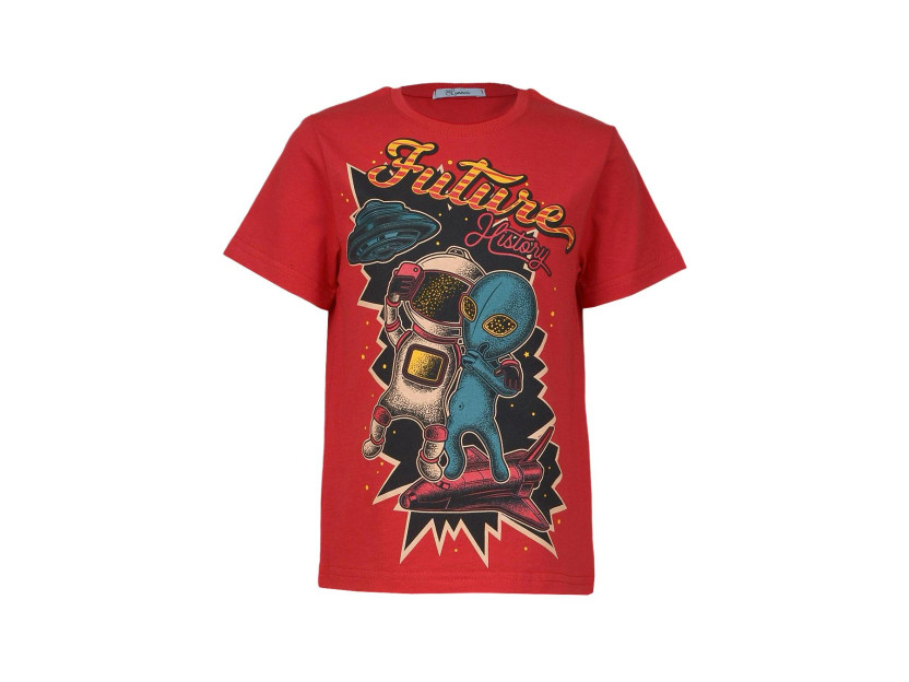 Кулирное полотно:100% х/б. Футболка-прямой силуэт,перед с печатью,рукав втачной короткий.Горловина обработана ластиком.Низ изделия и рукава подшиты.
