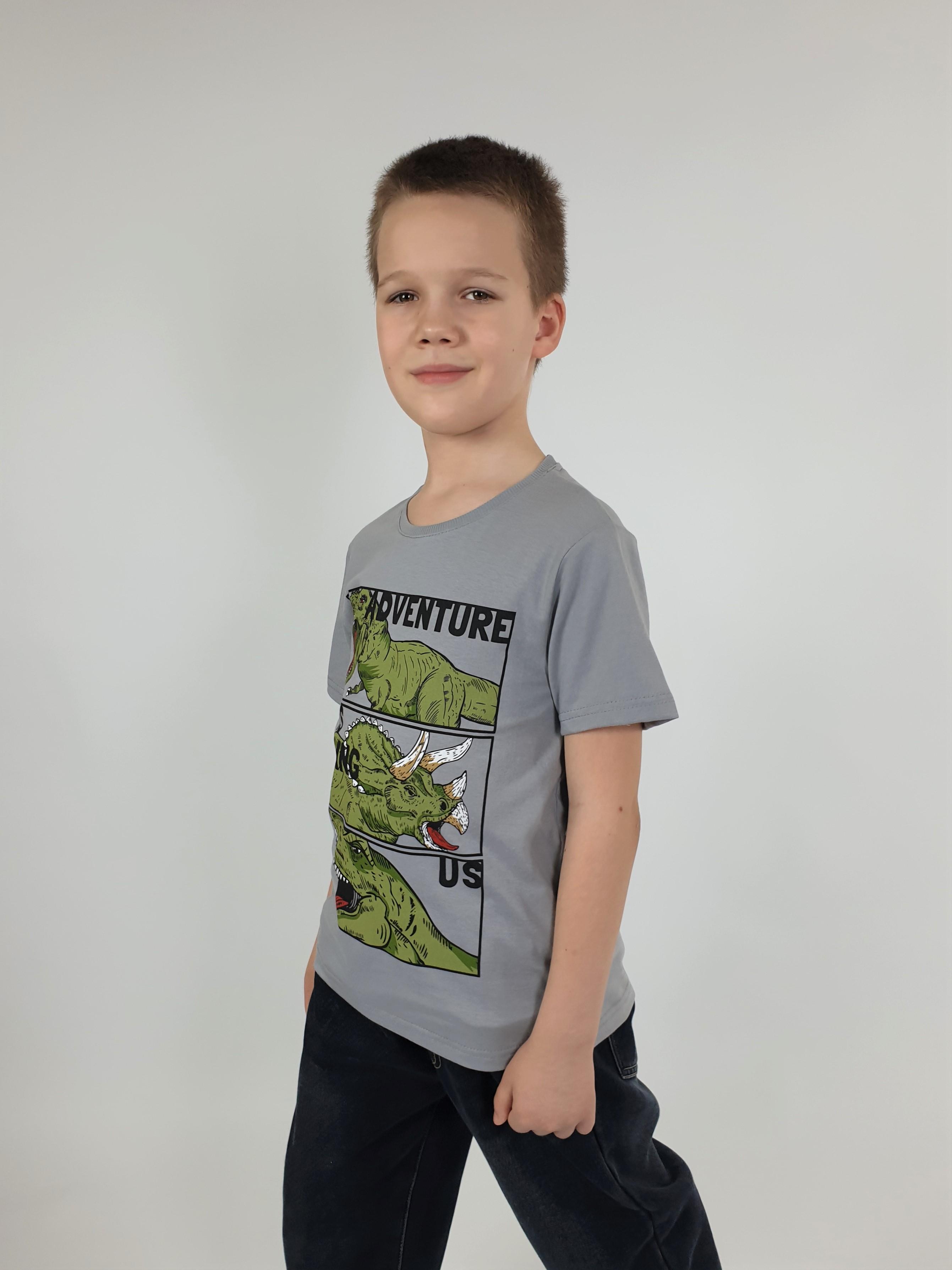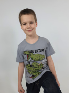 Кулирное полотно:100% х/б. Футболка-прямой силуэт,перед с печатью,рукав втачной короткий.Горловина обработана ластиком.Низ изделия и рукава подшиты.