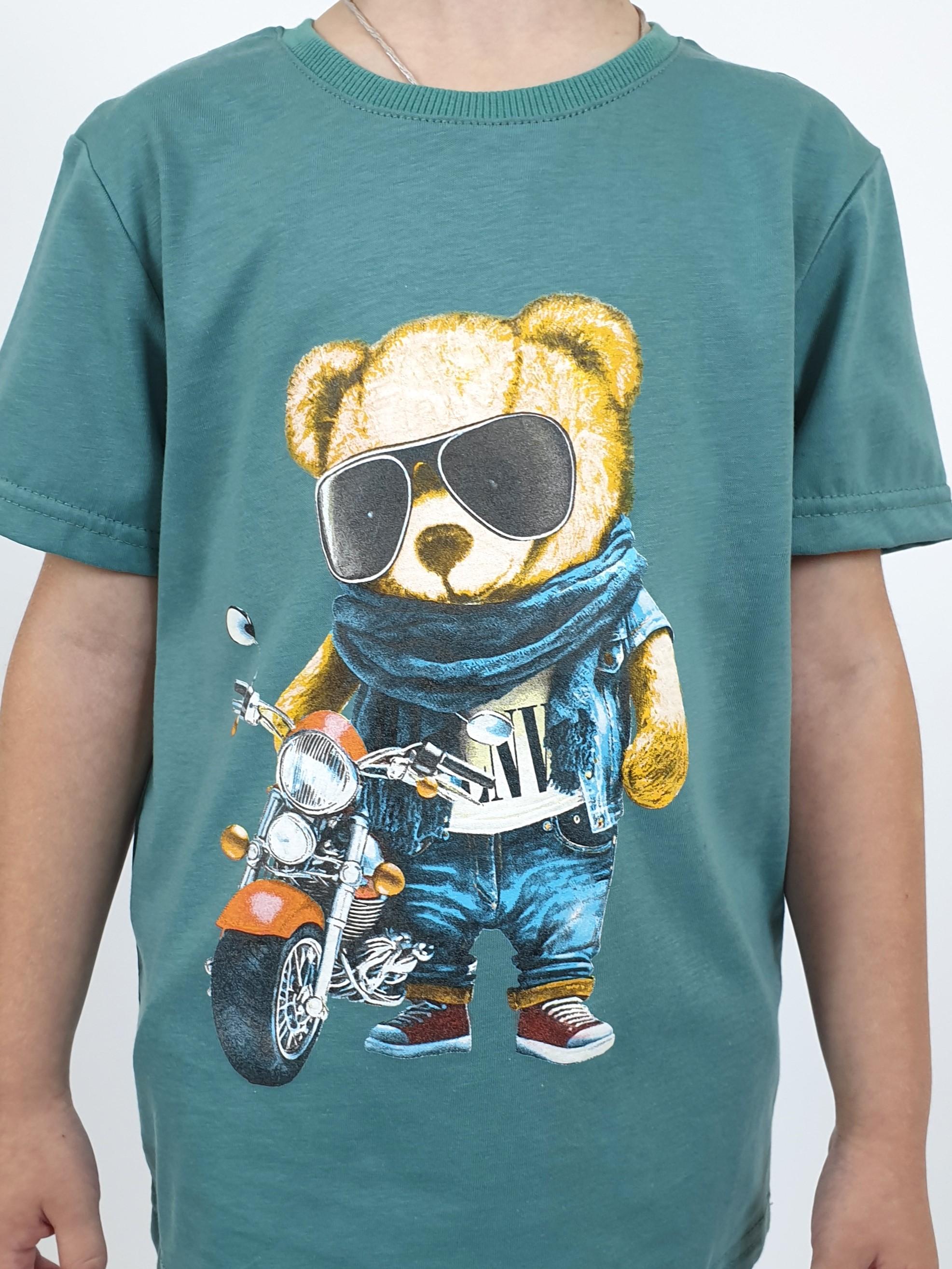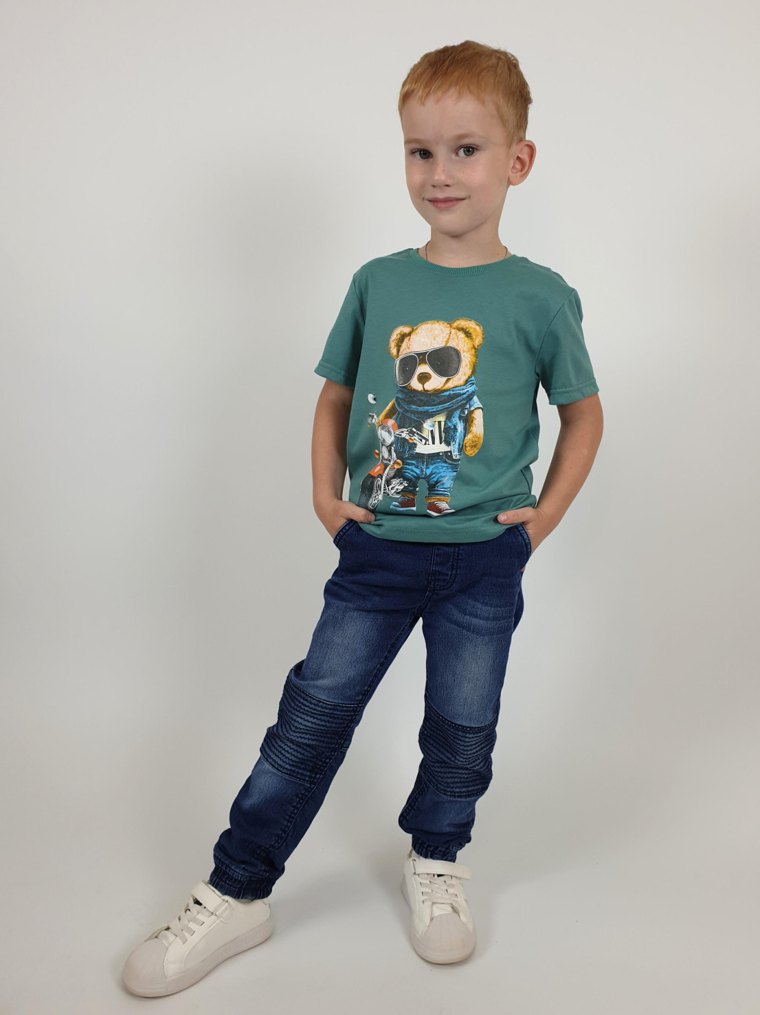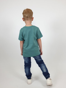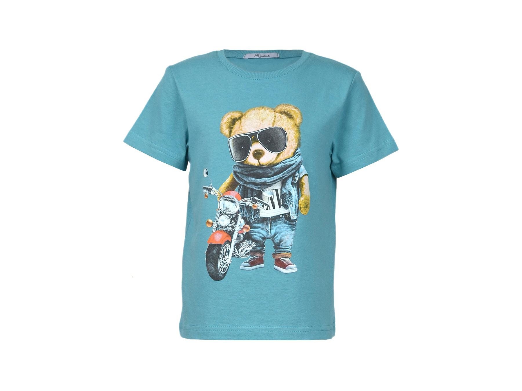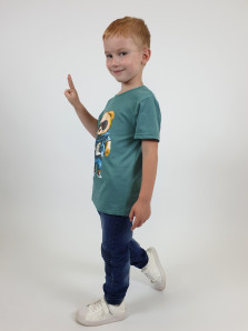Кулирное полотно: 100% х/б. Футболка-прямой силуэт,перед с печатью,рукав втачной короткий.Горловина обработана ластиком.Низ изделия и рукава подшиты.