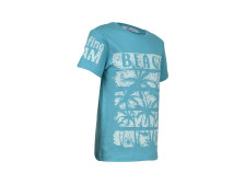 Кулирное полотно: 100% х/б. Футболка-прямой силуэт,перед с печатью.Рукав короткий на правом печать.Горловина обработана ластиком.Низ изделия и рукава подшиты.