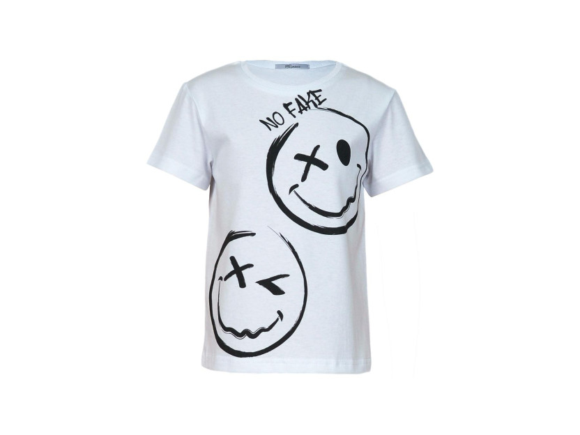 Кулирное полотно:100% х/б. Футболка-прямой силуэт,перед с печатью,рукав втачной короткий.Горловина обработана ластиком.Низ изделия и рукава подшиты.