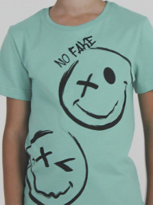 Кулирное полотно:100% х/б. Футболка-прямой силуэт,перед с печатью,рукав втачной короткий.Горловина обработана ластиком.Низ изделия и рукава подшиты.