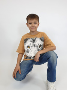 Кулирное полотно: 100% х/б. Футболка(оверсайз)-прямой силуэт спущенное плечо,короткий рукав,перед с печатью.Горловина обработана ластиком.Низ изделия и рукава подшиты.