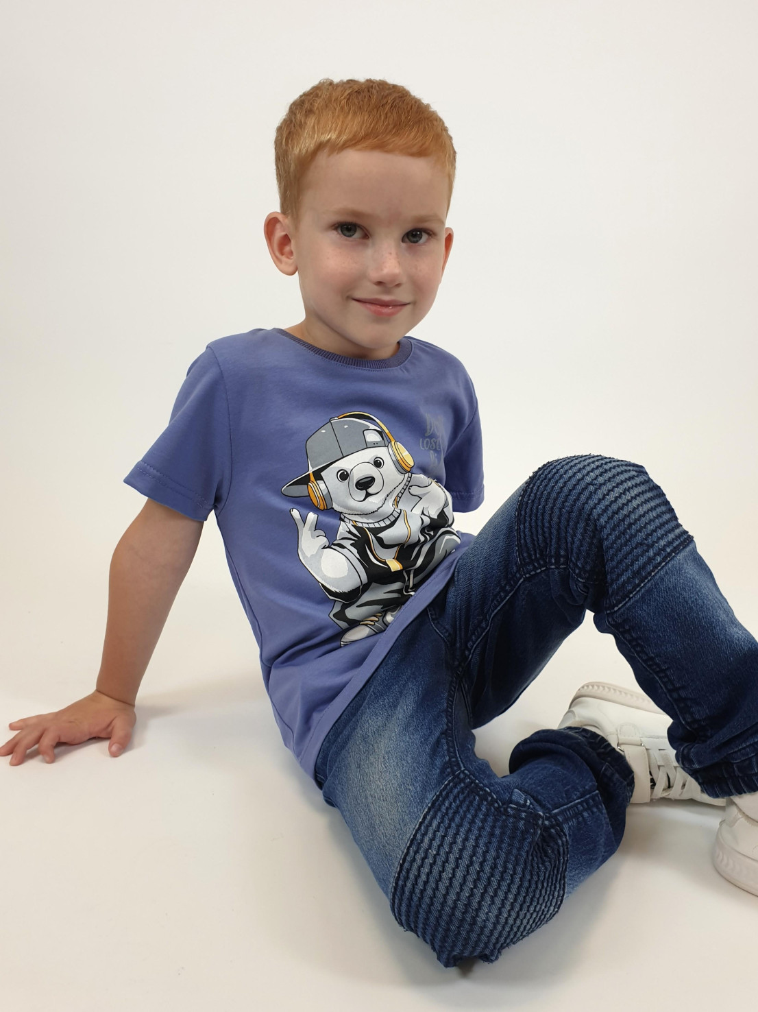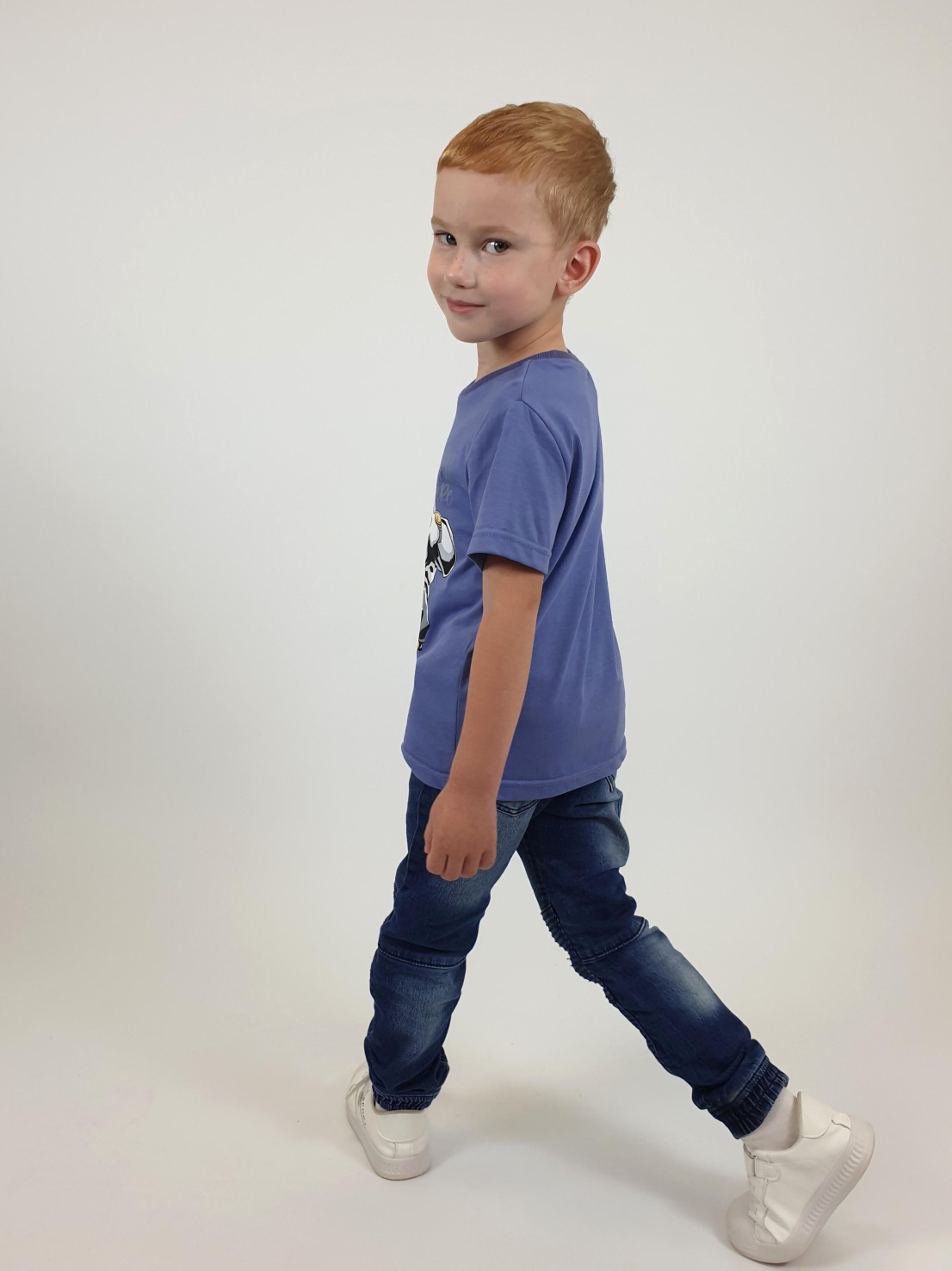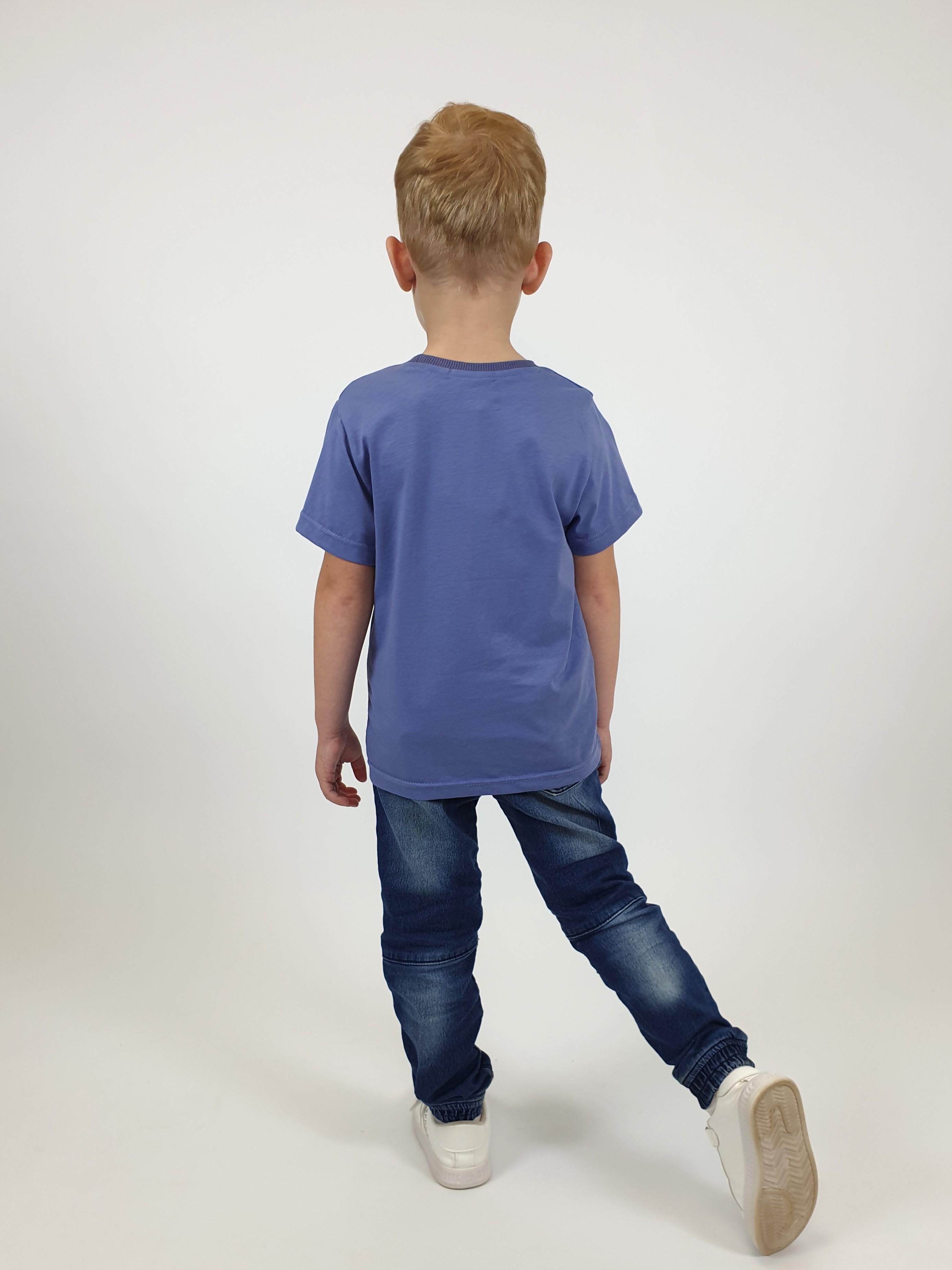 Кулирное полотно:100% х/б. Футболка-прямой силуэт,перед с печатью,рукав втачной короткий.Горловина обработана ластиком.Низ изделия и рукава подшиты.