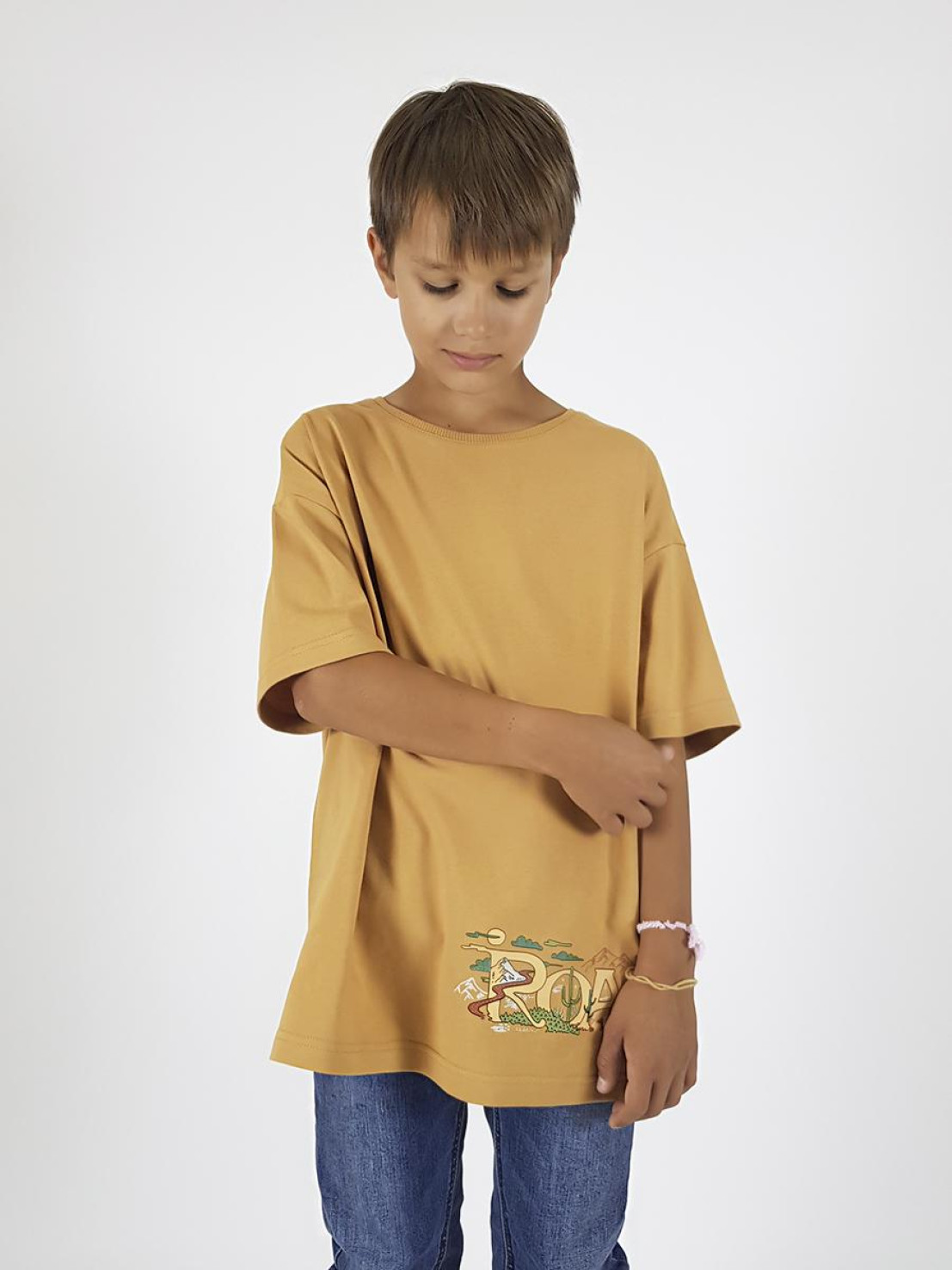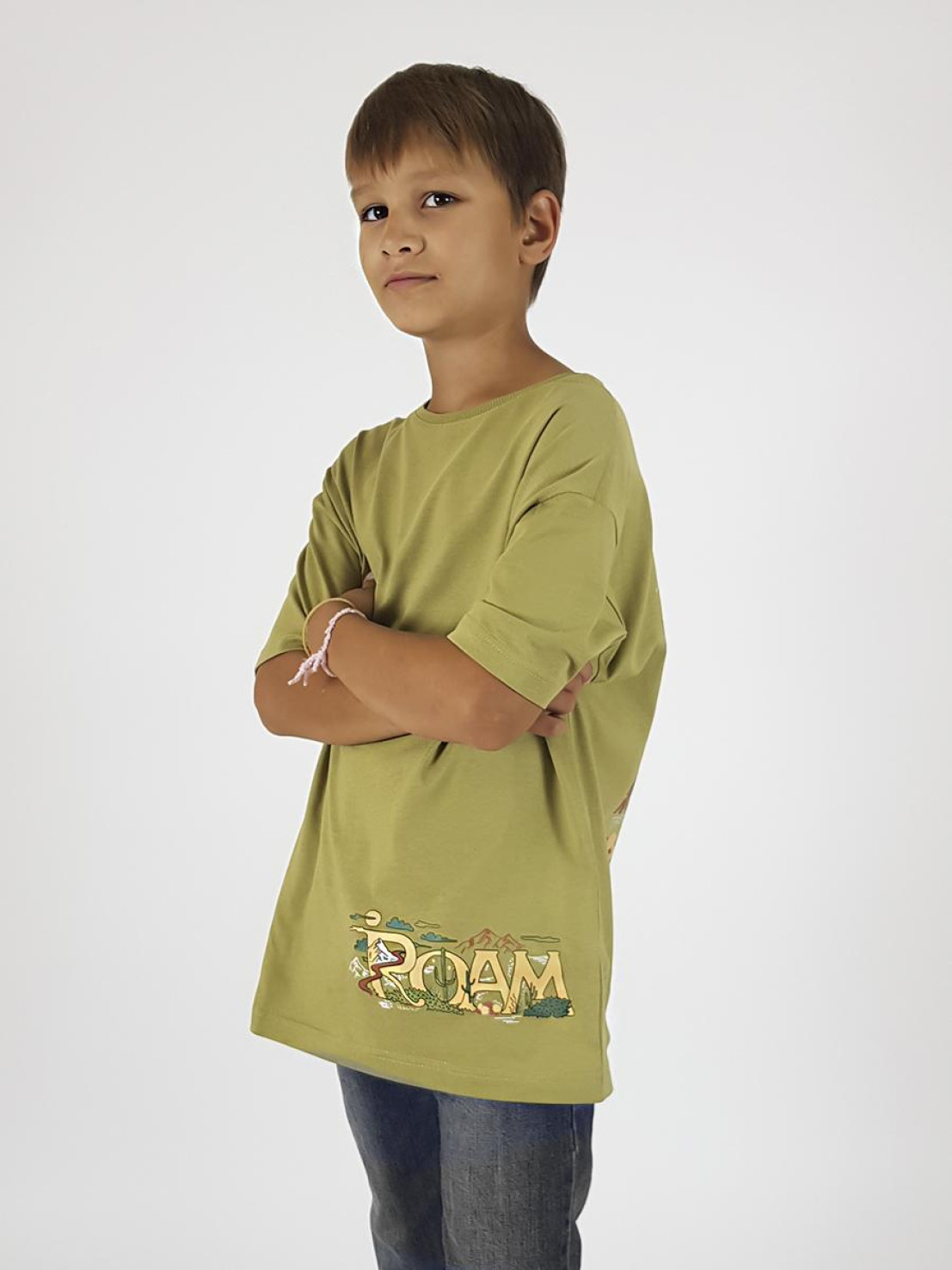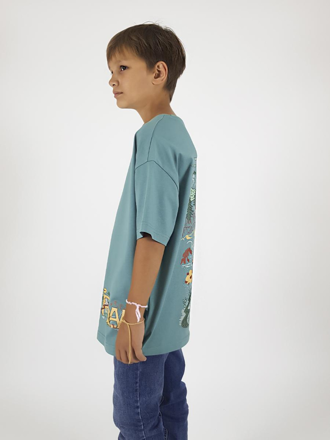 Кулирное полотно: 100% х/б. Футболка(оверсайз)-прямой силуэт спущенное плечо,короткий рукав,перед и спинка с печатью.Горловина обработана планкой из ластика.Низ изделия и рукава подшиты.