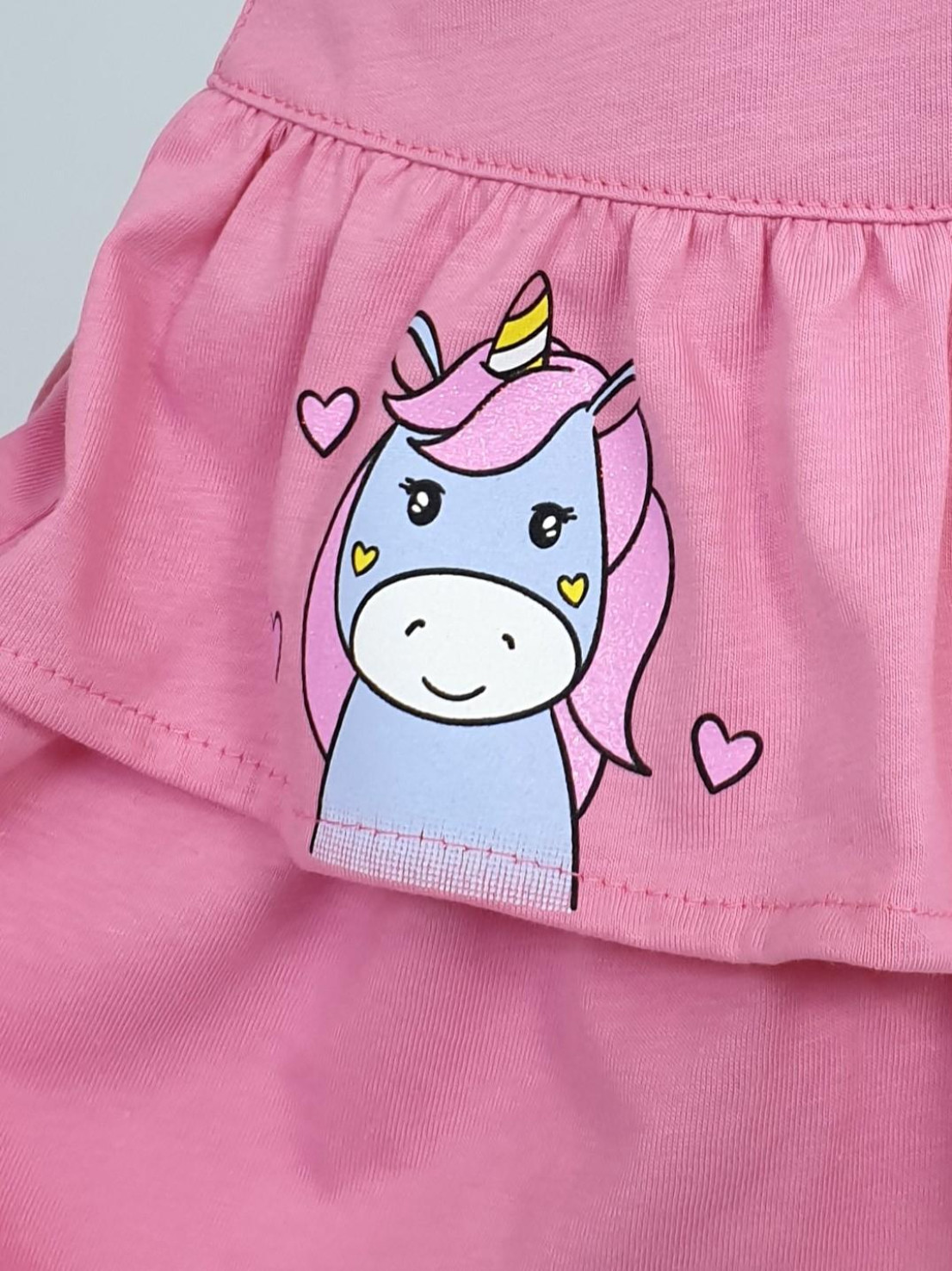 Кулирное полотно:100% х/б. Юбка-на кокетке с резинкой и двумя рюшами.Печать на переде рюш.