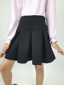 Футер двух-нитка: 80% х/б,20% п/э.,цвет-синий. Юбка-на кокетке с фиксирующей резинкой сзади,на молнии в боковом шве.Встречные складки спереди и сзади.