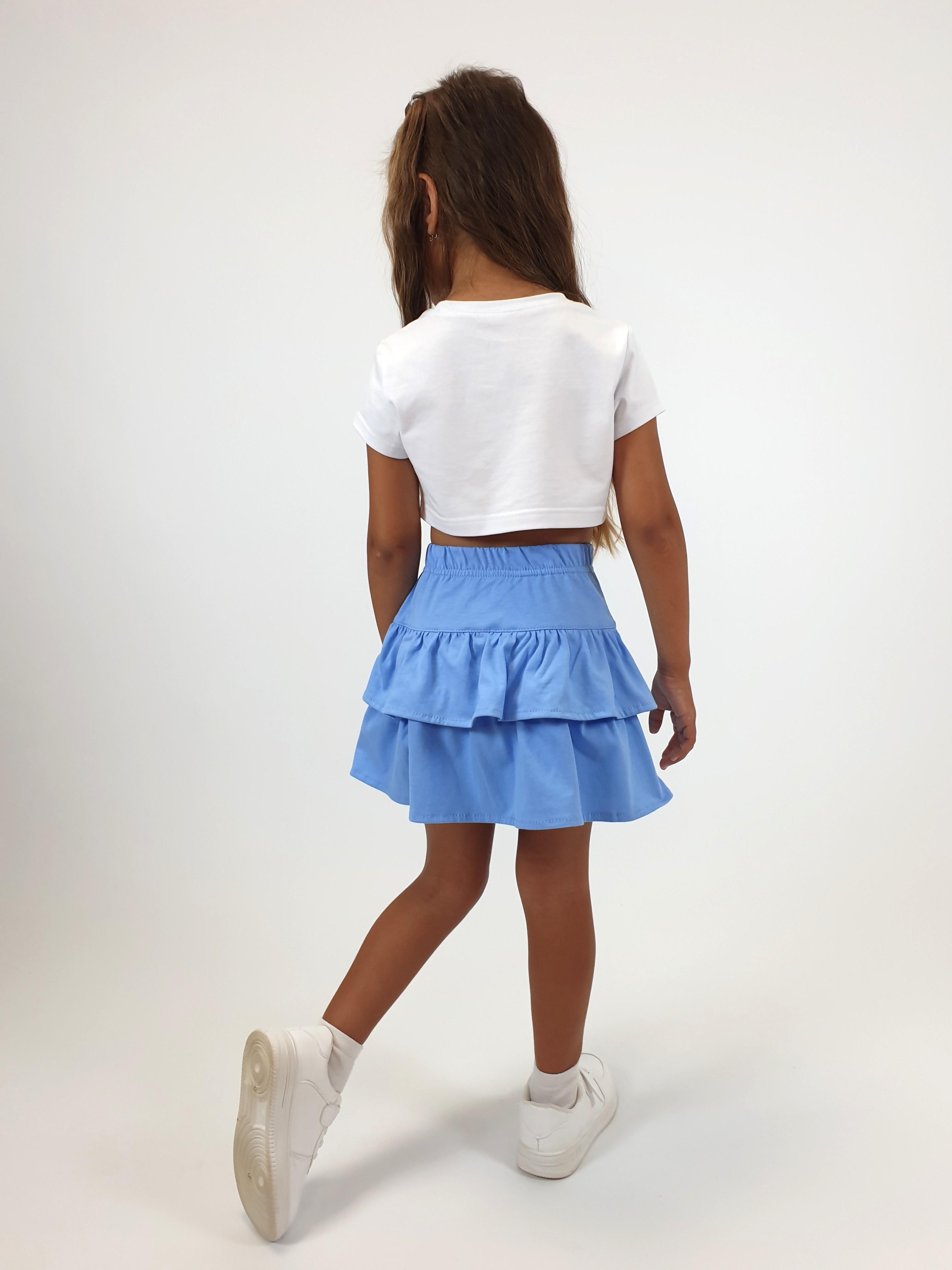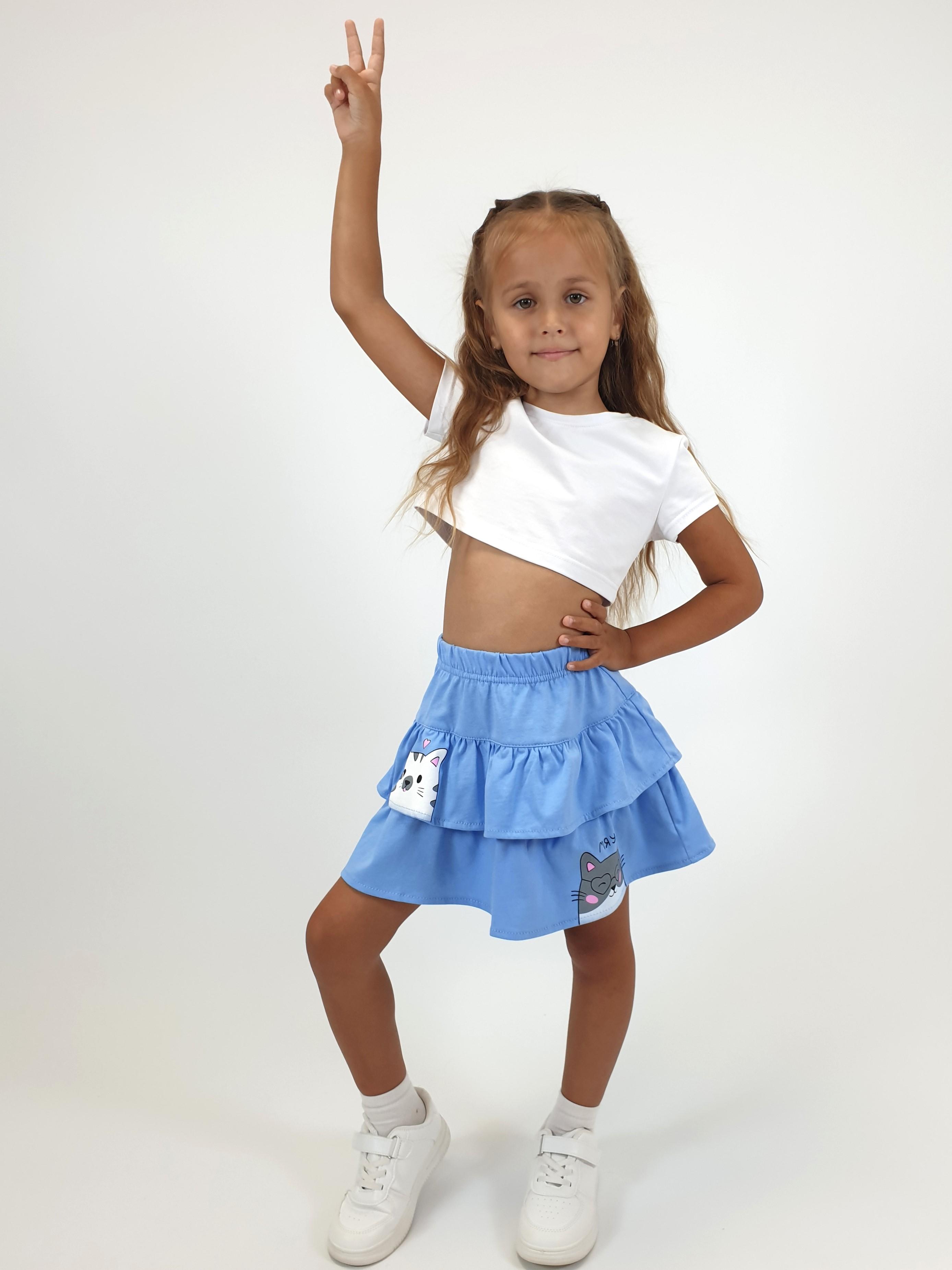 Кулирное полотно:100% х/б. Юбка-на кокетке с резинкой и двумя рюшами.Печать на переде рюш.