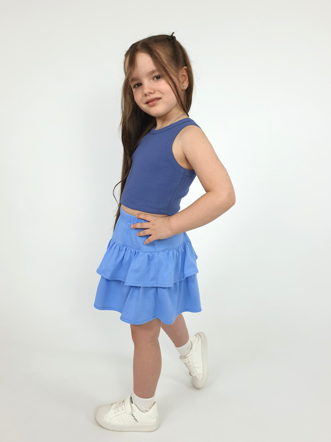 Кулирное полотно:100% х/б. Юбка-на кокетке с резинкой и двумя рюшами.