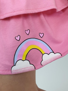 Кулирное полотно:100% х/б. Юбка-на кокетке с резинкой и двумя рюшами.Печать на переде рюш.