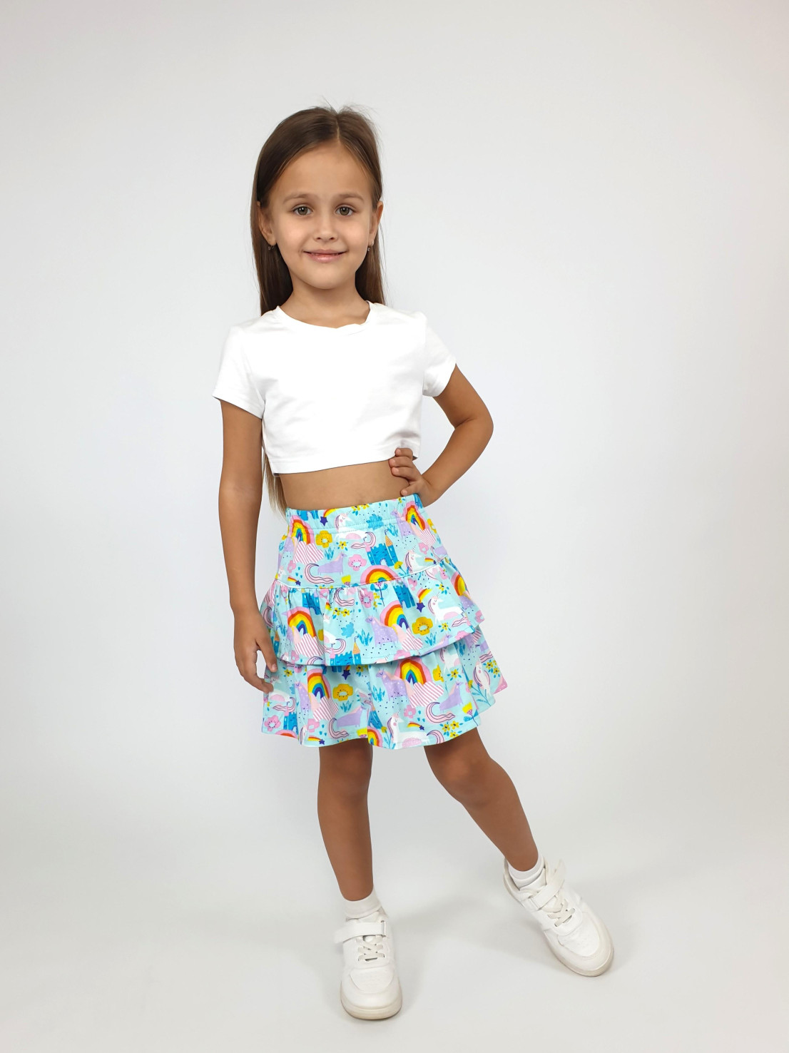 Кулирное полотно:100% х/б. Юбка-на кокетке с резинкой и двумя рюшами.