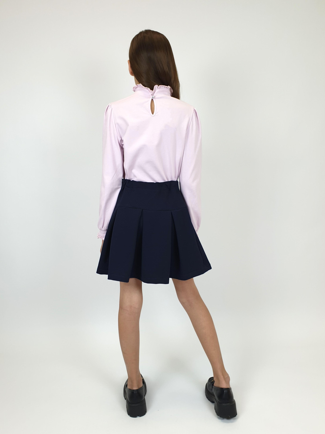 Футер двух-нитка: 80% х/б,20% п/э. Юбка-на кокетке с фиксирующей резинкой сзади,на молнии в боковом шве.Встречные складки спереди и сзади.