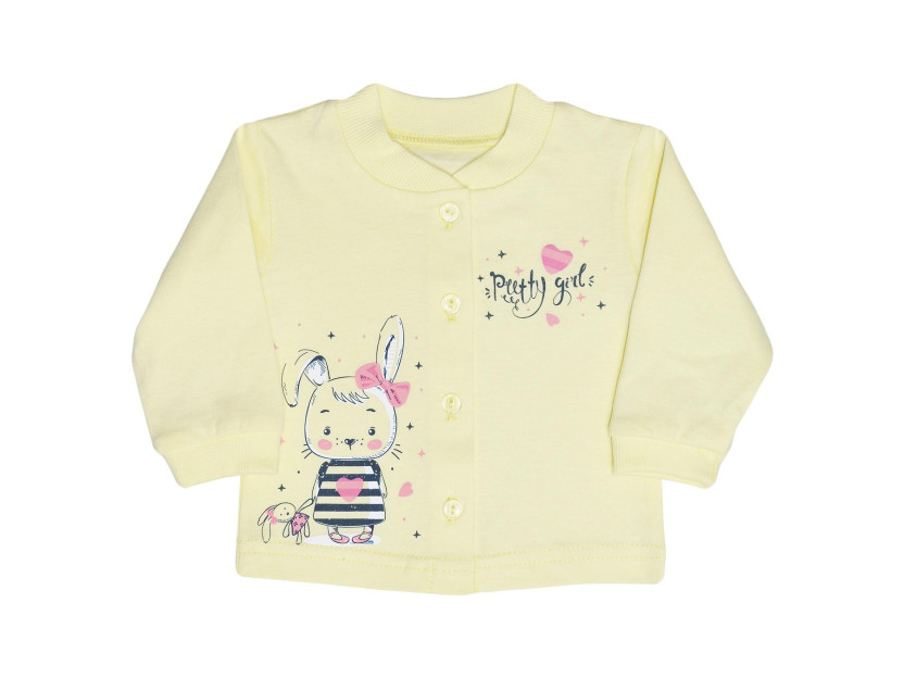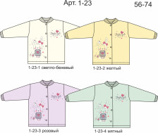Кулирное полотно:100% х/б Кофточка-застежка центральная по переду на кнопки(пуговицы).Рукав длинный.Горловина,низ рукава обработаны ластиком.Низ изделия подшит.Печать по переду.
