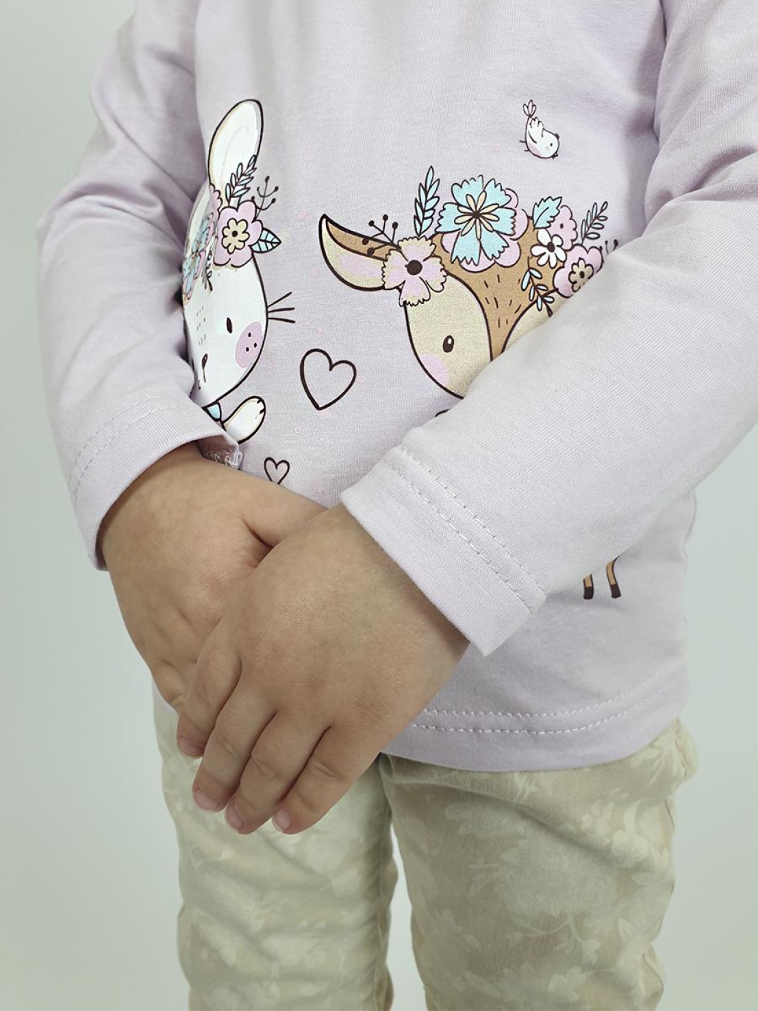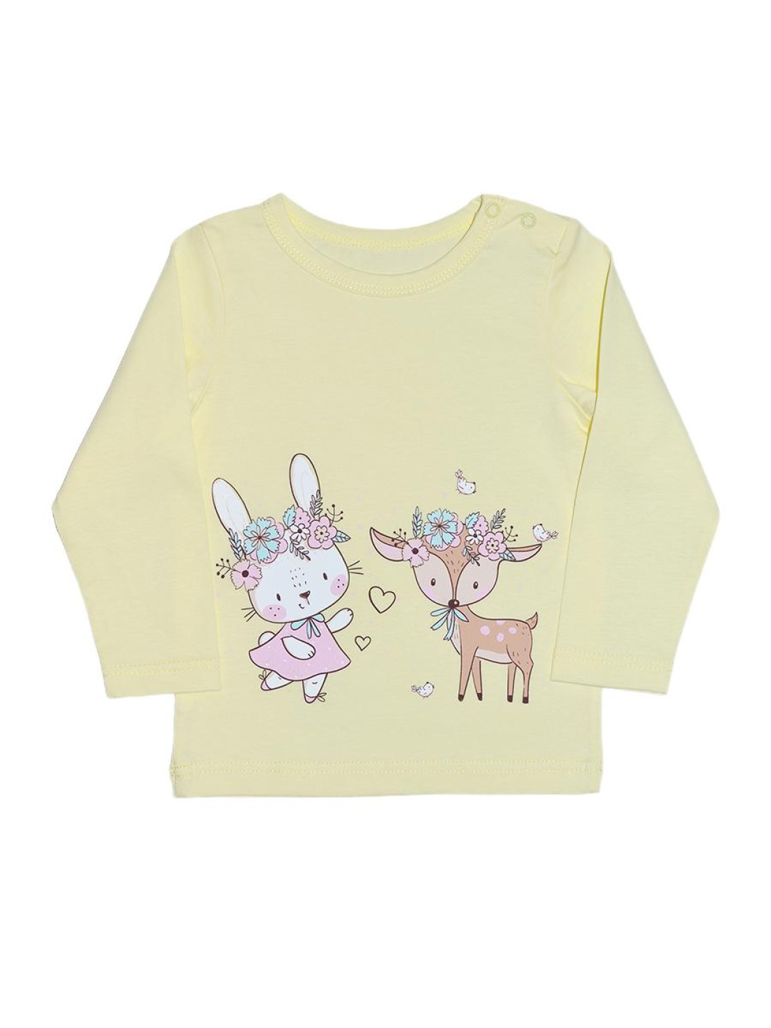 Кулирное полотно:100% х/б. Кофточка-прямой силуэт,длинный втачной рукав,застежка на кнопки в плечевом шве.Горловина окантована.Печать на переде.