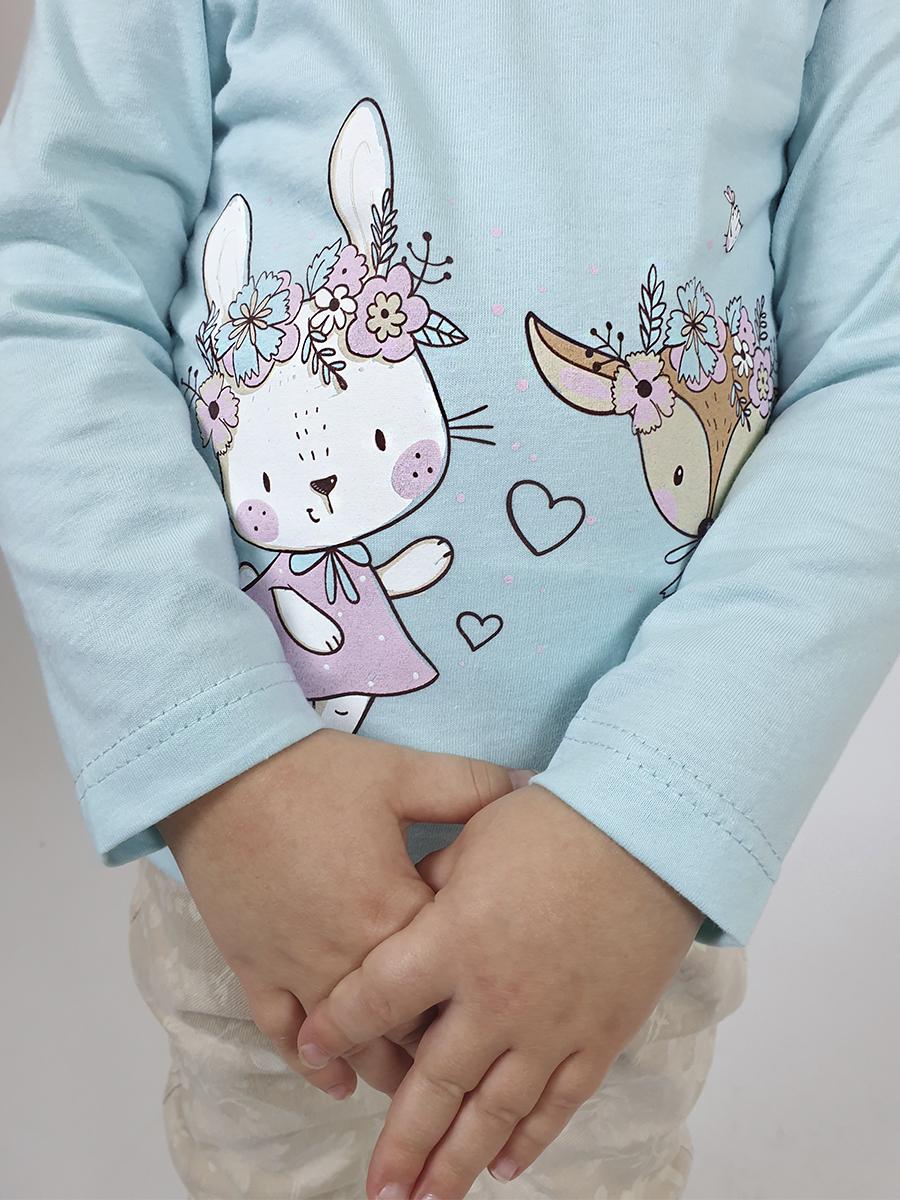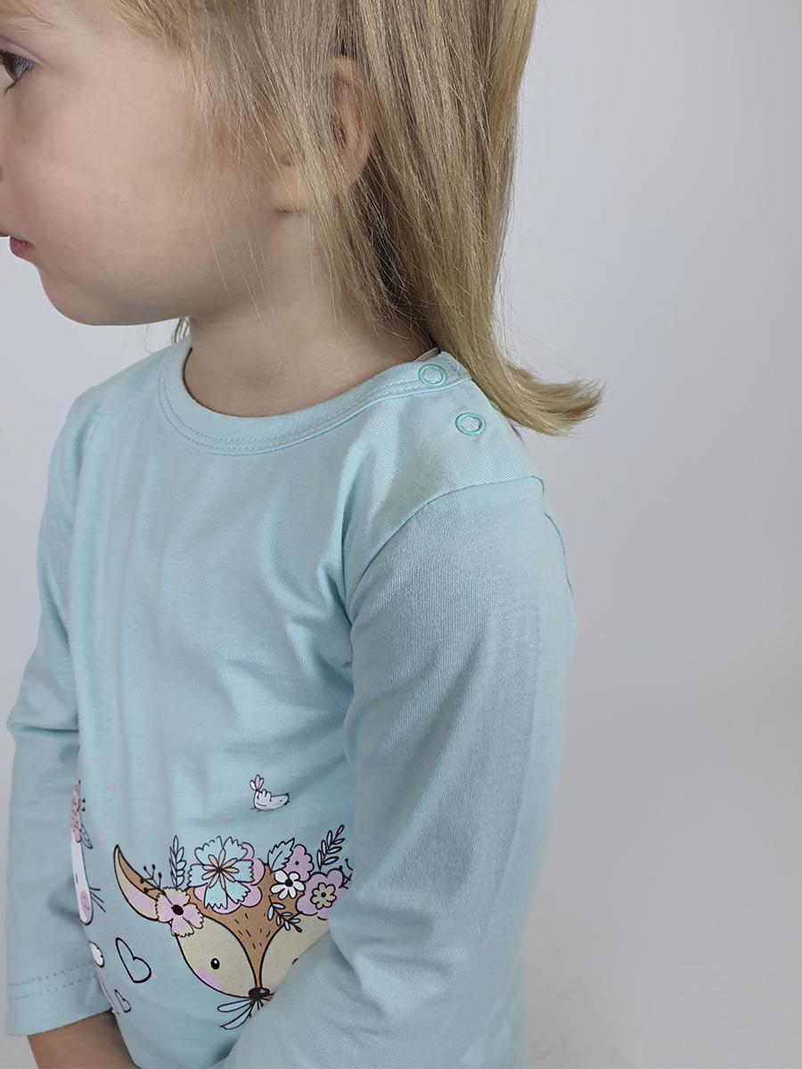 Кулирное полотно:100% х/б. Кофточка-прямой силуэт,длинный втачной рукав,застежка на кнопки в плечевом шве.Горловина окантована.Печать на переде.