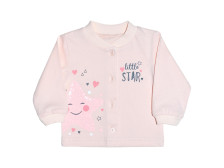Кулирное полотно: 100% х/б. Кофточка-застежка центральная по переду на кнопки (пуговицы).Рукав длинный.Горловина,низ рукава обработаны ластиком.Низ изделия подшит.Перед с печатью.