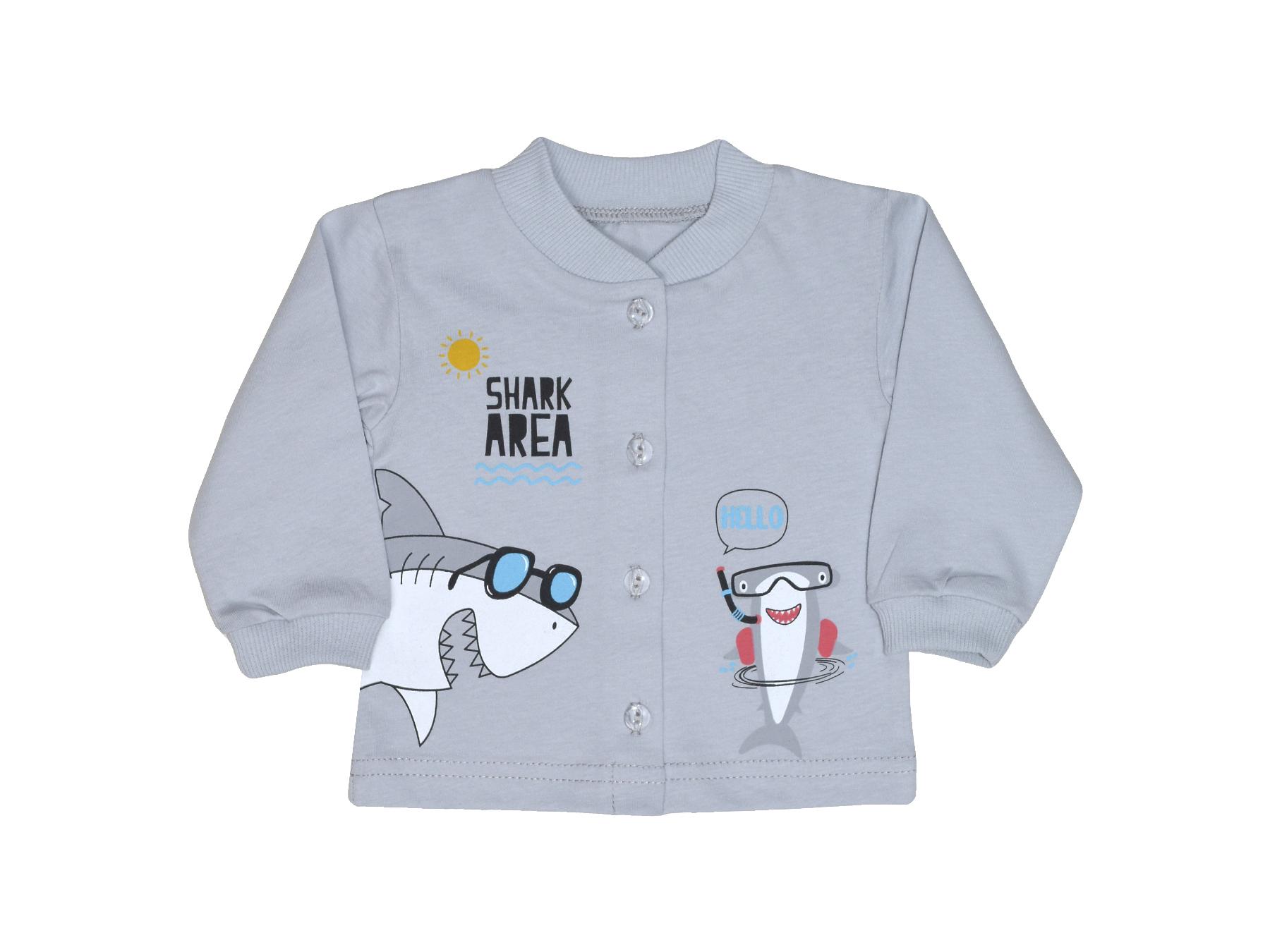 Кофточка выполнена из качественного, мягкого кулирного полотна (100% хлопок). Модель с длинным рукавом, застегивается по центру на пуговицы , которые делают вещь очень удобной в использовании.Кофточка украшена оригинальным принтом.