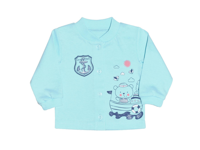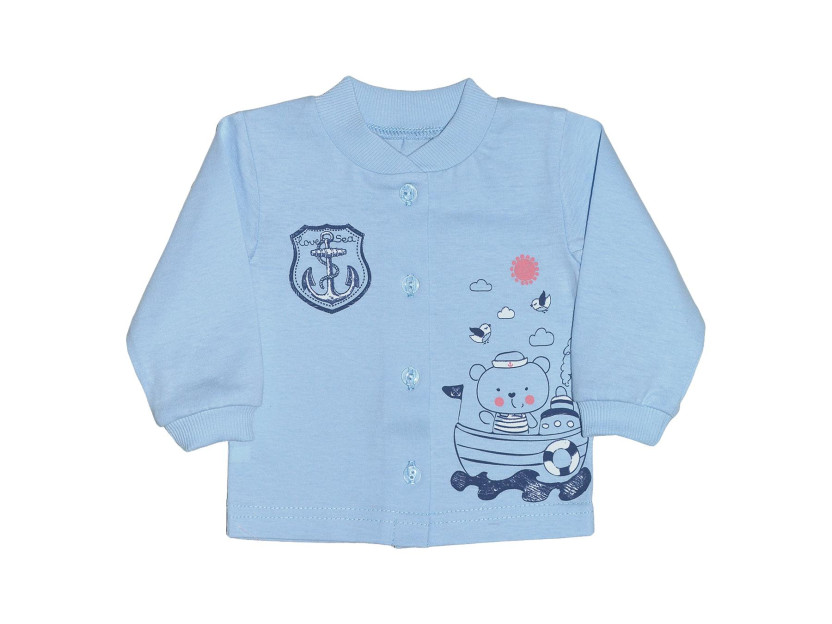 Кофточка выполнена из качественного, мягкого кулирного полотна (100% хлопок). Модель с длинным рукавом, застегивается по центру на пуговицы , которые делают вещь очень удобной в использовании.Кофточка украшена оригинальным принтом.