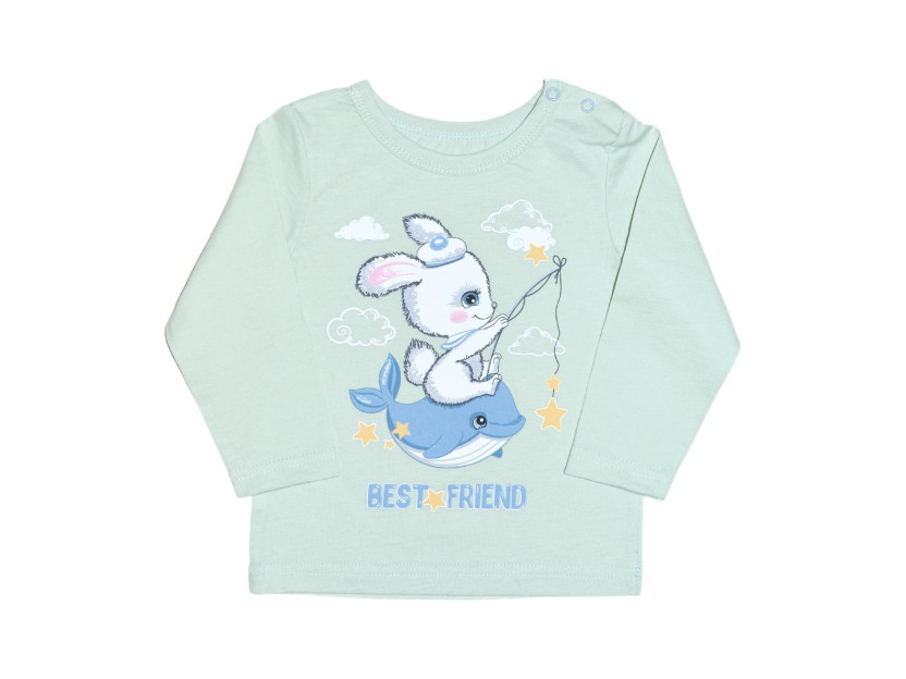 Кулирное полотно:100% х/б. Кофточка-прямой силуэт,длинный втачной рукав,застежка на кнопки в плечевом шве.Горловина окантована.Печать на переде.