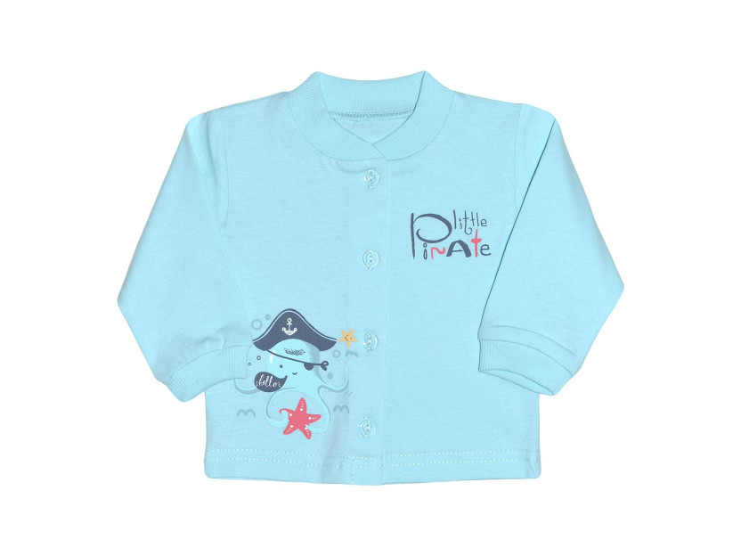 Кулирное полотно:100% х/б Кофточка-застежка центральная по переду на кнопки(пуговицы).Рукав длинный.Горловина,низ рукава обработаны ластиком.Низ изделия подшит.Печать по переду.