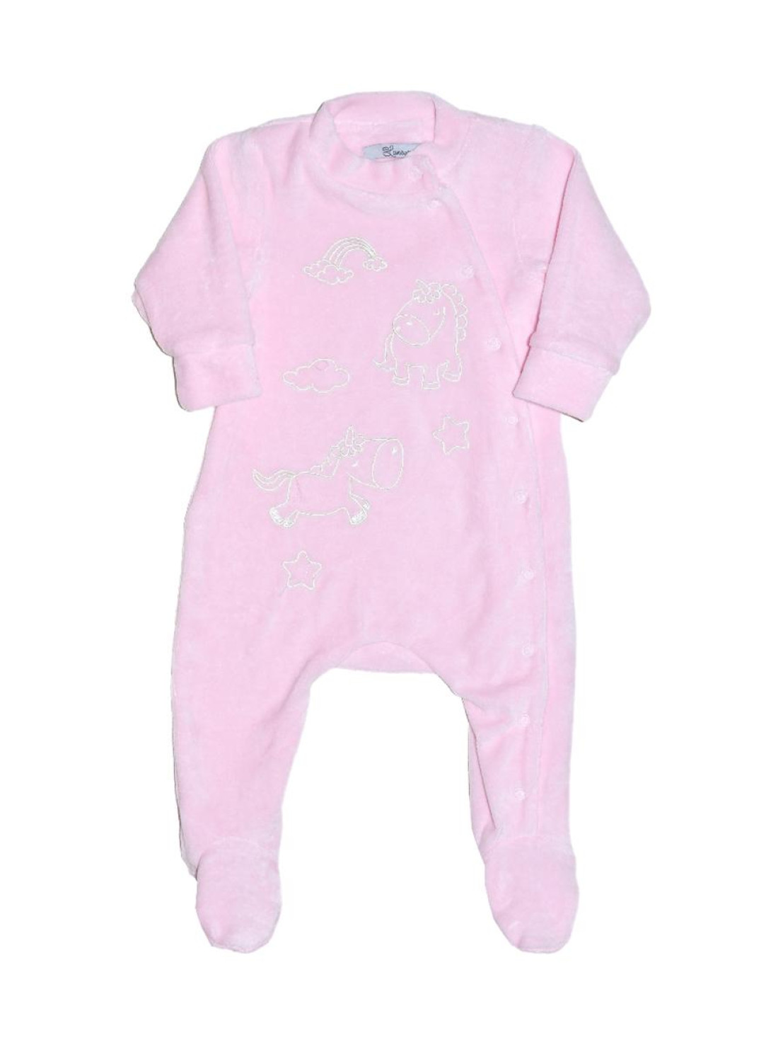 Велюр:80% х/б,20% п/э. Комбинезон-правая сторона переда с вышивкой.Рукав втачной длинный на манжете,в горловине воротник-стойка.Застежка ассиметричная на кнопки.