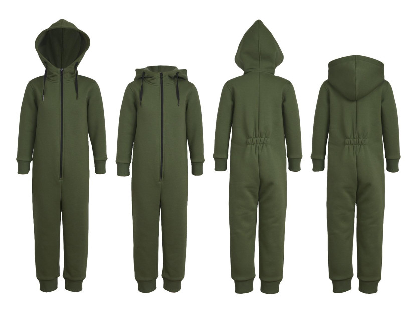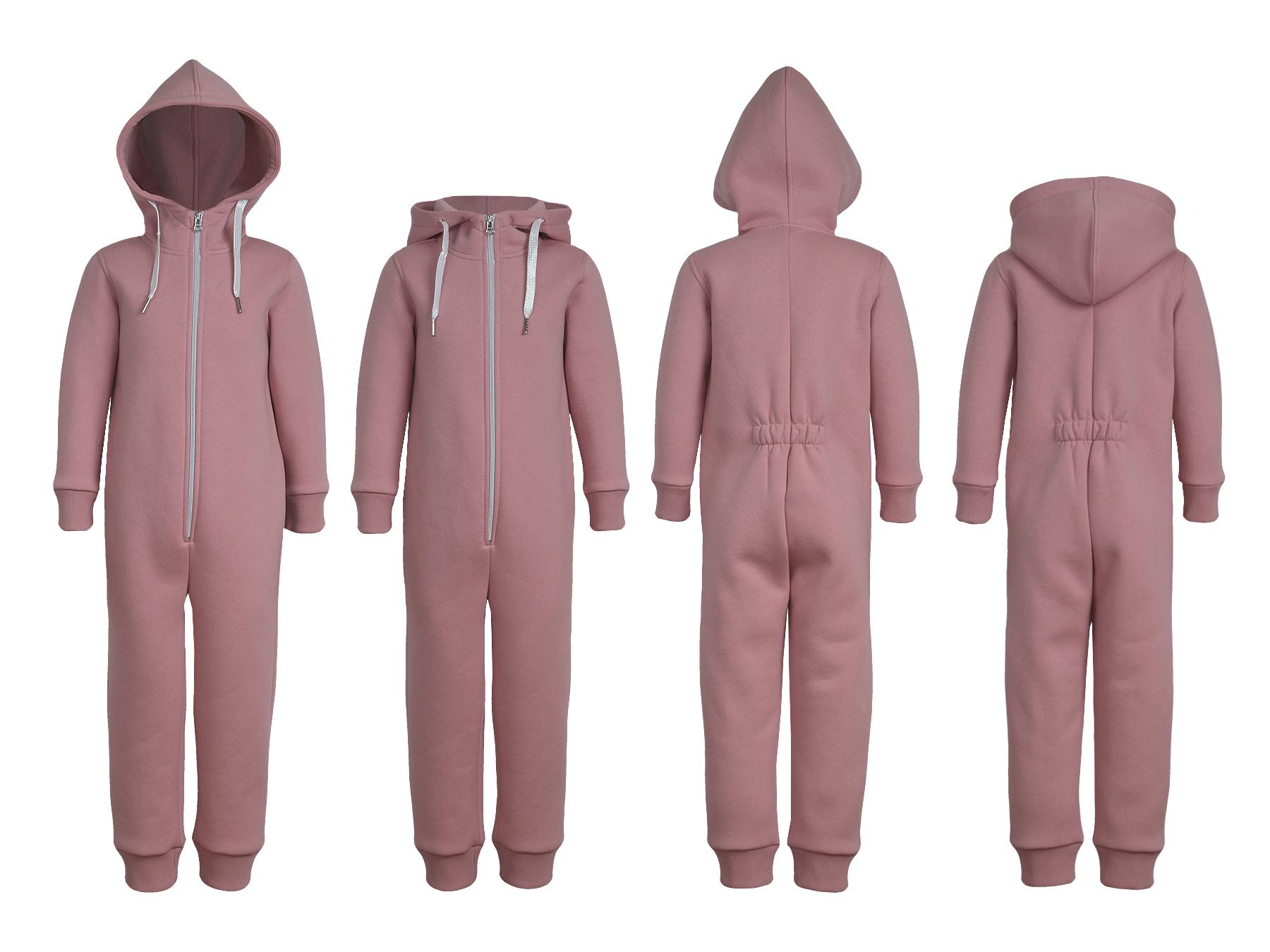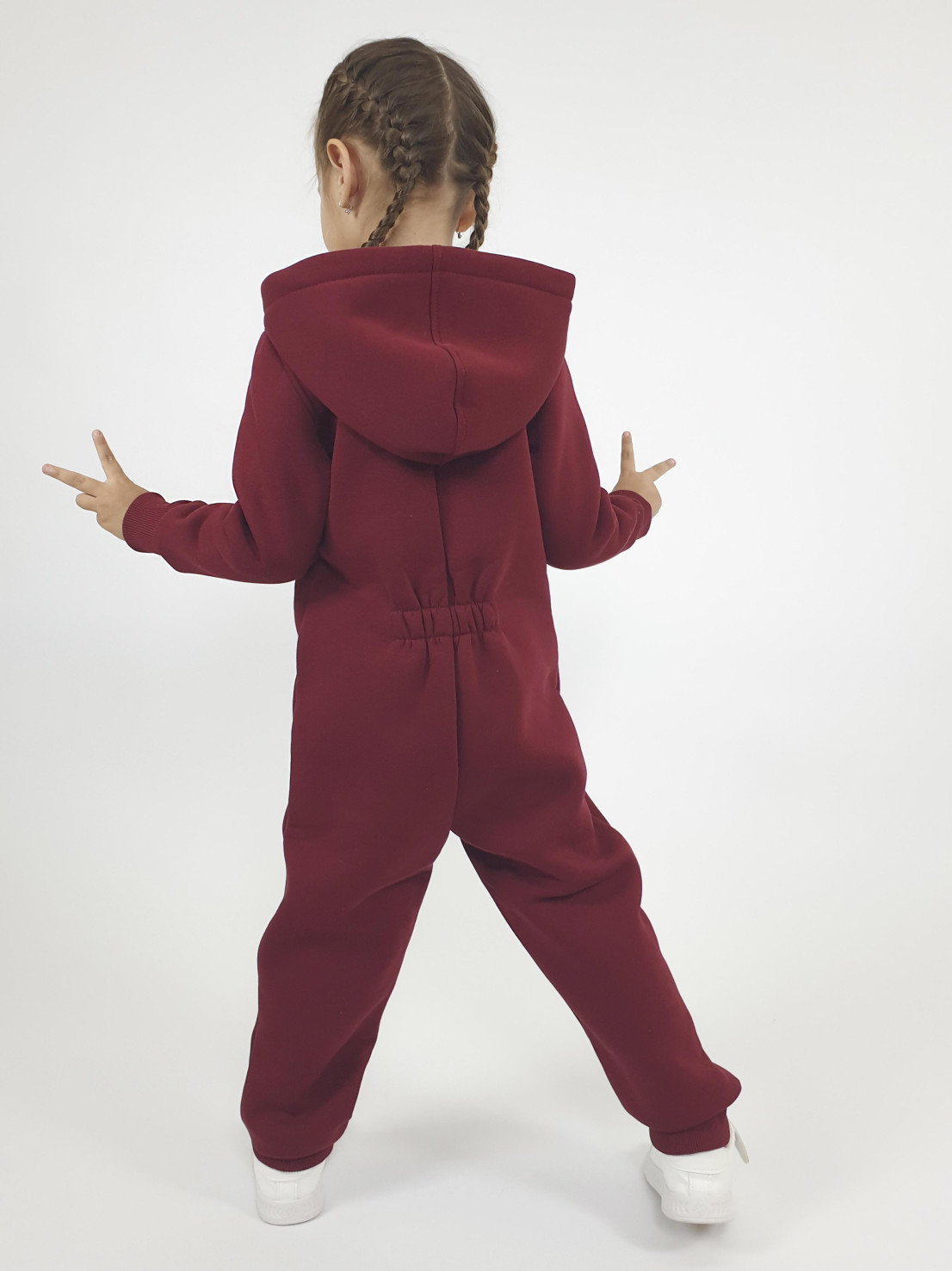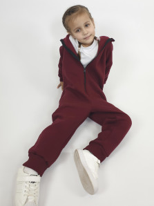 Футер 3-х нитка:85% х/б,15% п/э. Комбинезон с центральной застежкой на "молнию"длинный рукав и низ брюк на манжете.В горловине капюшон со шнуром,сзади в области талии резинка(фиксирующая ширину спинки).