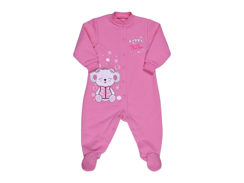 Футер двухнитка: 100% х/б. Комбинезон-перед с центральной застежкой и по шаговому шву на кнопки.Печать по двум частям переда.Горловина на стойке из ластика.Рукав втачной длинный на манжете из ластика.