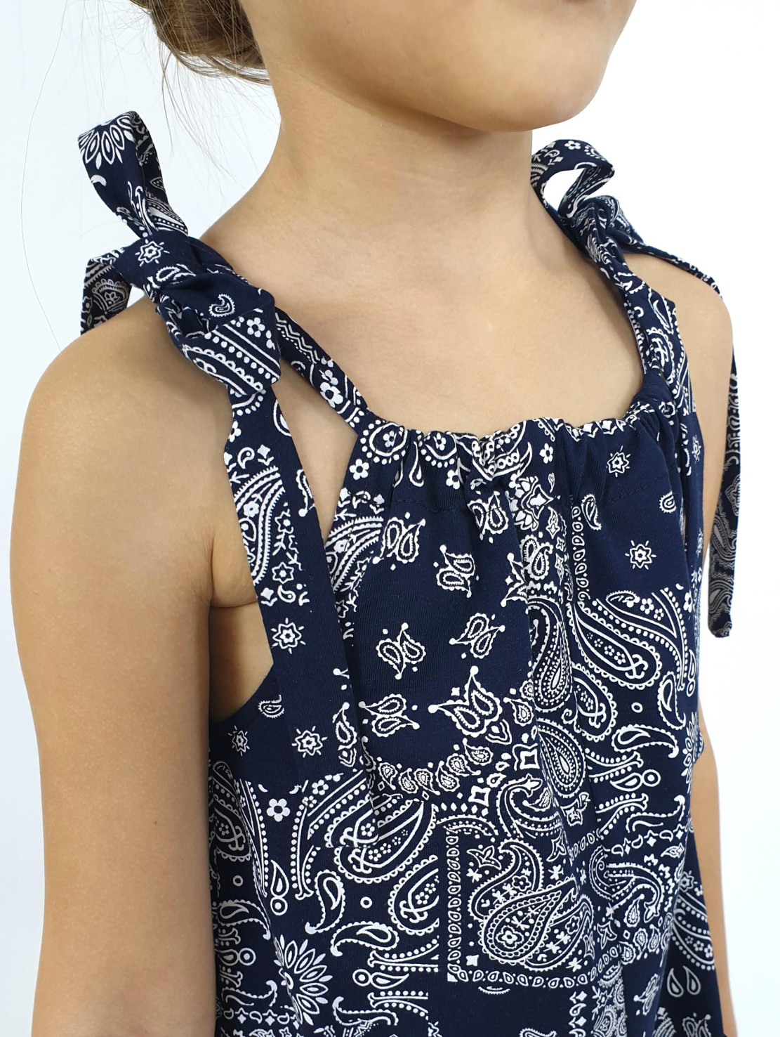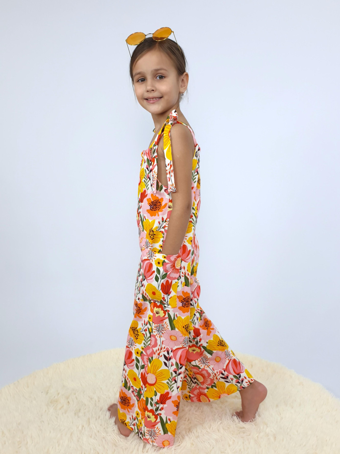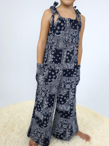 Кулирное полотно:100% х/б. Комбинезон-свободный,на завязках.Два накладных кармана сбоку.