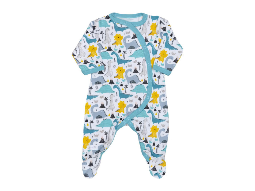 Интерлок:100%х/б.(гладь+набивка) Комбинезон-перед с ассиметричной застежкой и по шаговому шву на кнопки.Печать по переду и спинке из глади и полоски.Горловина,борта и низ рукава окантованы.