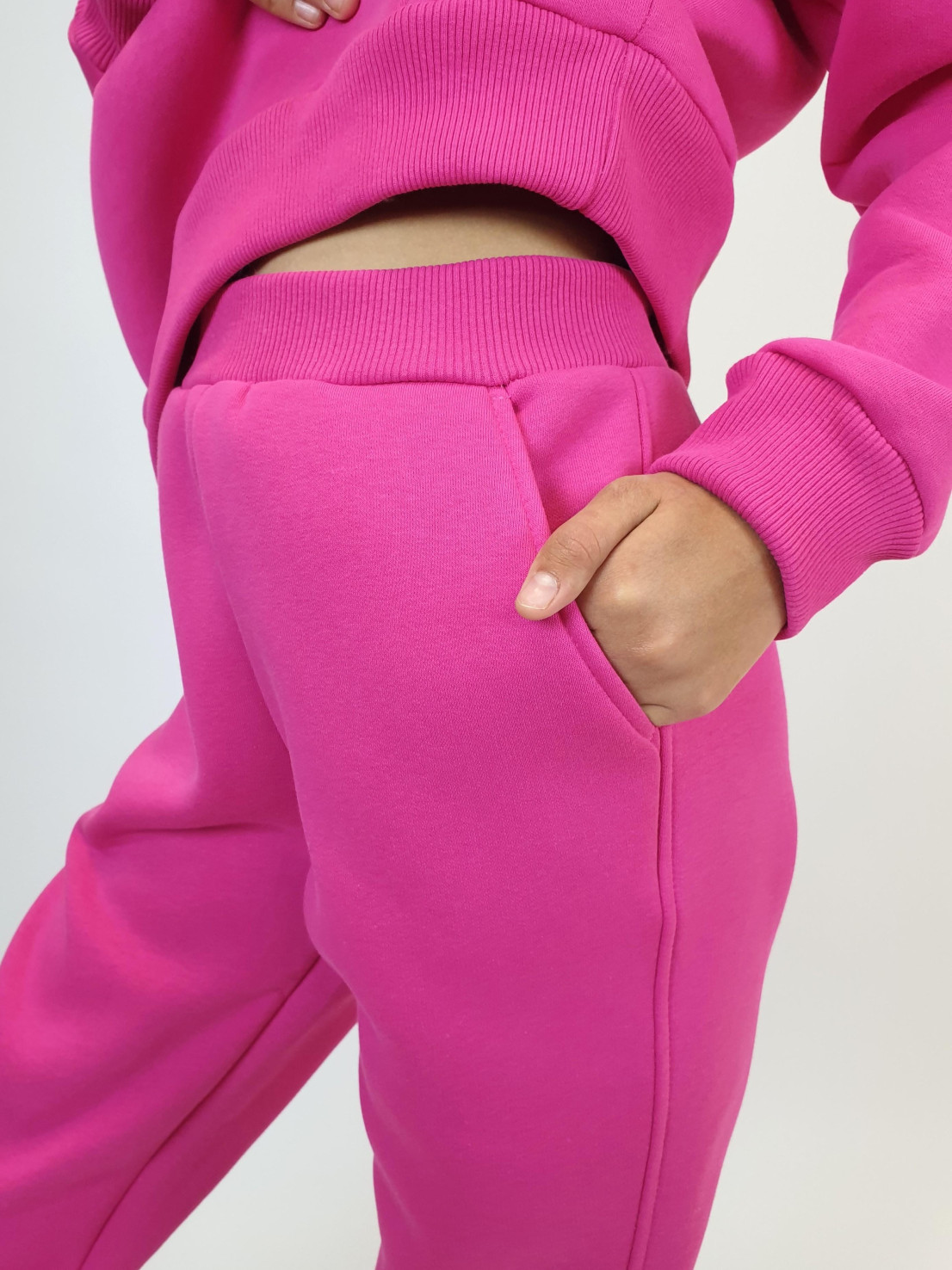 Комплект для детей.Футер 3-х нитка:85% х/б,15% п/э. Джемпер-прямого силуэта с капюшоном,накладным карманом по переду.Рукав втачной на манжете из ластика. Брюки-длинные,прямые,вверху притачной пояс из ластика с резинкой.На переде два боковых кармана,низ брюк на манжете.