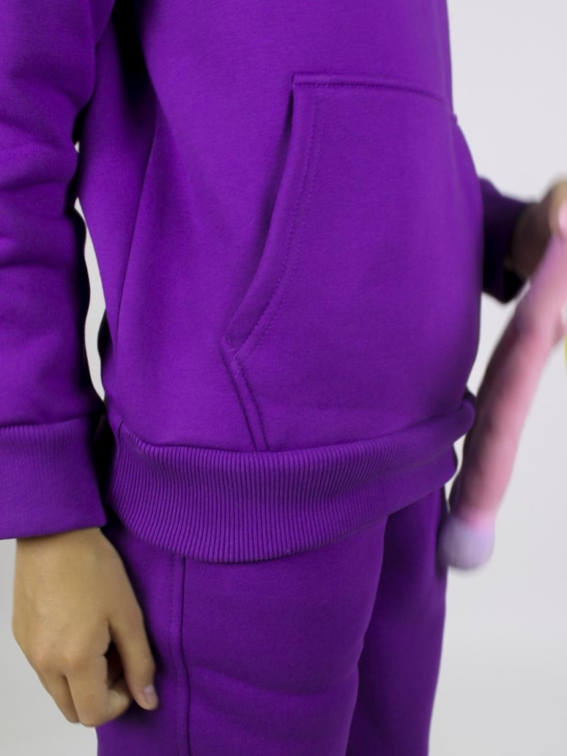 Комплект для детей.Футер 3-х нитка:80% х/б,20% п/э. Джемпер-прямого силуэта с капюшоном,накладным карманом по переду.Рукав втачной на манжете из ластика. Брюки-длинные,прямые,вверху притачной пояс из ластика с резинкой.На переде два боковых кармана,низ брюк на манжете.
