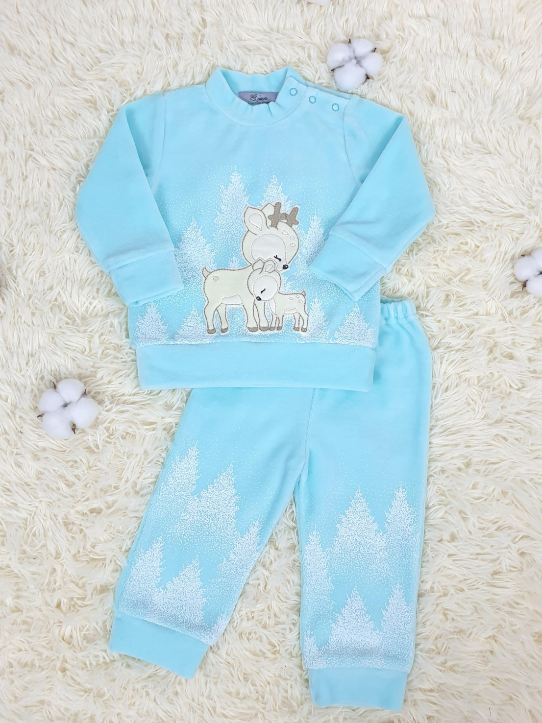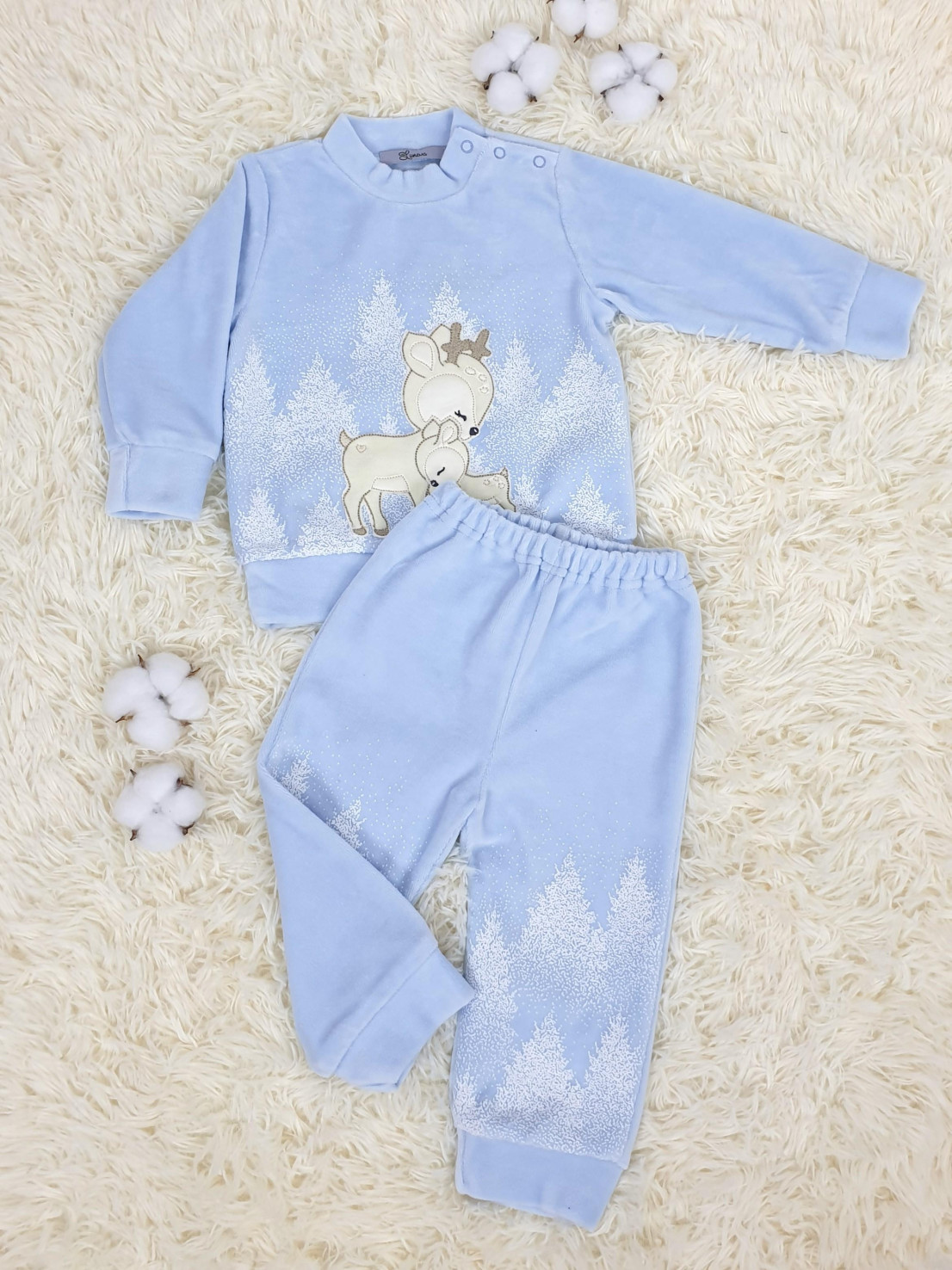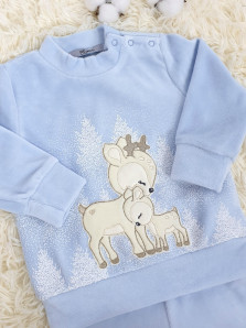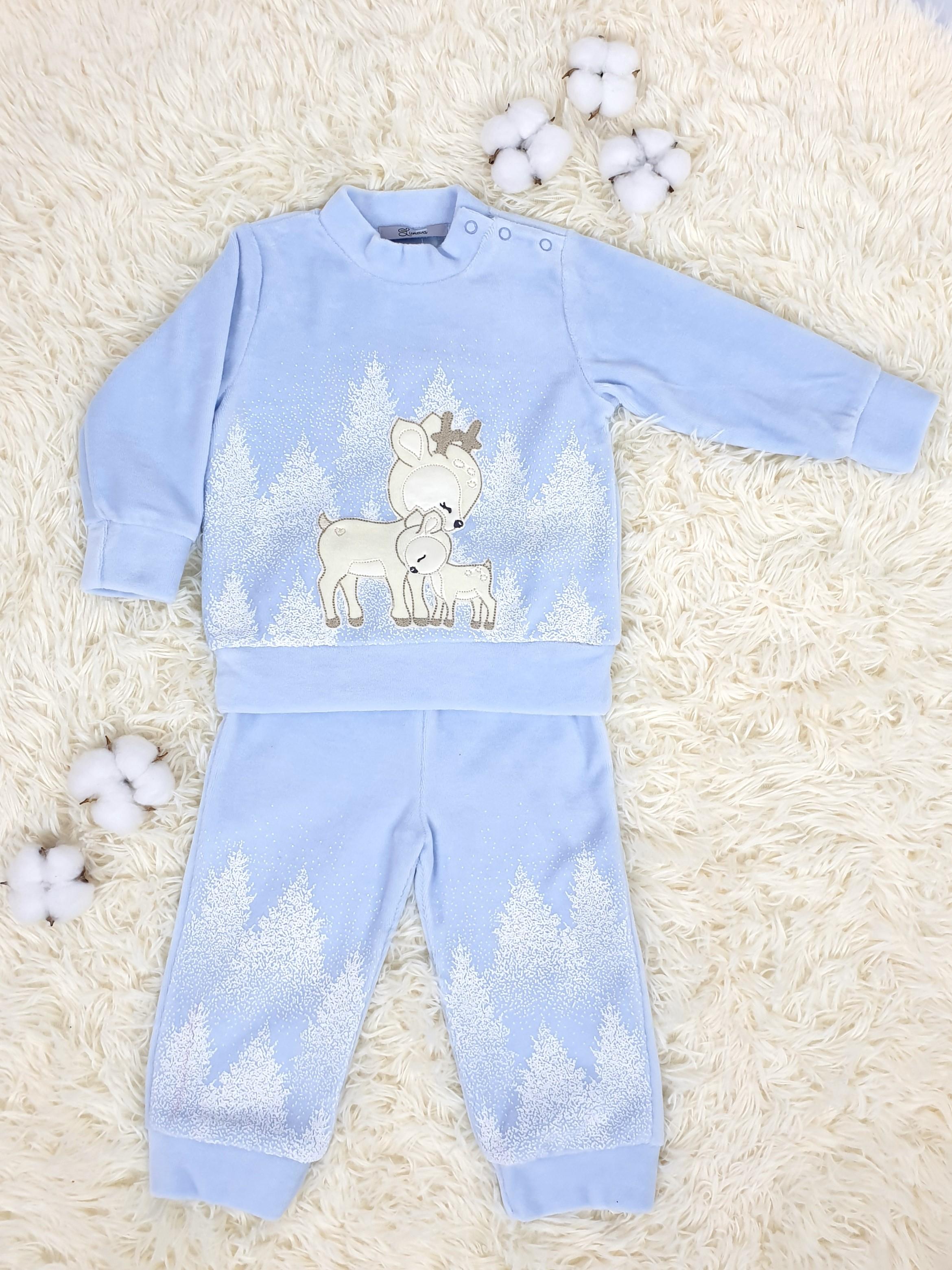 Костюм детский теплый из велюра ( 80% хлопок, 20% полиэстер) состоит из лонгслива и брюк на резинке. Лонгслив с длинным рукавом на манжете и воротником-стойкой. Модель декорирована оригинальным принтом с вышивкой.Застежка на кнопках существенно облегчает переодевание ребенка. В таком костюме малыш будет чувствовать себя свободно и комфортно.