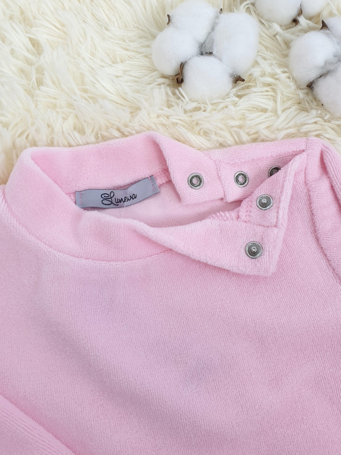 Костюм детский теплый из велюра ( 80% хлопок, 20% полиэстер) состоит из лонгслива и брюк на резинке. Модель с длинным рукавом на манжете и воротником-стойкой. На лонгсливе накладной карман с вышивкой . Застежка на кнопках существенно облегчает переодевание ребенка. В таком костюме малыш будет чувствовать себя свободно и комфортно.