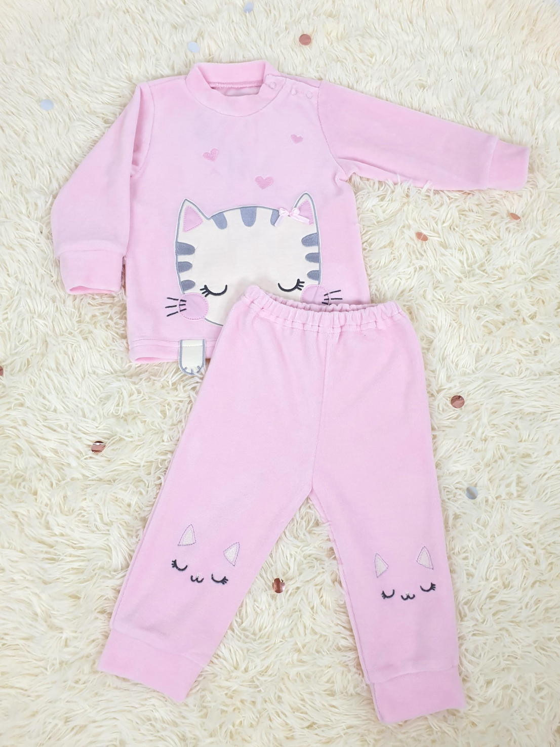 Костюм детский теплый из велюра ( 80% хлопок, 20% полиэстер) состоит из лонгслива и брюк на резинке. Лонгслив с длинным рукавом на манжете и воротником-стойкой. Модель декорирована оригинальным принтом с вышивкой-аппликацией. Застежка на кнопках существенно облегчает переодевание ребенка. В таком костюме малыш будет чувствовать себя свободно и комфортно.