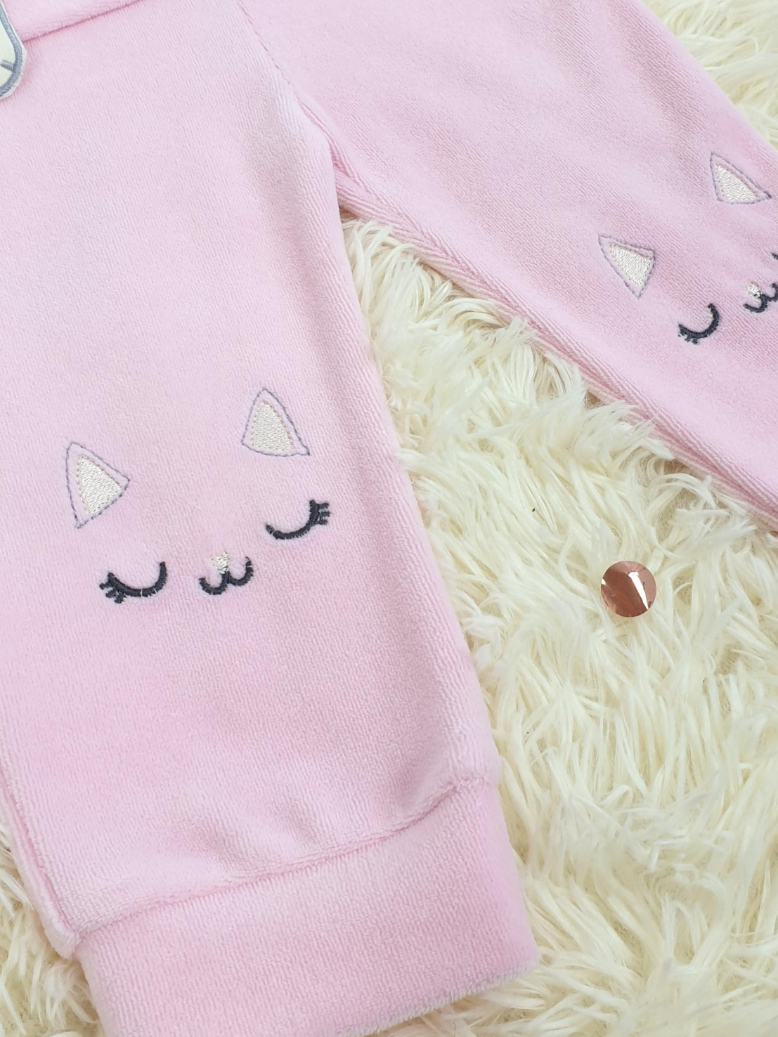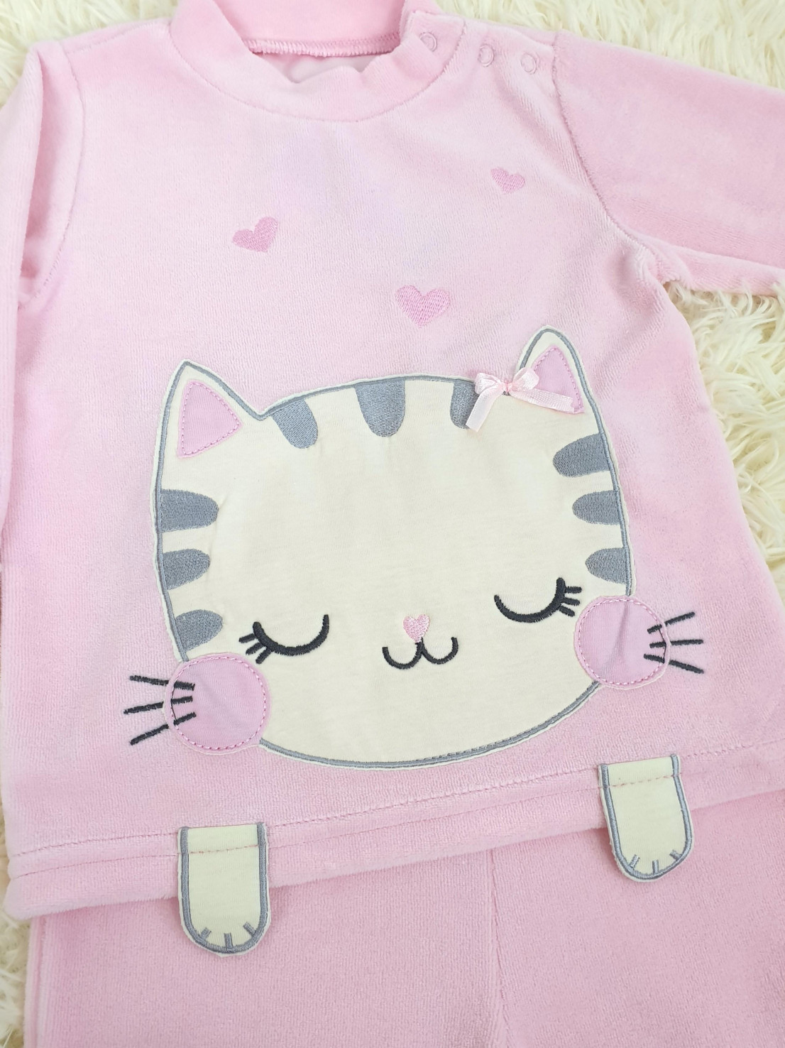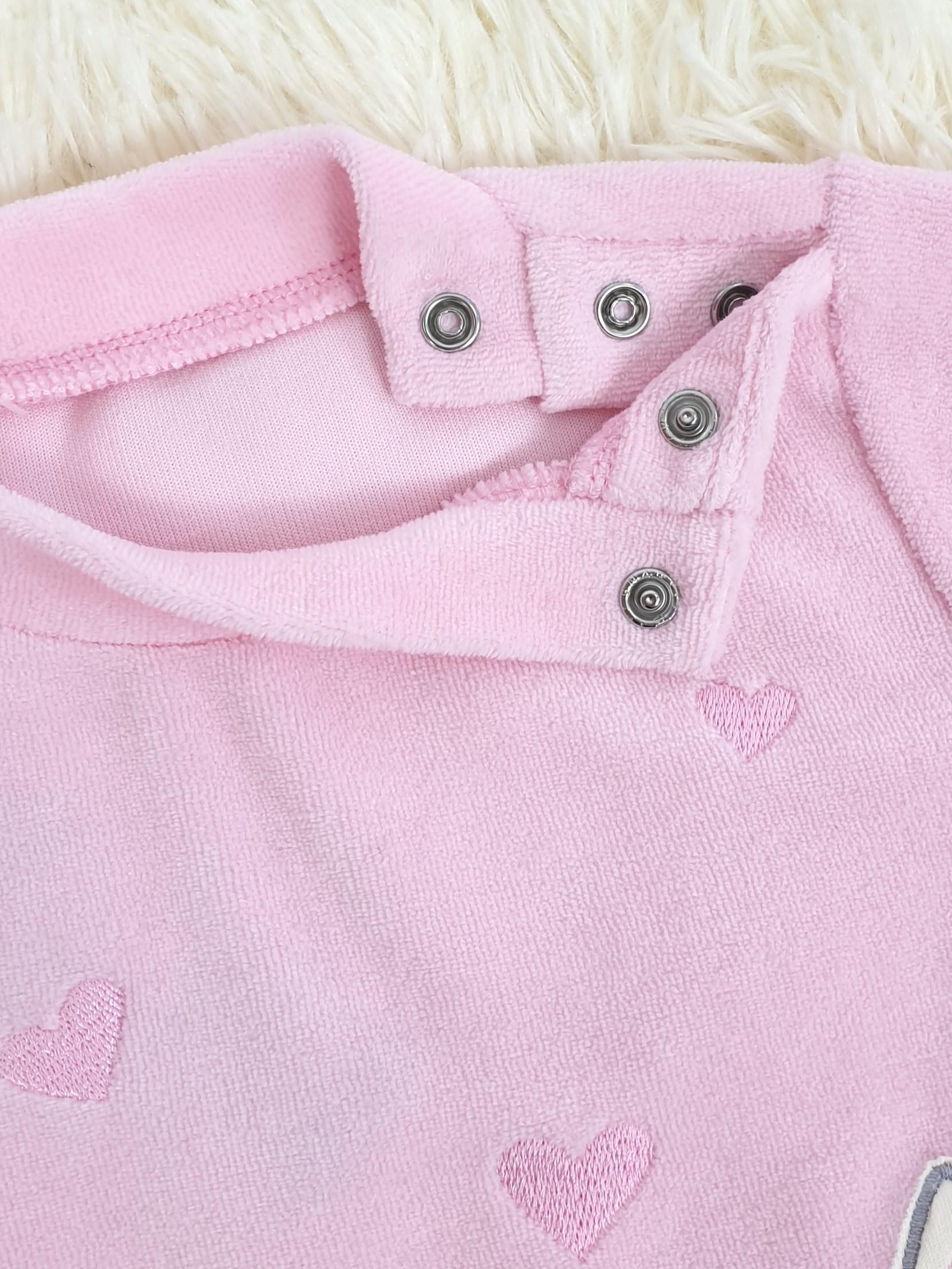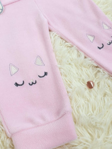 Костюм детский теплый из велюра ( 80% хлопок, 20% полиэстер) состоит из лонгслива и брюк на резинке. Лонгслив с длинным рукавом на манжете и воротником-стойкой. Модель декорирована оригинальным принтом с вышивкой-аппликацией. Застежка на кнопках существенно облегчает переодевание ребенка. В таком костюме малыш будет чувствовать себя свободно и комфортно.